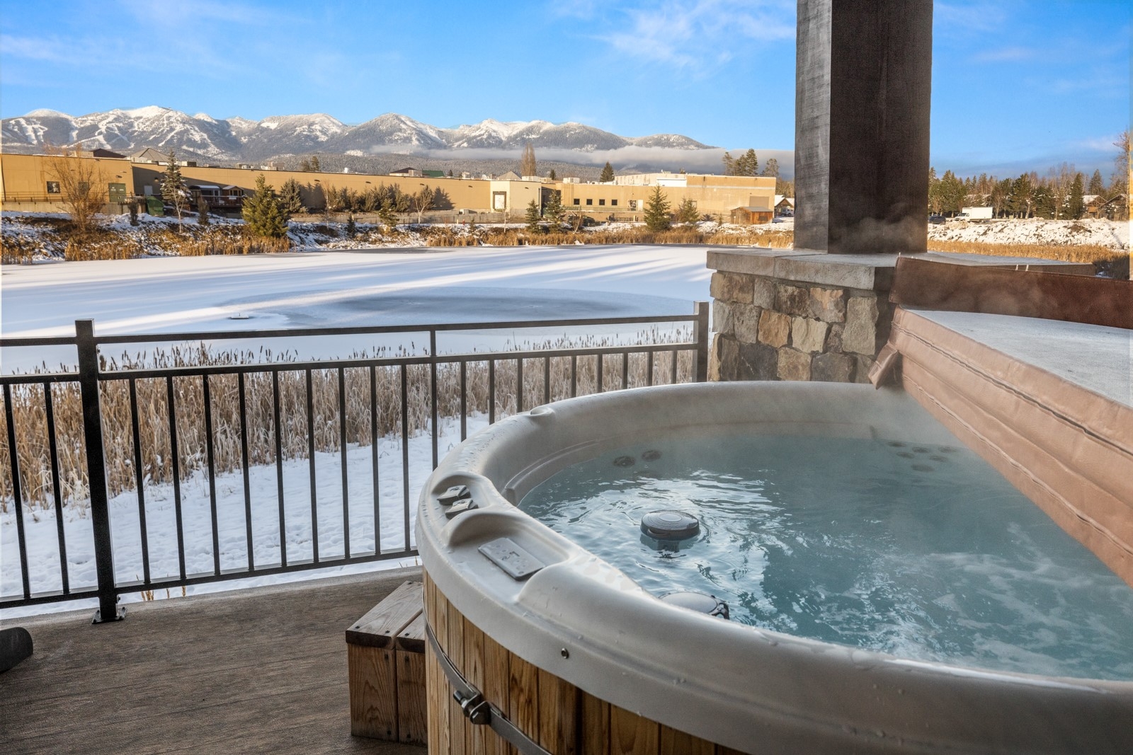 Eagle Lake Elegance! Located in the heart of town, this exquisite end-unit condo in the desirable Eagle Lake community offers a blend of luxury and convenience and comes furnished with all appliances. The open layout is thoughtfully designed to combine both comfort and style, featuring 3 bedrooms, 3 bathrooms, and 1,769 sq ft of high-end finishes. Perfect for hosting and entertaining, the unit includes two en-suite bedrooms and a spacious deck (with a private hot tub!) that captures stunning views of Whitefish Mountain Resort. The deck provides direct access to beautifully landscaped grounds, including fire pits, a walking path, waterfront docks, a play area, and a dog park. Zoned for nightly/weekly rentals, this property makes an ideal investment or mountain town retreat.