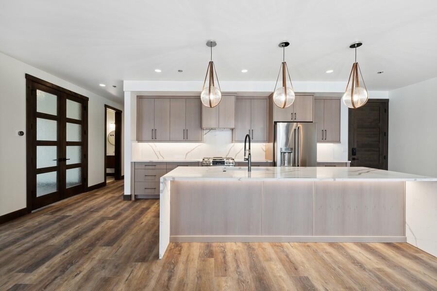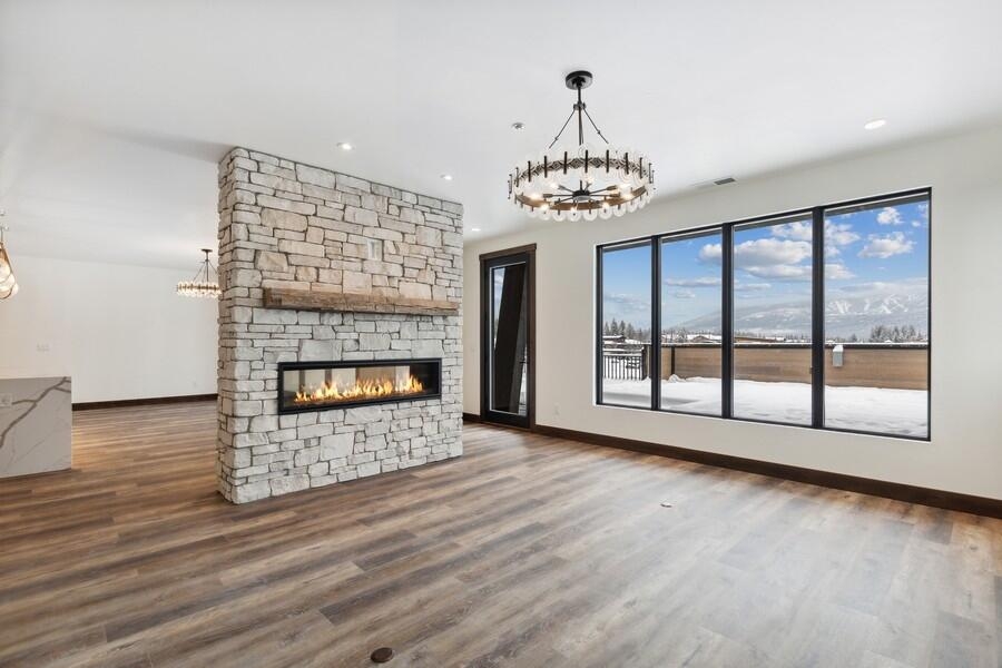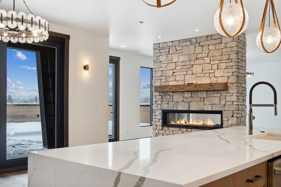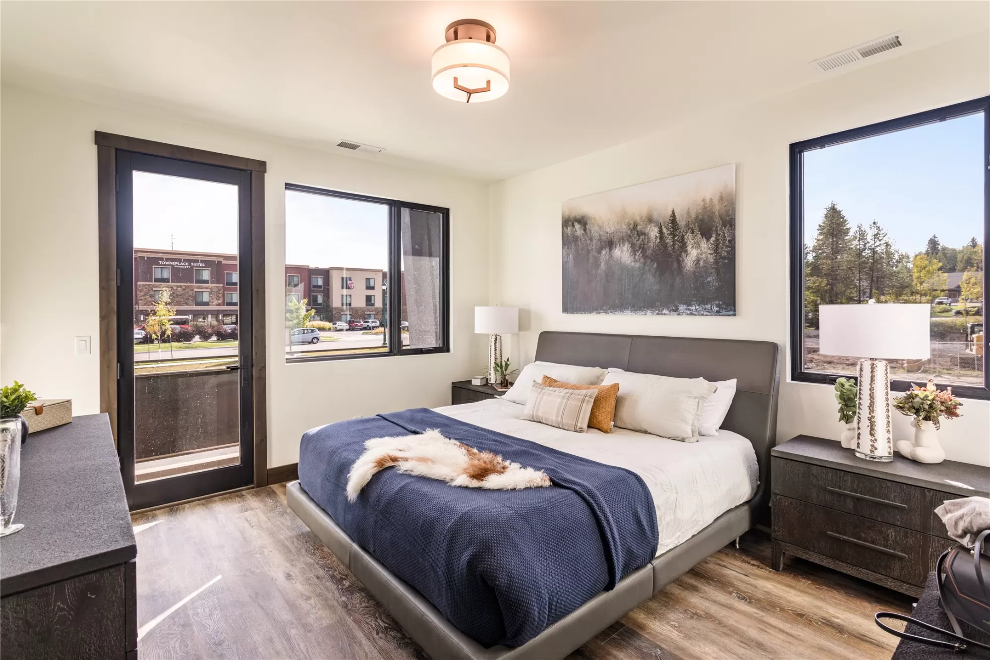 Welcome to Whitefish's newest, premier condo development, Eagle Lake. Approved for short-term rentals and all closed units have appraised for well above list. This penthouse unit features 3 bedrooms, 4 bathrooms plus bonus room - 2,148 sq ft of well-integrated design with deluxe finishes. With a premier layout for entertaining, guests and owners alike will enjoy the massive views to Big Mountain from the 900 + sqft covered deck (with hot tub & BBQ hookups) and a beautiful 2-sided stone fireplace that punctuates the large, open floorplan. Two additional 50+ sqft decks accentuate two bedrooms, one of which is a potential lock-off. The landscaped grounds include a gravel pathway, fire pits and docks. With elevators up to the penthouse floor, an attached private garage, large storage locker in the HOA space and now, Seller-Financing Available Photos of interiors not of actual condo; for representation only.
