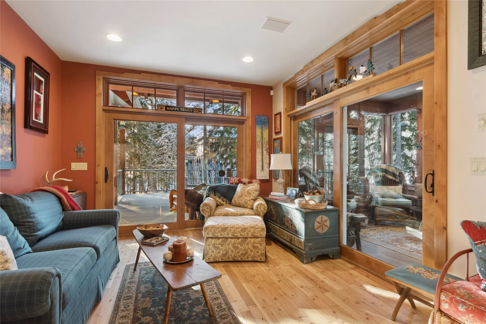 This luxurious home has unparalleled ski access with a private home owner's ski bridge directly onto the 'Home Again' ski run. This cozy yet spacious home has exceptional spaces for entertaining both inside and out. Features include: primary bedroom on the main floor, spacious ski storage room with access directly to slopes, 3 wood burning fireplaces, a sauna, a large bunk room, two offices, reclaimed pine floors and Viking appliances. Exterior features includes two large, partially covered decks with seating areas, your own private ski bridge, three season porch, and radiant heat in front of home for snow melt. Please call the listing agent for more information. Additional Features: Tile from Keen New Hampshire, 'Adirondack room' screened porch with fireplace, oversized office with built in storage and furniture, 13 antique Newall posts collected from the Chicago and Milwaukee area and antique doorknobs used as hooks throughout. Lowest Level contains a second studio style kitchen, a large living area, 2 bedrooms, full bath, work out/ski room and third fireplace, sauna, storage, laundry, dog wash, utilities. Main floor contains primary bedroom , great room, kitchen, dining, Adirondack screened porch, extra full bath, storage, sitting room. Second floor has 2 offices, spacious bunk room, 2 bedrooms and two full baths. Carpeting replaced three years ago. New Deck and gutters replaced fall 2023. New ski bridge to resort ski trail- "Home Again" built 2019. Furnishings negotiable. Wiring for hot tub outside ski room. Chimneys cleaned 2023.