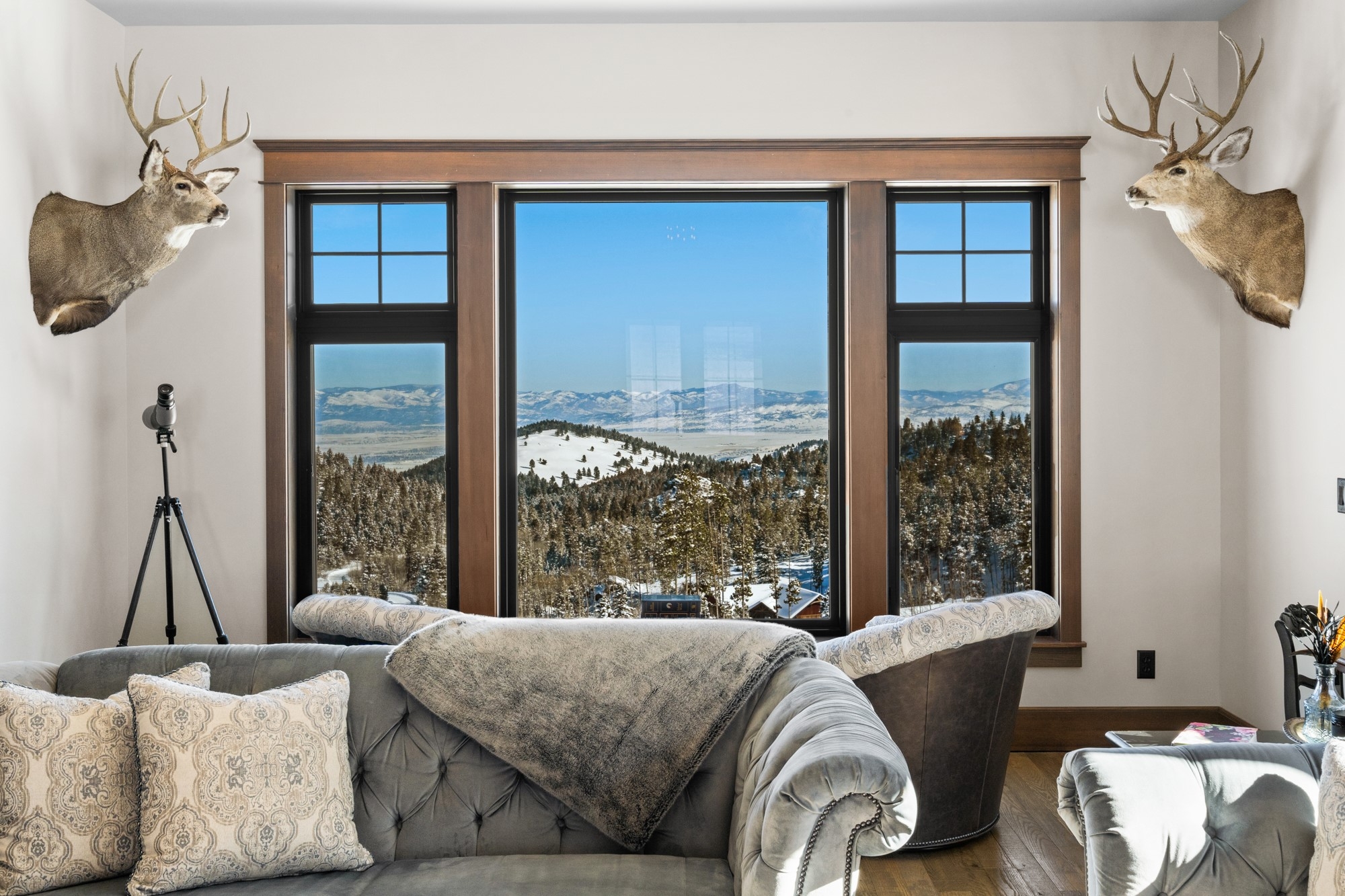 Nestled in the picturesque Boulder Mountain Range, this custom-built home is a testament to luxury living in Montana. With a unique style and location, the property offers a lifestyle defined by exclusive amenities and breathtaking surroundings. Situated at the end of the road near the mountain’s summit and bordered by BLM and Forest Service land on three sides, enjoy your own private outdoor haven with thousands of acres to explore. Abundant wildlife such as moose, deer, and resident elk, frequent the property. Designed by the builder for his family, this meticulously crafted home, guest house, and shop balance luxury, efficiency, and detail, blending rustic Montana charm with modern finishes. The home offers 4,860± sf of main living space and a partially finished daylight basement with 2,840± sf of flexible space ready for your custom design. The main level features a well-appointed kitchen, dining and living areas with see-through fireplace, master suite, den, full bath, laundry, mudroom, and large entertaining deck. Granite countertops, solid coffee-stained oak floors, maple cabinetry, built-ins, and straight-grained fir trim provide warmth and elegance. The primary suite includes his and her walk-in closets, oversized shower/spa room, jetted tub, and coffee bar, with a private balcony overlooking the valley and Elkhorn Mountain vistas. The second level offers a spacious seating/TV area, bedroom with connected playroom and 3/4 bath, guest bath, second bedroom/office, craft room, and large bonus room, providing flexible space for family, guests, or hobbies. Additional features include an oversized 3-car heated garage with heated outdoor concrete for year-round convenience. Just 15 minutes from Helena, enjoy urban amenities and the Helena airport, while Great Divide Ski Area is 45 minutes away. With access to Lewis & Clark National Forest for skiing, snowmobiling, fishing, hiking, hunting, and ATV riding, this property offers more than a residence—it provides a luxury Montana lifestyle enriched by nature, adventure, and convenience.