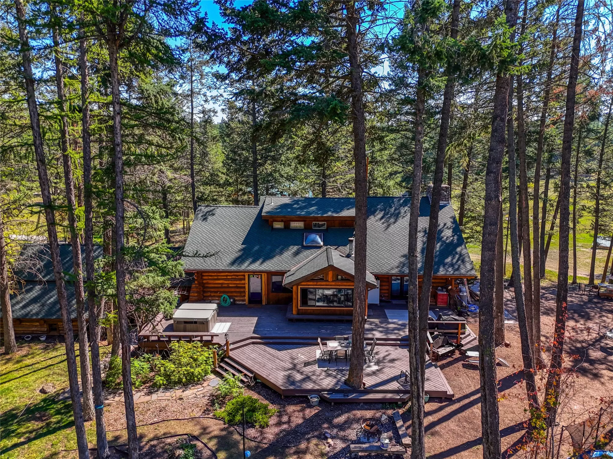 *SELLER MOTIVATED* Discover a rare gem in the heart of Flathead Valley — a 20-acre West Valley retreat that embodies the essence of Montana living. This extraordinary property offers three distinct dwellings, blending rustic charm with modern convenience and endless potential. At the heart of the estate stands a stunning 4,054 sq. ft. log home, inspired by the timeless grandeur of Glacier National Park Lodge. With 4 bedrooms and 3 baths, the home radiates warmth and character. The spacious kitchen with full-size refrigerator/freezer, dining area, and inviting living room flow effortlessly to a large deck where a hot tub awaits — the perfect spot to forest bathe under Montana’s starry skies. The primary suite occupies its own private upper level, complete with dual vanities and a walk-in closet, while the lower level offers three additional bedrooms, a cozy family room, laundry, and ample storage. See Supplemental Remarks for more info. A breezeway connects the home to a 2-car garage with generous upper storage rooms, adding to the property’s practical appeal. Perched above a 4-bay heated garage/shop is a spacious 2-bedroom, 1-bath apartment with a full kitchen and private deck — the ideal vantage point for watching Flathead Valley's legendary sunsets. Whether used as a guest retreat, rental opportunity, or multi-generational living space, it offers both comfort and flexibility. Adding to the charm is the 700 sq. ft. original homestead cabin, now a fully operational and income-generating short-term rental. Offered fully furnished with all appliances, this cozy cabin blends history with modern convenience — an authentic nod to Montana’s rich heritage. This is more than a property — it’s an invitation to embrace Montana’s unmatched lifestyle. Hunt, explore, or simply unwind in your own private sanctuary, all while being just minutes from town. The combination of natural beauty, privacy, and versatility makes this a true diamond in the rough — an unparalleled opportunity to own a piece of Big Sky Country. Cabin offered fully furnished; pool table conveys with apartment. *Since photos were taken, Main House entryway stairs and railings have been redone.