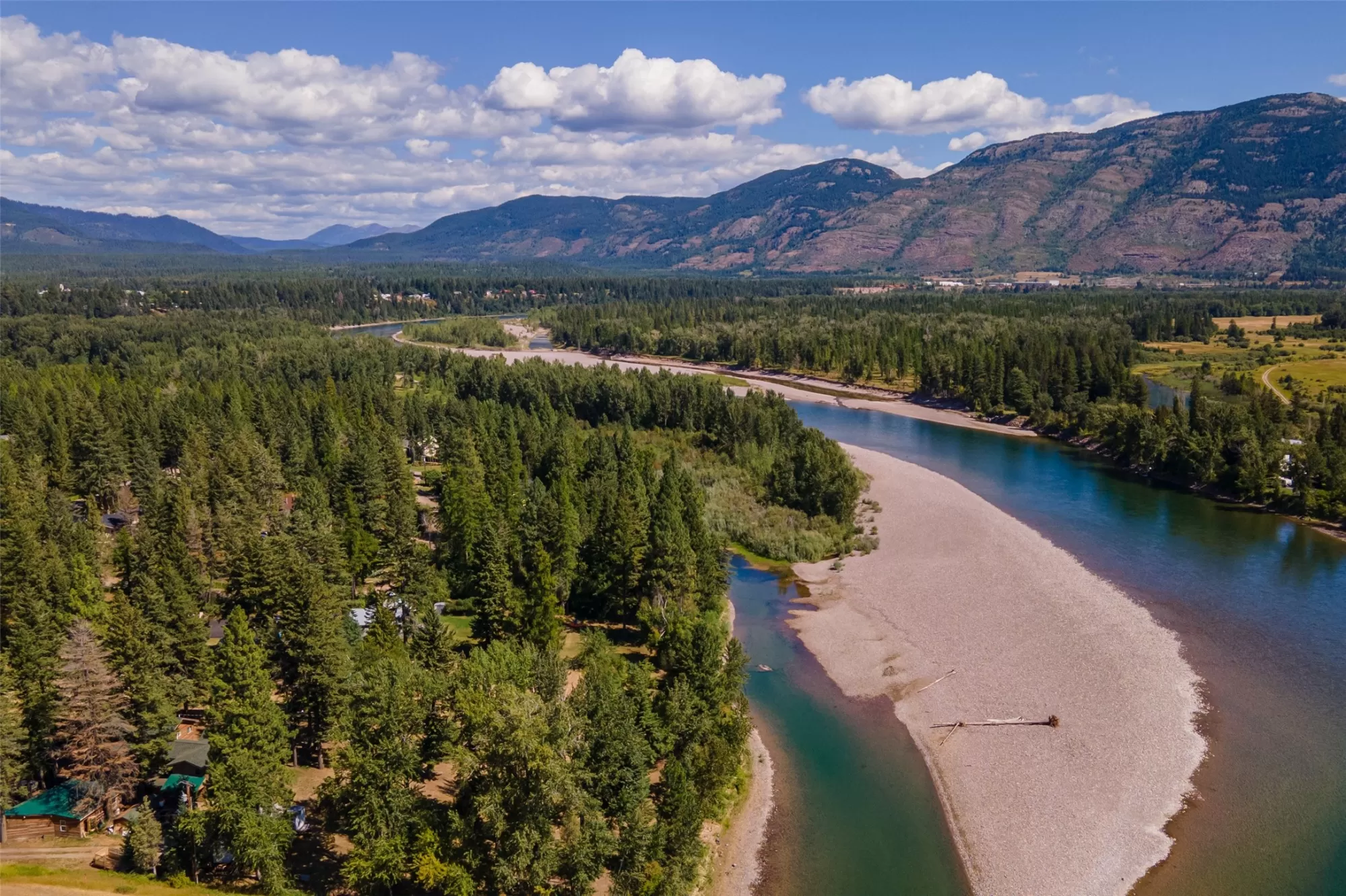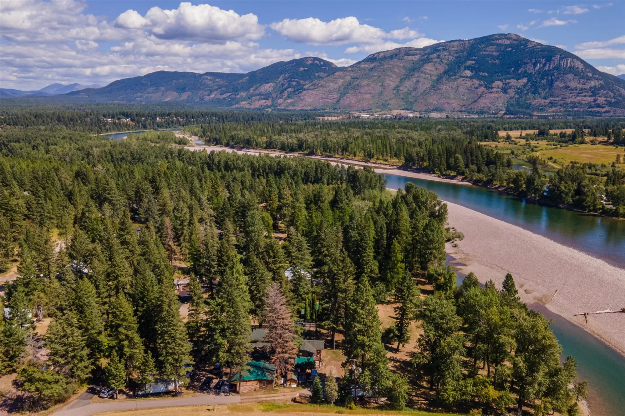 186' of sandy low-bank Flathead River Waterfront! Fishing, Kayaking, Boating, Rafting, etc - right in your own picturesque parked-out backyard w/views of Columbia Mountain! Located just a mere 20 minutes from world-renowned Glacier National Park & only 30 minutes away from Whitefish Skiing. Don't miss the public boat launch right across the street! 3 distinct, charming Log Style Homes grace this 1.44 acre property w/a total of 4 or 5 separate units each fit w/their own kitchen area. This unique property presents an array of possibilities - from multigenerational living or family retreat to a huge investment opportunity. Pick your favorite for yourself & rent the others! CR-3 zoning provides a plethora of conditional uses. Cabin 655 - 2bd/1bth. Cabin 657 - 2bd/2bth w/office. Cabin 659 - 2 bd/4 bth w/office & separate suite.