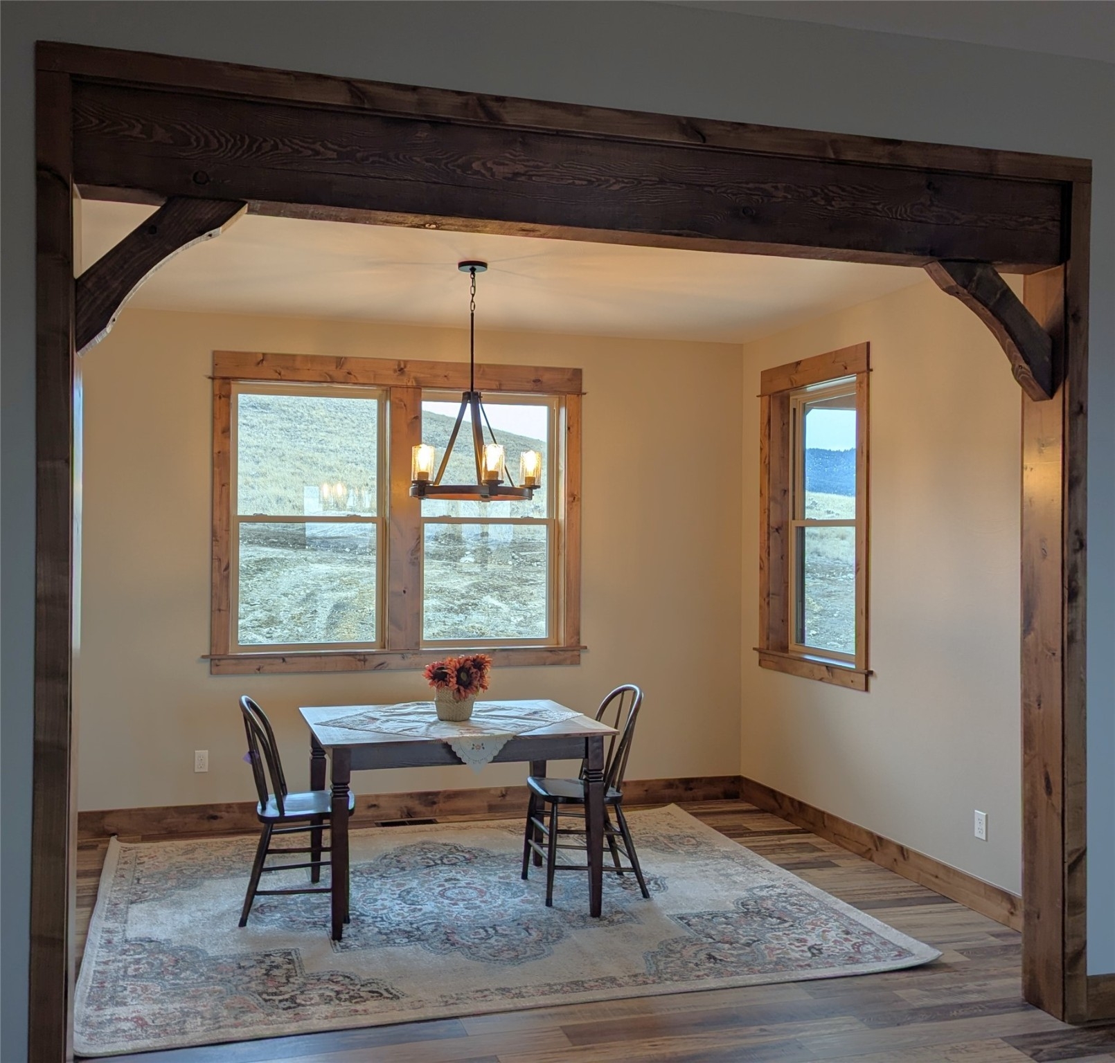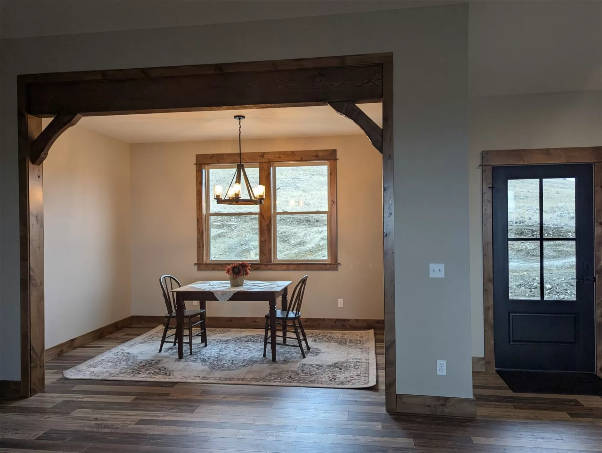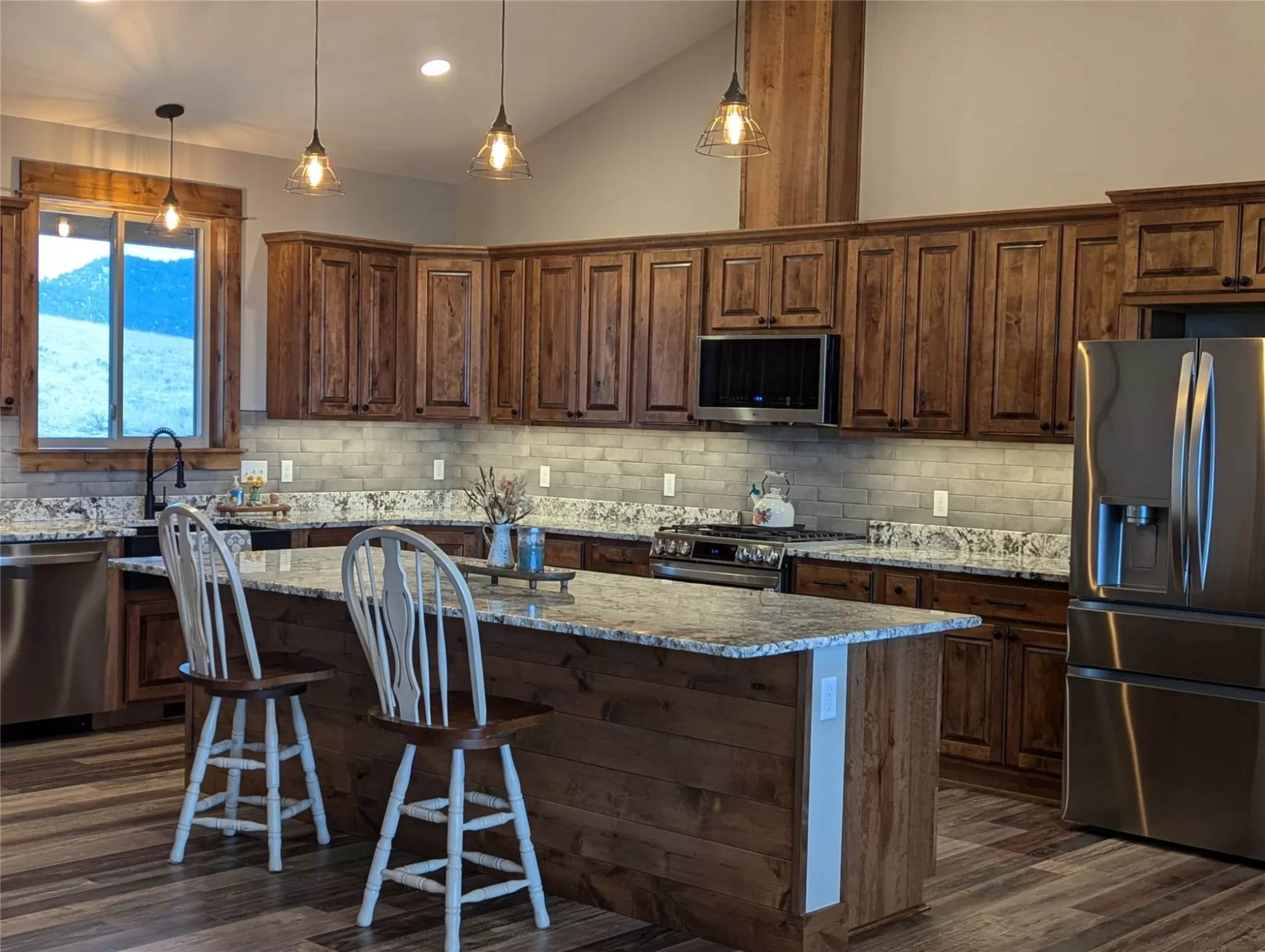 Underground sprinkler system and landscaping completed. This newly constructed, home is located on Franklin Mine Road, between Green Meadow Drive and Head Lane. There are incredible 360 degree views of the surrounding mountains with nearby hiking/biking trail systems of over 5,100 acres of Public Land in the nearby Scratchgravel Hills. This home sits on over 11 acres, with privacy and room to bring horses or build your shop. There is a covered front porch and a very private back covered patio made with beautiful stamped concrete. The inside has an open floor concept, cathedral ceilings, granite counter tops, walk-in pantry and separate dining area. Finishes include exposed wooden beam accents and custom rocked gas fireplace. The home includes a private main suite, walk-in closet, bath with dual vanity sinks, tiled walk-in shower and soaker tub. Another full bathroom is between the adjoining two bedrooms. There's a 504 square foot bonus room above 3-car garage. Agent has ownership interest in the property and is related to the Seller/Builder