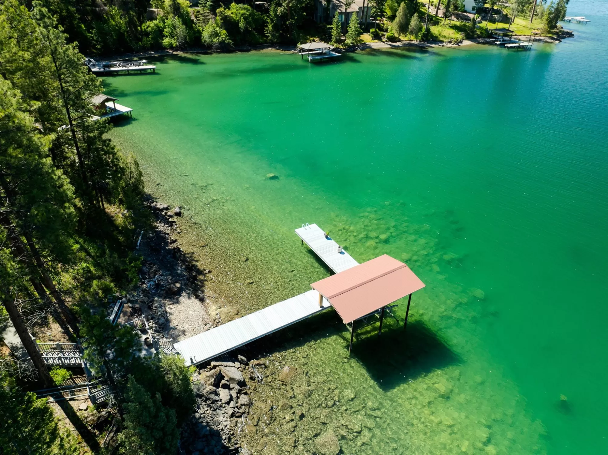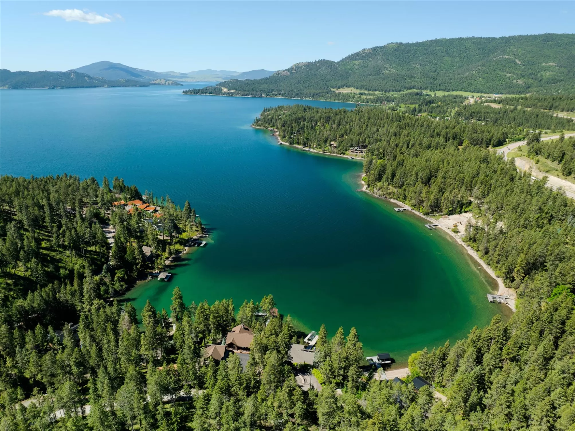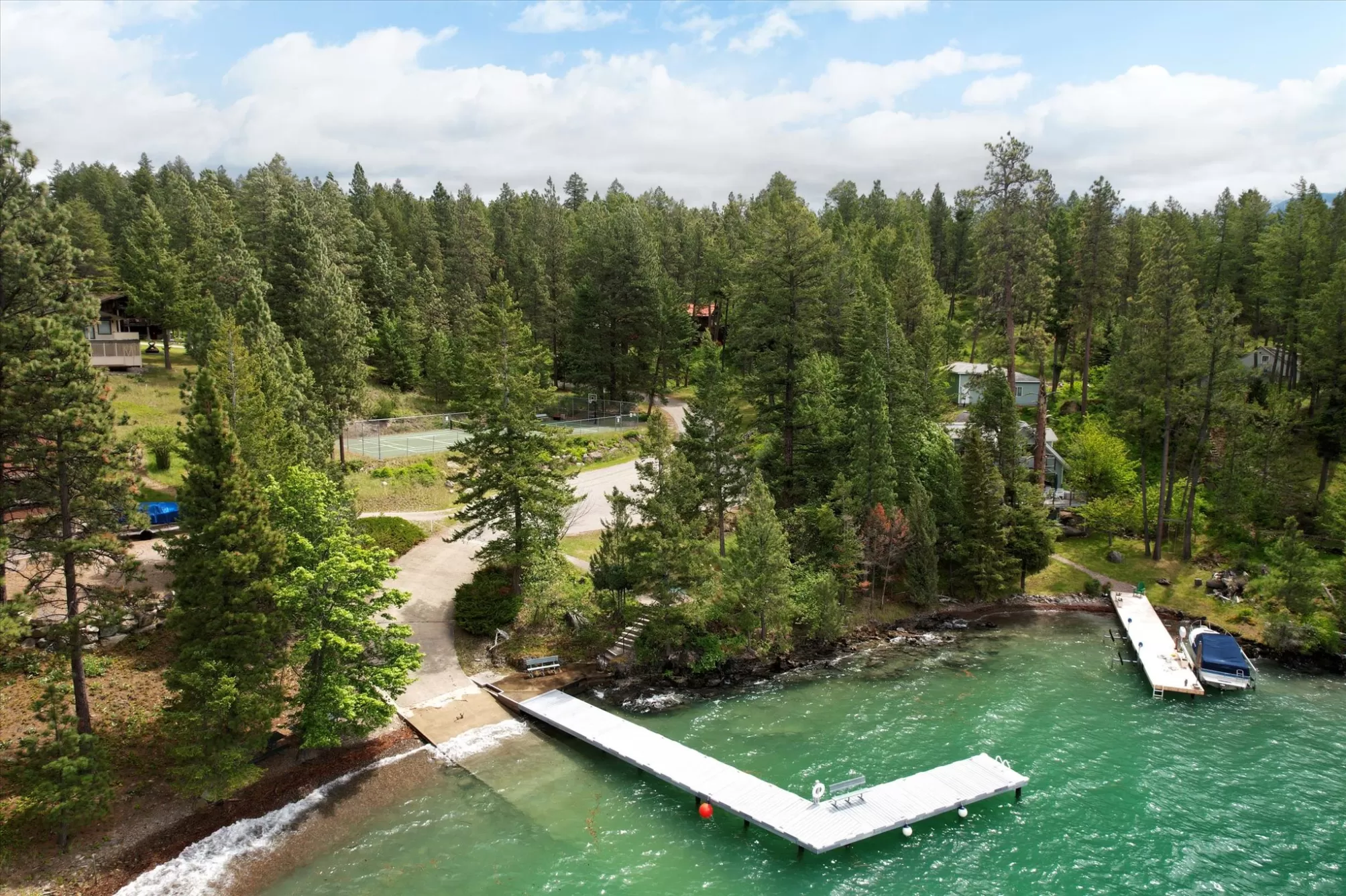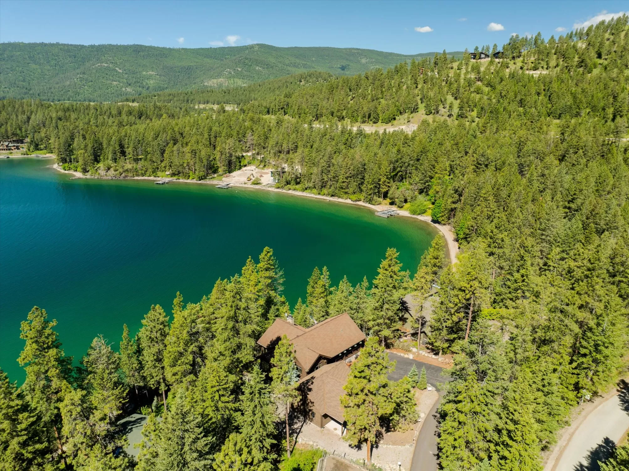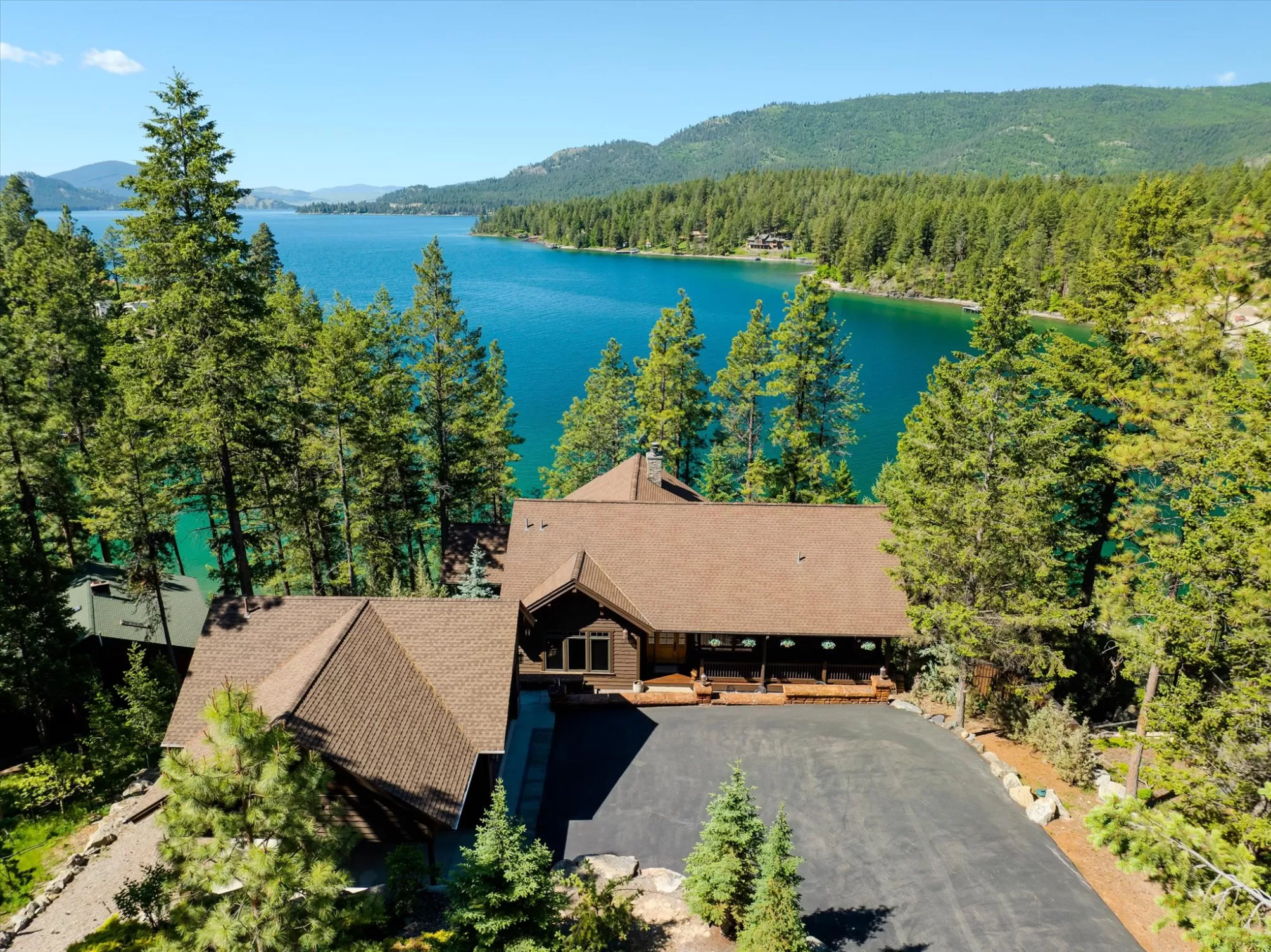 Indulge in the ultimate retreat with this breathtaking custom waterfront home only 2 miles south of Lakeside in the coveted Shelter Bay Estates, where luxury meets nature. Spanning an impressive 4,668 square feet, this exquisite residence boasts 3 bedrooms and 5 bathrooms, all designed with meticulous attention to detail. Revel in 151 feet of pristine Flathead Lake frontage and soak in amazing lake views from one of three expansive decks. This rare gem offers unparalleled privacy and includes high-end amenities such as radiant floor heating, an elevator, a dock with a covered boat lift, multiple garages, a tram, and two full kitchens perfect for entertaining. With four fireplaces and a hot tub for relaxation under the stars, this remarkable home is truly a sanctuary. This home is located in the heart of Dewey’s Bay, one of the most private and protected bays on Flathead Lake, making this exceptional property perfect for discerning buyers seeking both tranquility and sophistication.