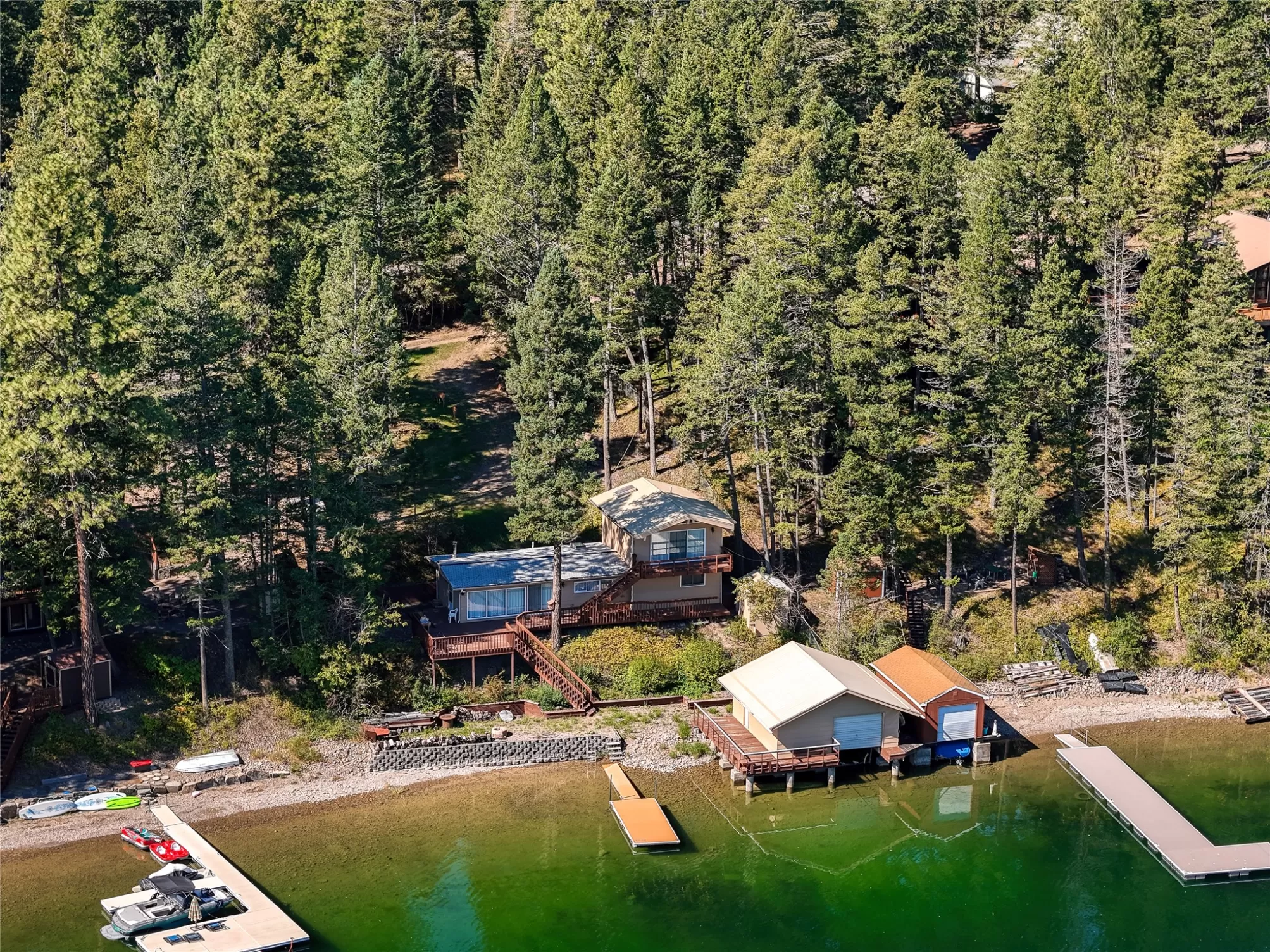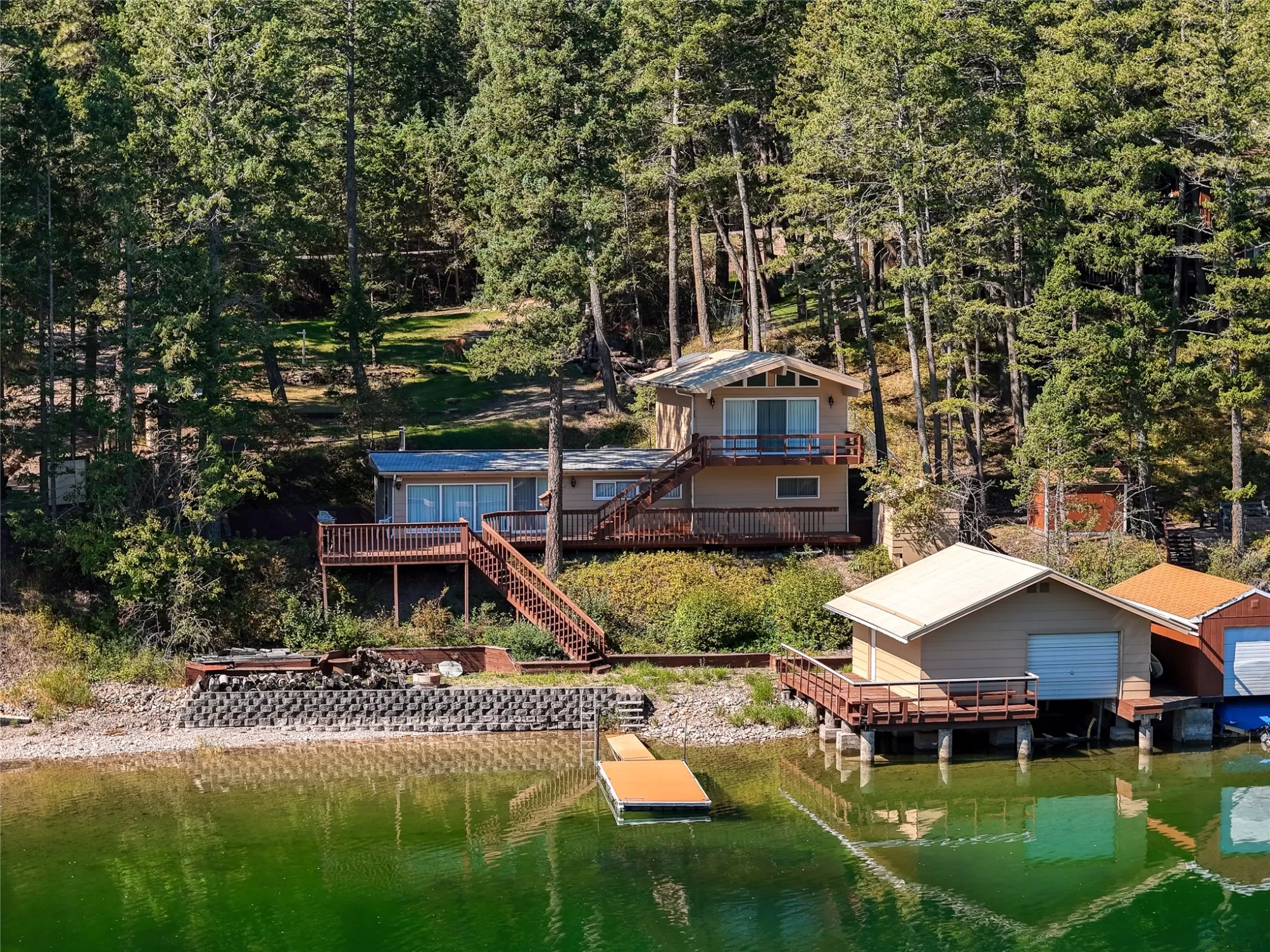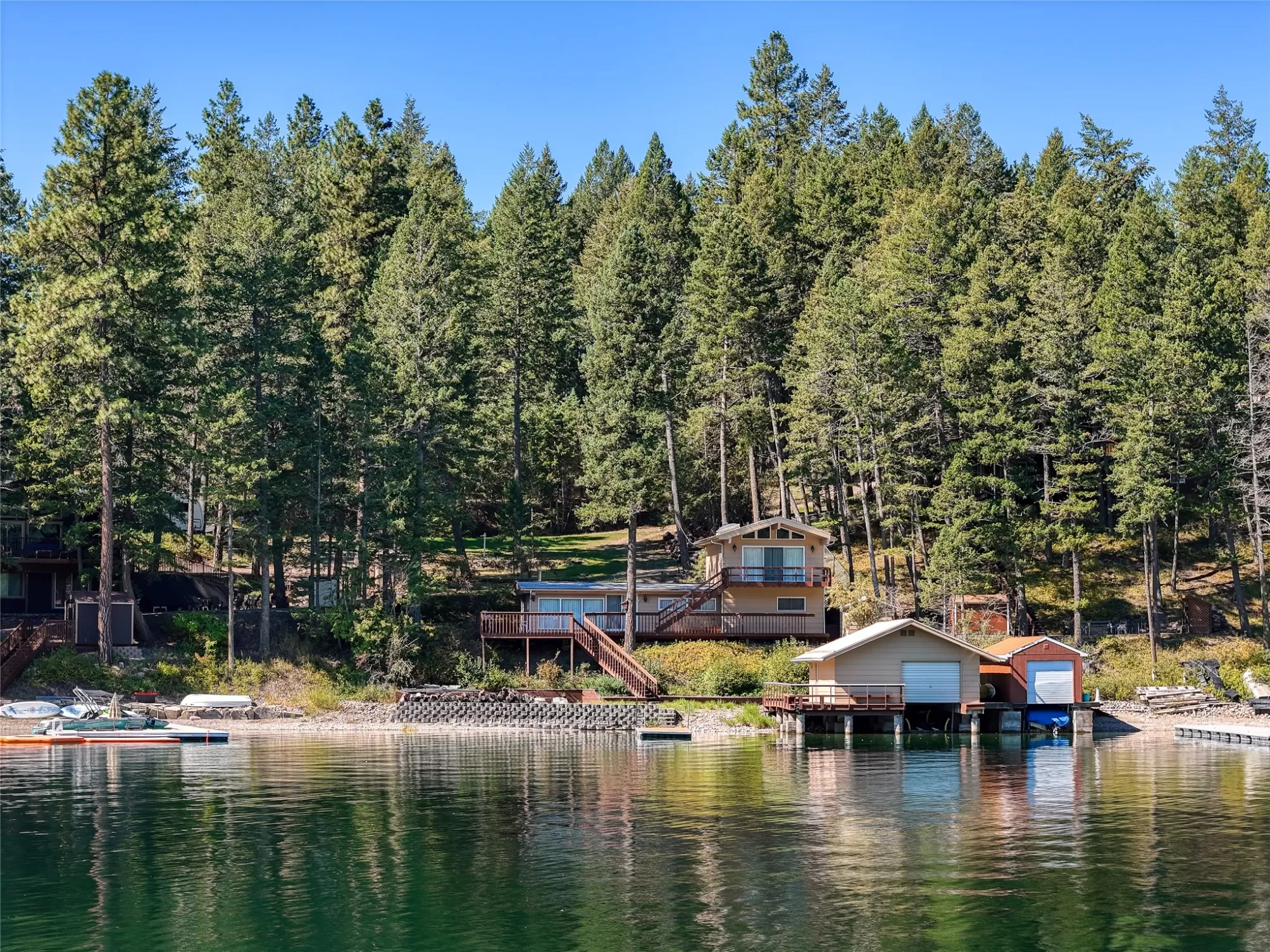 Discover rare west-shore living on Lake Blaine, where unmatched Lake and Mountain views unfold. This 3-bed, 2-bath lake house sits on 95’ of deep-water frontage with a double boat garage and large dock. Perfect for boating, swimming and fishing. Entertain on expansive upper & main-level decks, or unwind in 1,390 sq ft of cozy living space. Don’t miss this legacy property where mountain grandeur meets lakefront ease.