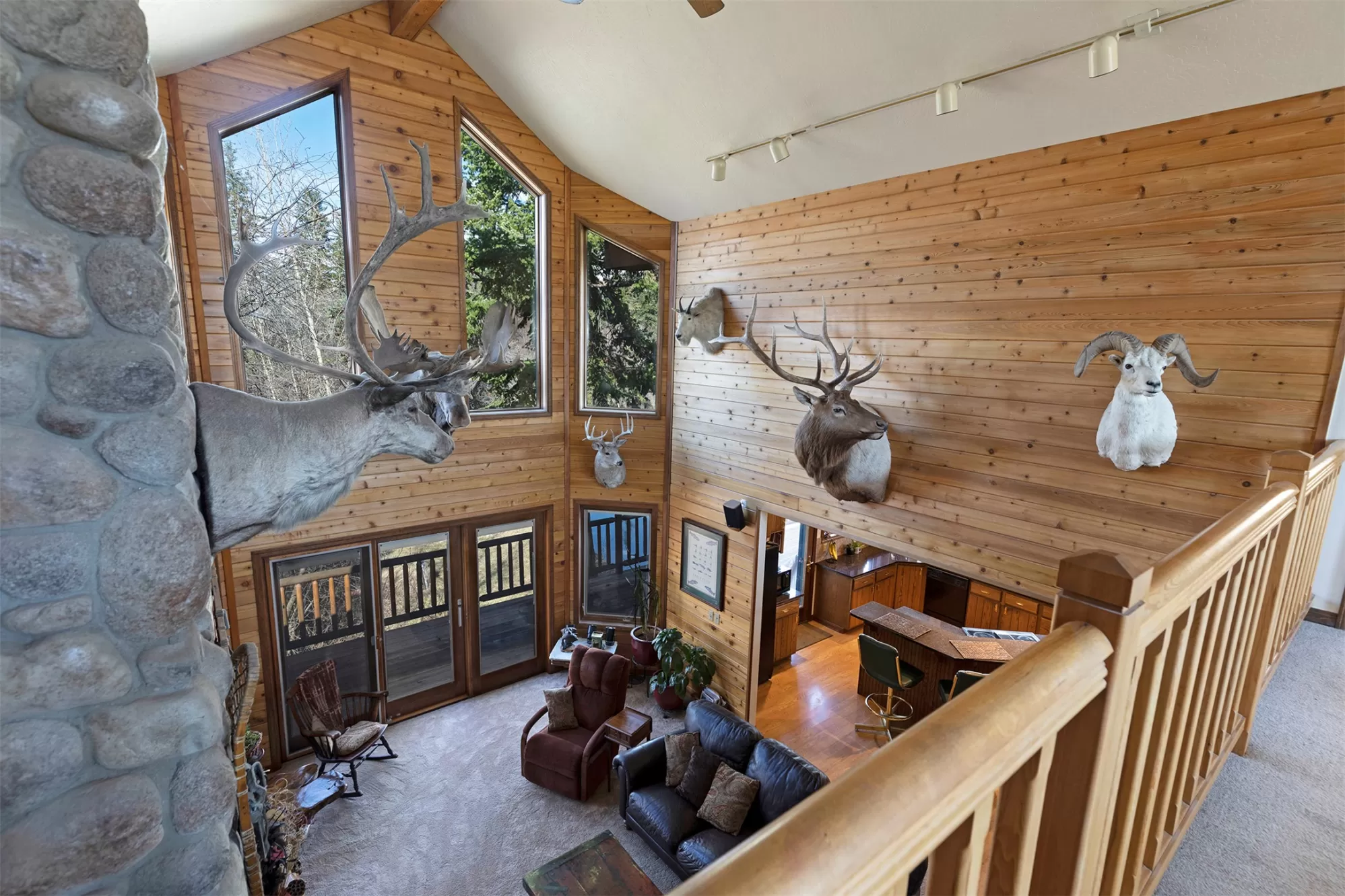 Historic character meets Montana’s wild beauty on this 13-acre property, featuring a 4,363-square-foot log home with three bedrooms and three bathrooms. Originally built with craftsmanship that stands the test of time, the home offers space, comfort, and a deep connection to the land. The main floor features a primary suite with a generous walk-in closet, while upstairs, a large guest room with a window seat and expansive views shares the space with a smaller bedroom or office. A bridge walkway connects the upstairs rooms, overlooking the vaulted living area below. The lower level is fully finished, offering an additional bedroom, bath, spacious living room with a wood stove, and a built-in safe. A separate entrance from the garage leads to this level, providing added flexibility. Designed for everyday function and Montana living, the home includes a wide kitchen with high ceilings, enclosed-shade Pella windows, and a door leading to a covered porch with mountain views. A wood-burning fireplace anchors the living room, while a mudroom off the kitchen provides access to a large pantry and the attached two-car garage. A wraparound cedar porch, multiple covered patios, and a walkway leading to the ponds invite time outdoors. The land itself is steeped in history. Mission Springs, a series of natural spring-fed ponds, maintain a steady 41-degree temperature year-round. Decades ago, this property was home to a working fish hatchery, and remnants of the original operation remain. The creek running through the back of the property connects to Mission Creek, flowing from the Mission Mountains down to the Bison Range. The dense terrain along the waterway attracts diverse wildlife—bears, deer, foxes, otters, eagles, and countless bird species are frequent visitors. Additional structures include a well-maintained older garage along the driveway, complete with a dirt floor and metal garage door, as well as a small bunkhouse with built-in bunk beds and a fly-tying bench. There are also two exterior wood sheds and a dog enclosure attached to the garage. Wide hallways, three-foot doorways, and thoughtful design make the home both inviting and practical. With a wood-burning fireplace upstairs, a stove in the basement, and AC throughout, this home is ready for all seasons. Whether you’re drawn to the history, the land, or the thoughtful details, this property is a rare opportunity to own a piece of Montana’s past and future.