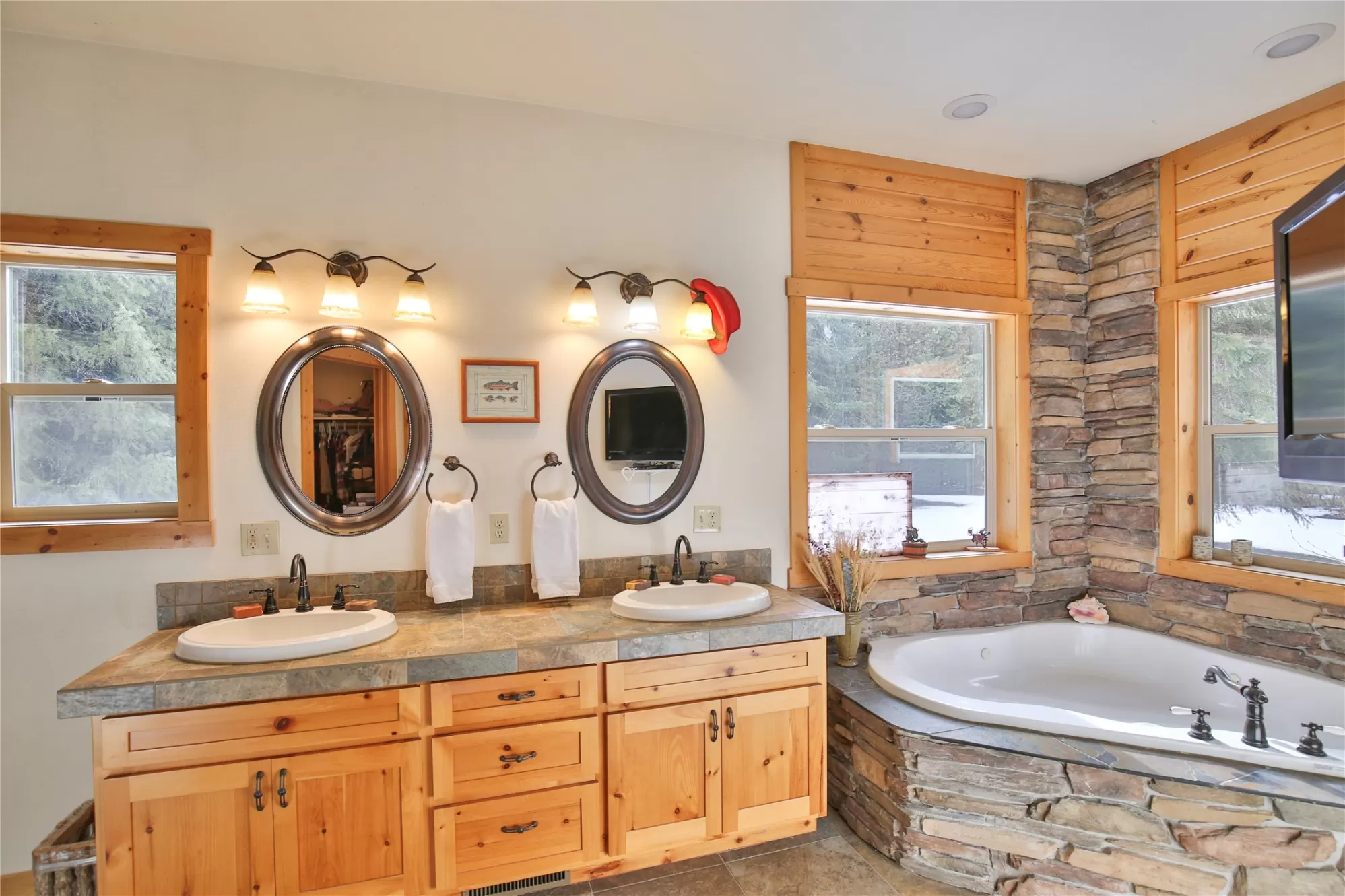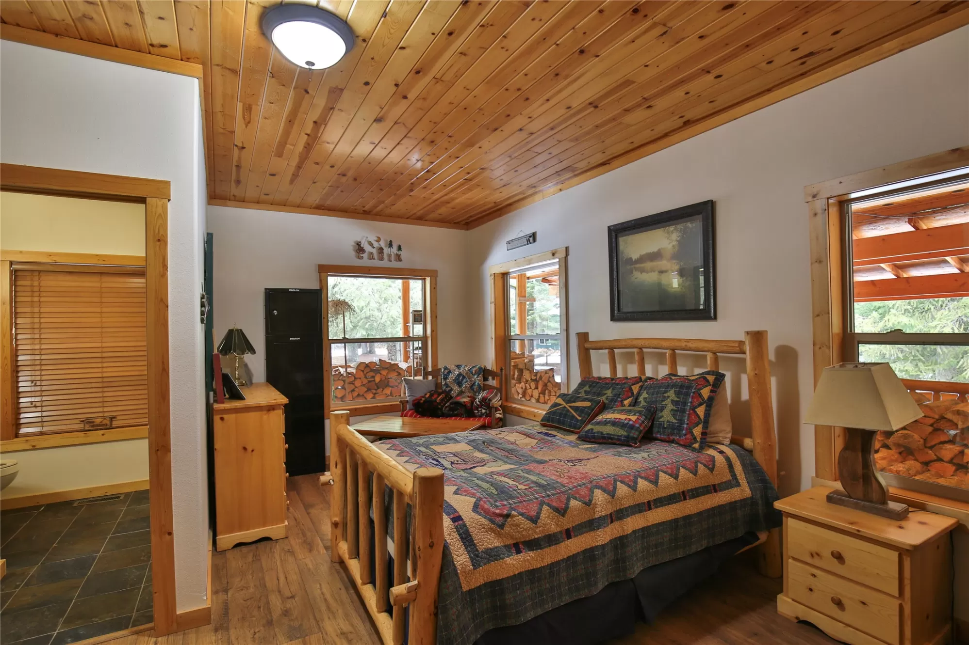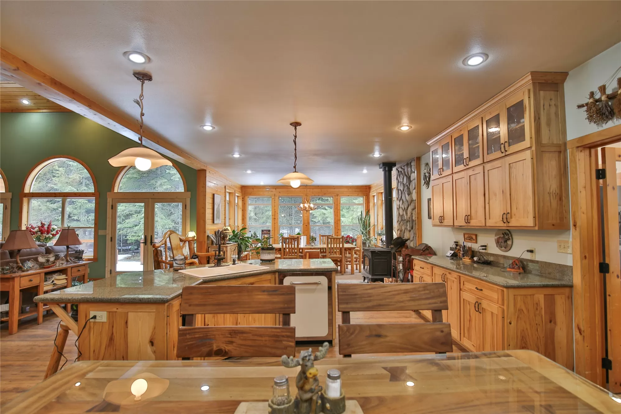 Meadows and Mountains Ranch boasts a beautiful custom, four-bedroom, 5,066-square-foot home with a chef’s kitchen, corner office with windows, spectacular log staircase, four master suites, and lovely covered decks. The main floor has everything you need: a craftsman floor-to-ceiling fireplaces, a tongue-and-groove vaulted pine ceiling, and oversized Anderson clad windows that evoke the sense of living with nature. A lovely dining room is situated off of the kitchen and the master suite is located on the main floor with a jetted corner spa bath with a view. Generous master includes a three-quarter bath on the main floor. Dual master suites with three-quarter baths upstairs, complete with their own decks. A sitting area catwalk upstairs. The home & three-bay shop sit on 19 acres as well as the little 1927 guest quarters. That gorgeous mix of pasture and timber with privacy with an open feel. Plenty of room for our four-legged friends to roam. Close to the quaint town of Noxon, Montana.