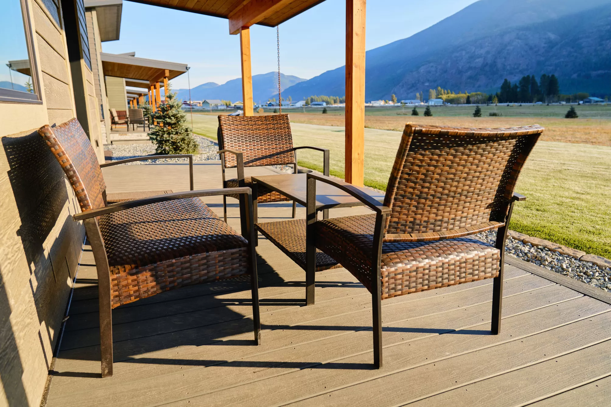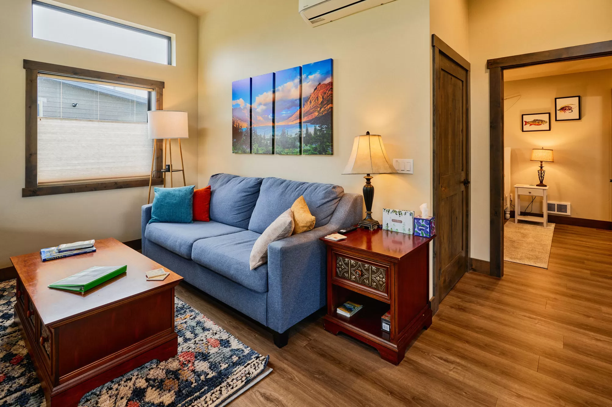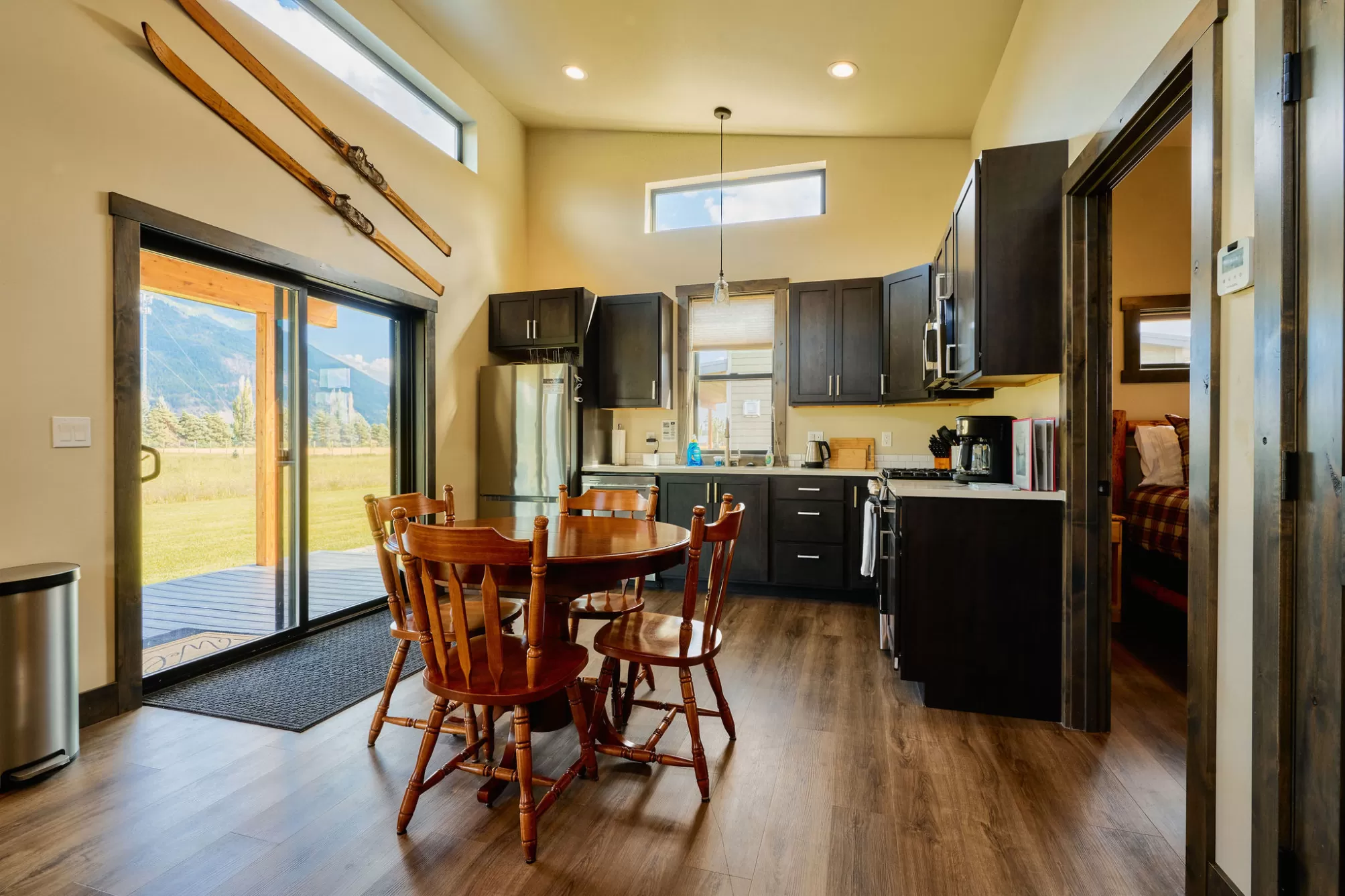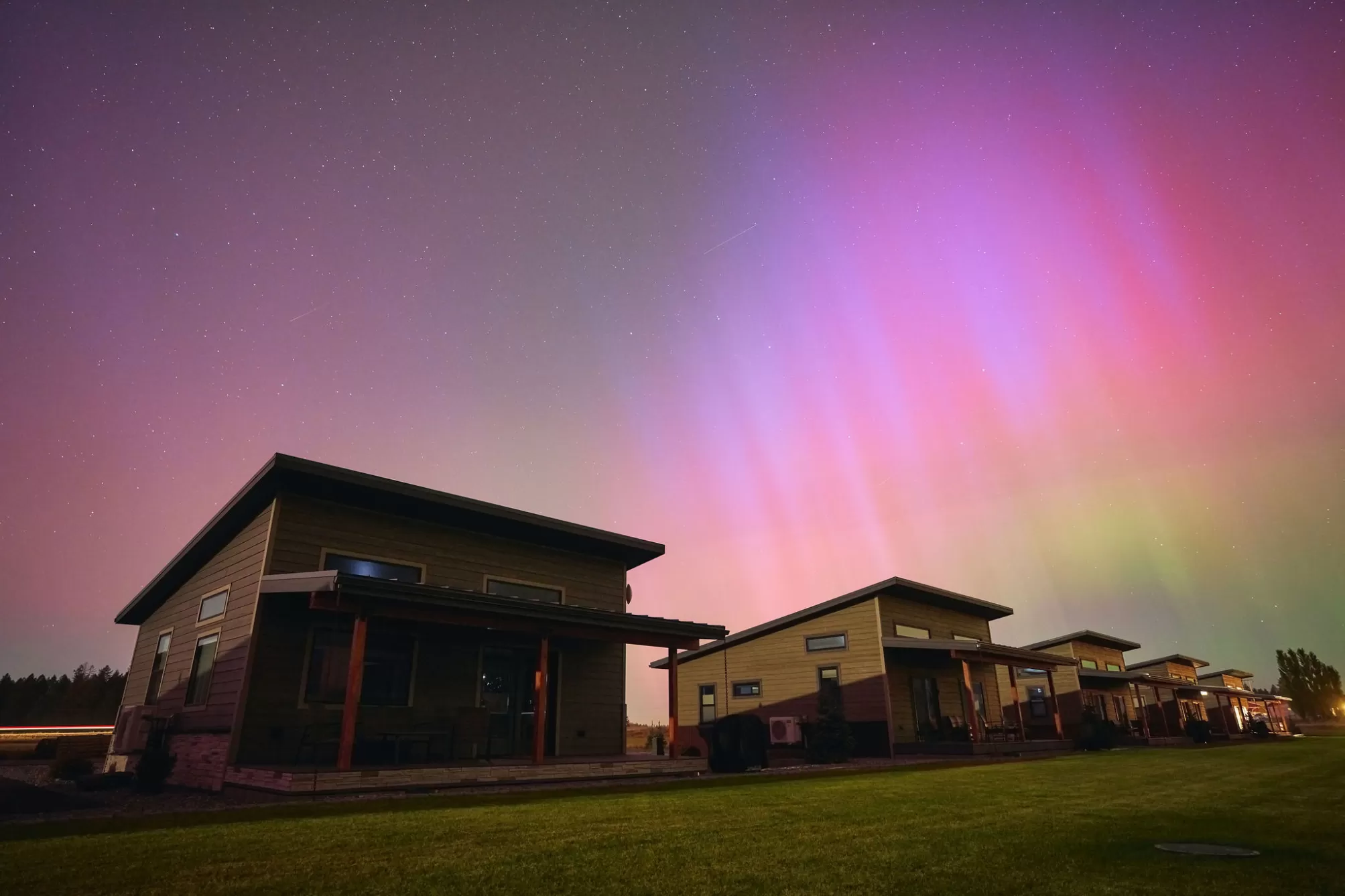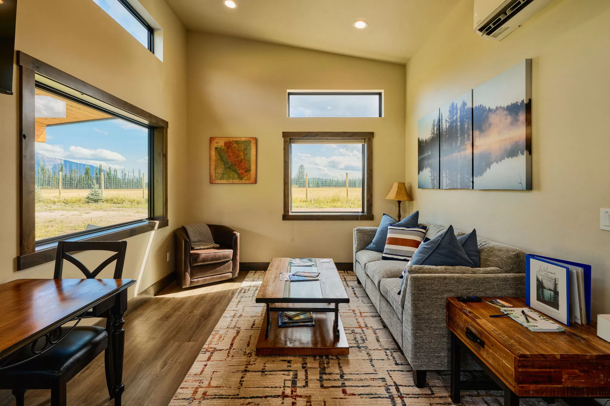 Columbia Mountain View Cabins- Located only a 20-minute drive from the west entrance to Glacier National Park, six stylish quality constructed cabins are offered turnkey. Four of the cabins are 840 sq ft with 2 queen bedrooms, each with its own en-suite bathroom & 2 cabins are 1 bedroom with a full bath. The cabins feature open living & kitchen areas boasting high ceilings, a cozy gas fireplace & sliding glass doors leading to a front porch with stunning Swan Mountain views. Additionally, the cabins have modern, high-quality finishes including stainless steel appliances & luxury vinyl plank flooring throughout. Each unit is equipped with an efficient heat pump system for both heating & cooling. Enjoy the beautiful mountain views from the covered porches. The property includes green space with a sprinkler & drip irrigation system, plus a detached 32x42 garage/ shop. Short-term rental bookings have begun to be placed. The 21 acres is surrounded by farmland & has plenty of space to consider adding more cabins, RV spaces or multi-generational family residences. With plenty of space & scenic views, this property could also be developed into a popular event or wedding venue. Don't miss this incredible opportunity! Located in the heart of Flathead Valley, just 5 minutes from Columbia Falls, the cabins are the perfect basecamp for Montana adventures—whether you’re skiing, hiking, fishing, or exploring local shops & artisan spots. The location is only 15 minutes from Glacier Airport, 20 minutes to Whitefish, 20 minutes to Kalispell, 25 minutes to Bigfork, & Flathead Lake.