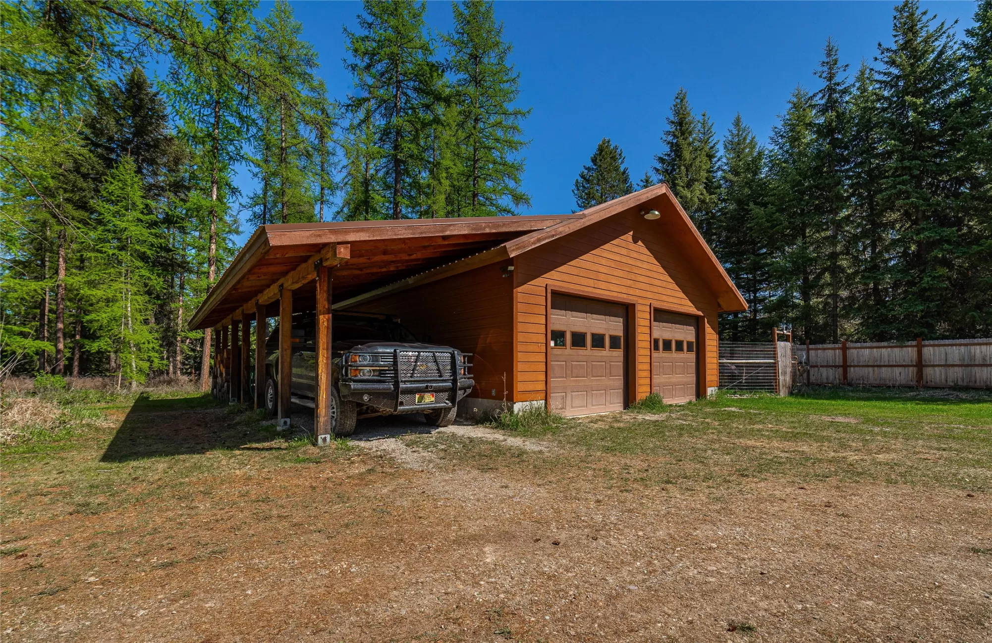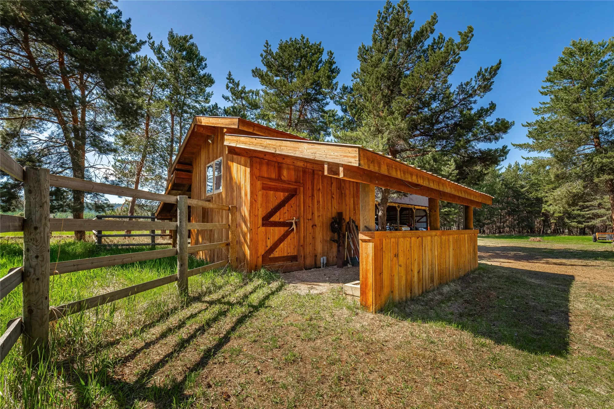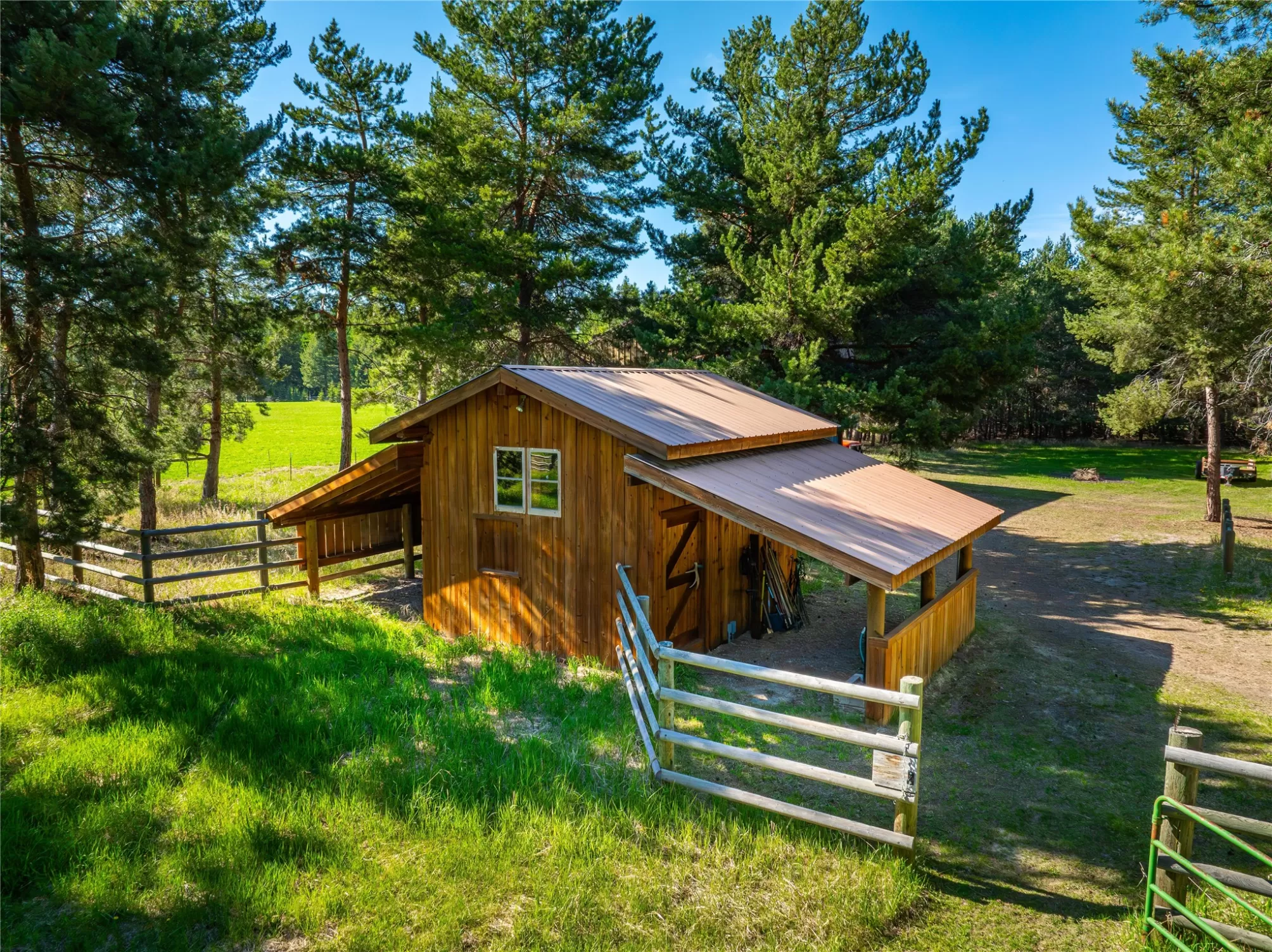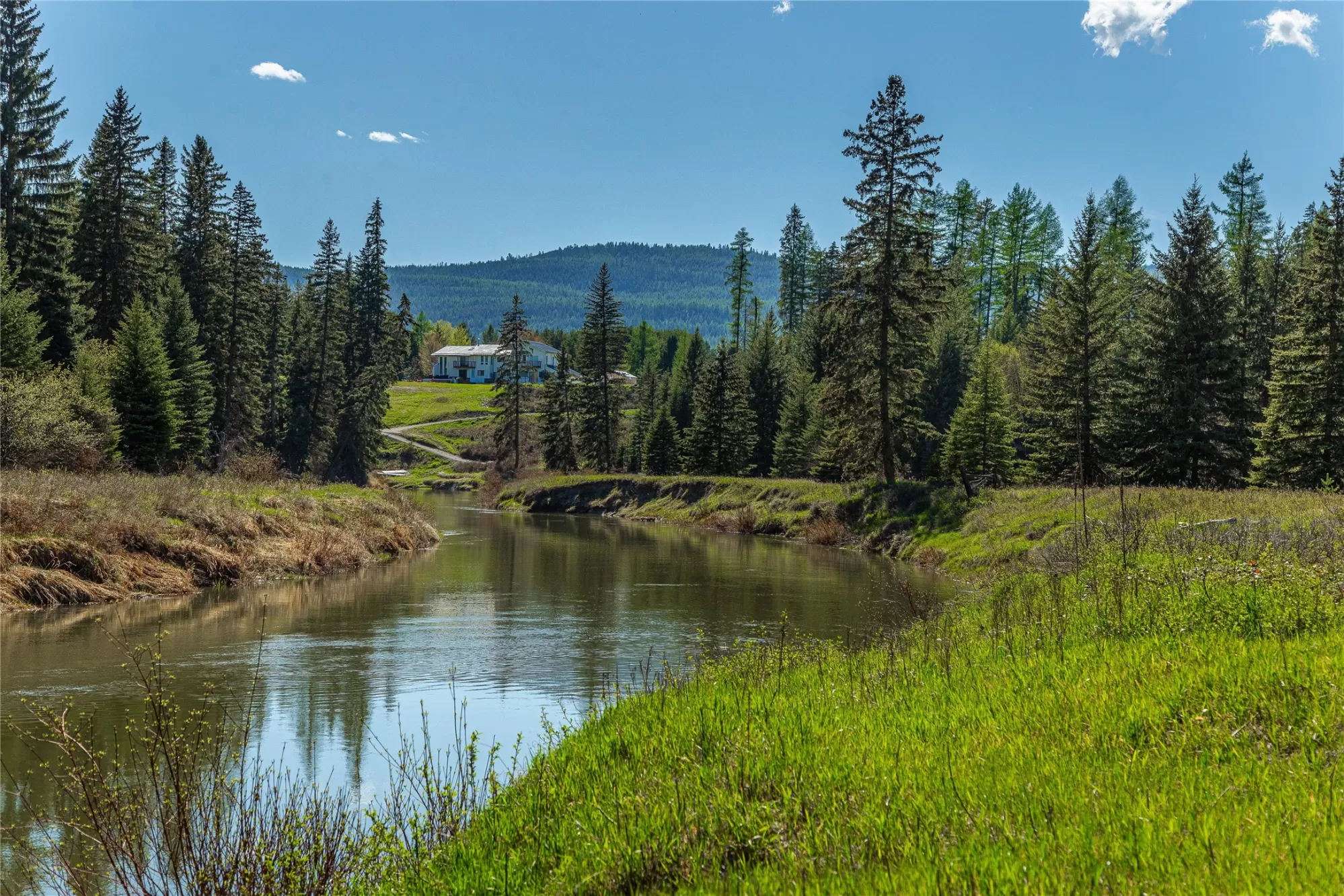 Ready-made Montana living on this private enchanted 20+ acres! This awe-inspiring property is a canvas of mature larch trees, meadows, productive alfalfa/timothy hayfield, fenced garden w/ greenhouse, & Stillwater River frontage, only 15 minutes from the vibrant ski & summer resort town of Whitefish. This lovingly maintained 4,000+/- home features a sizable kitchen with custom cabinets, living room with cathedral ceiling and impressive staircase, and main-floor ensuite master and second large bedroom. An additional bedroom, large bonus room, and open loft sit on the second level. The full basement has its own walk-up exit and pool table. The detached heated 24x40 garage includes woodshop, covered parking, and 14x16 addition with a new custom dry sauna. The 24x48 equipment shed has 4 bays with 12' tall entries. The 16x16 barn can hold 4-5 tons of hay and has an attached loafing shed and paddock with heated waterer.