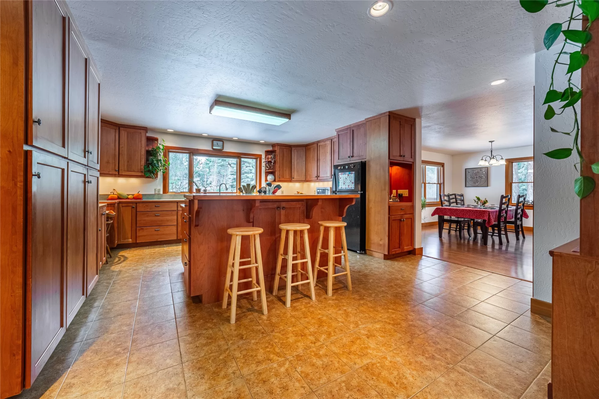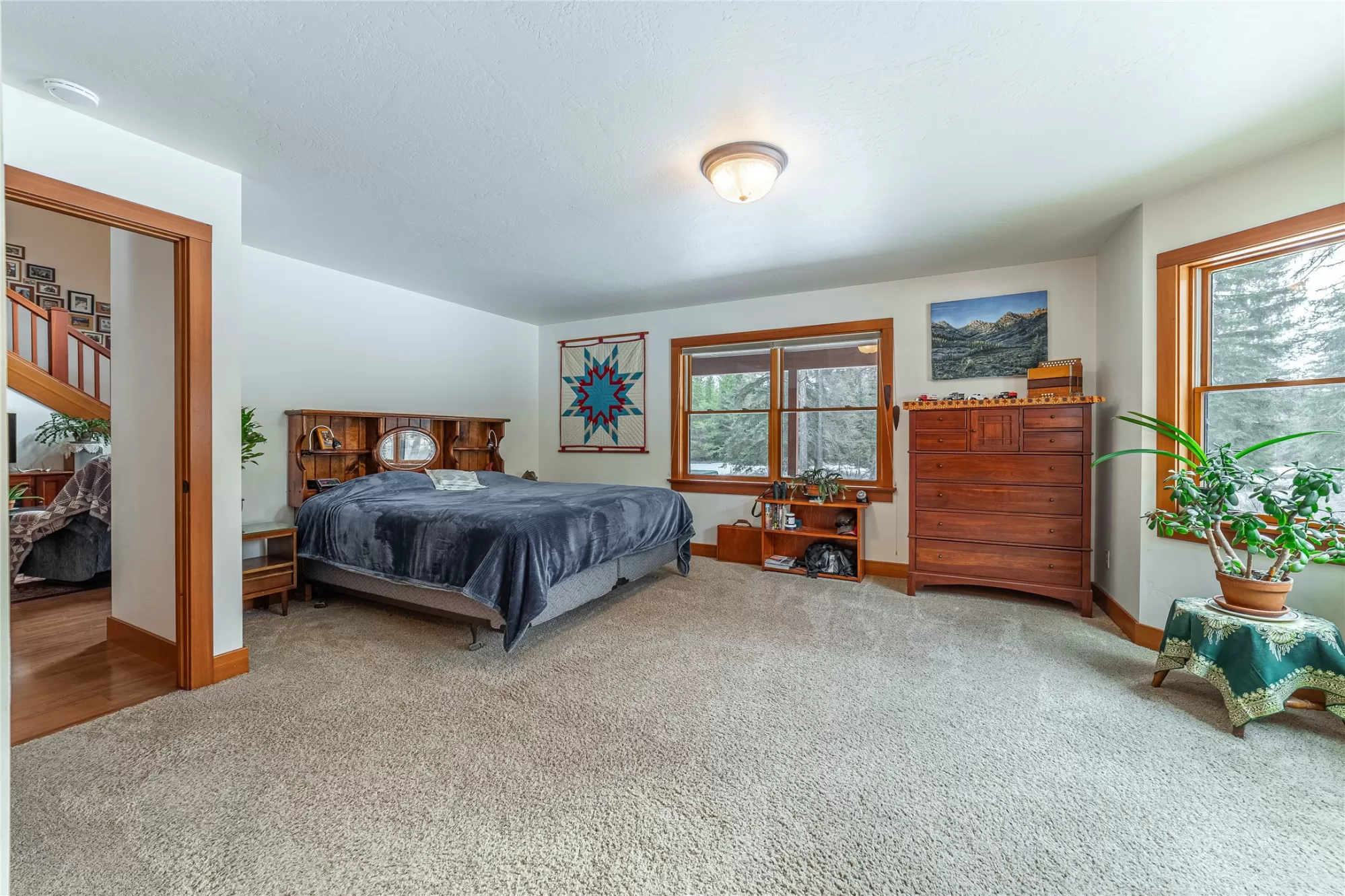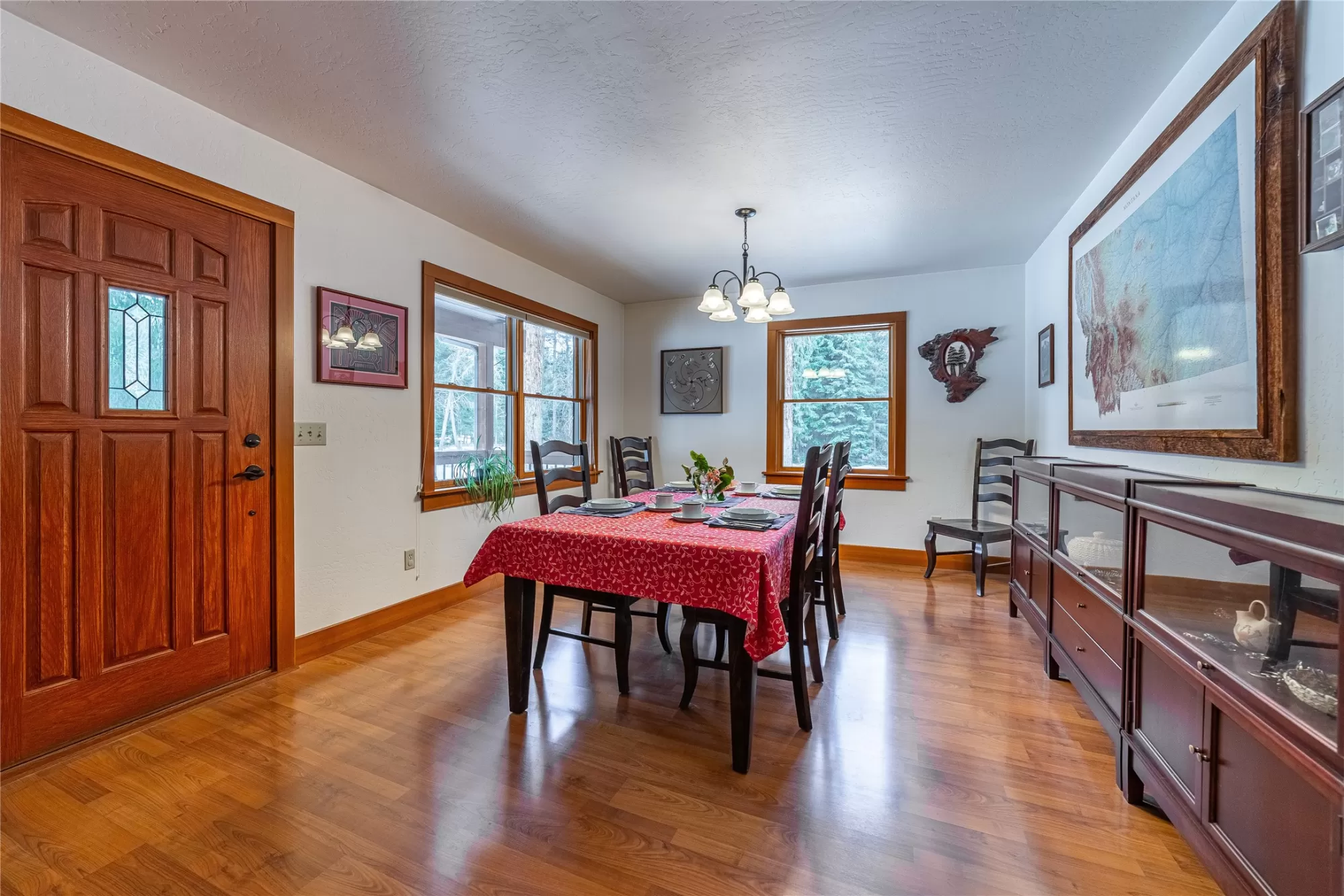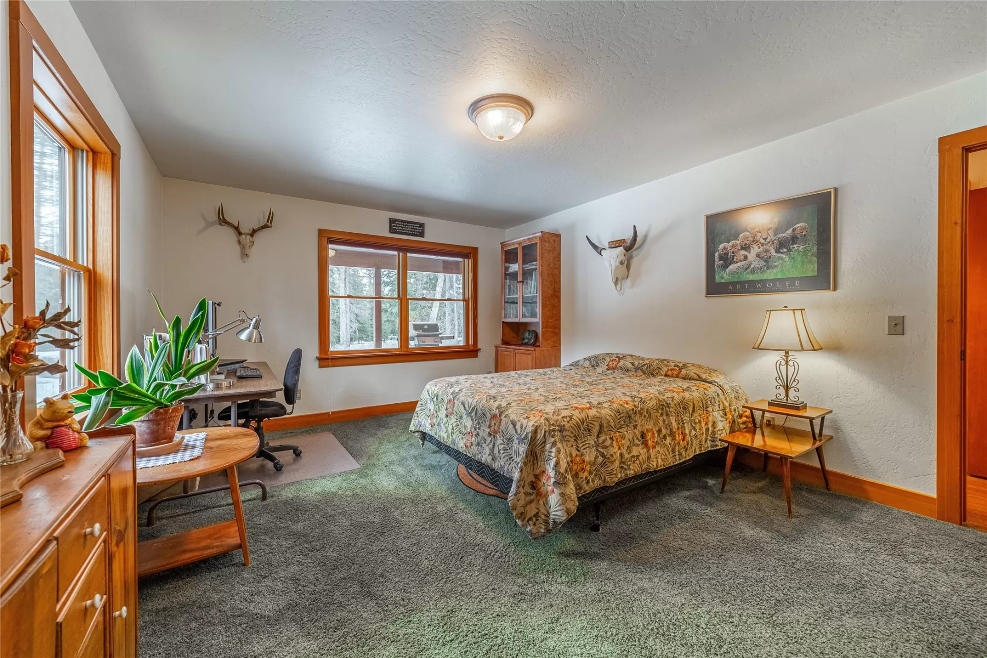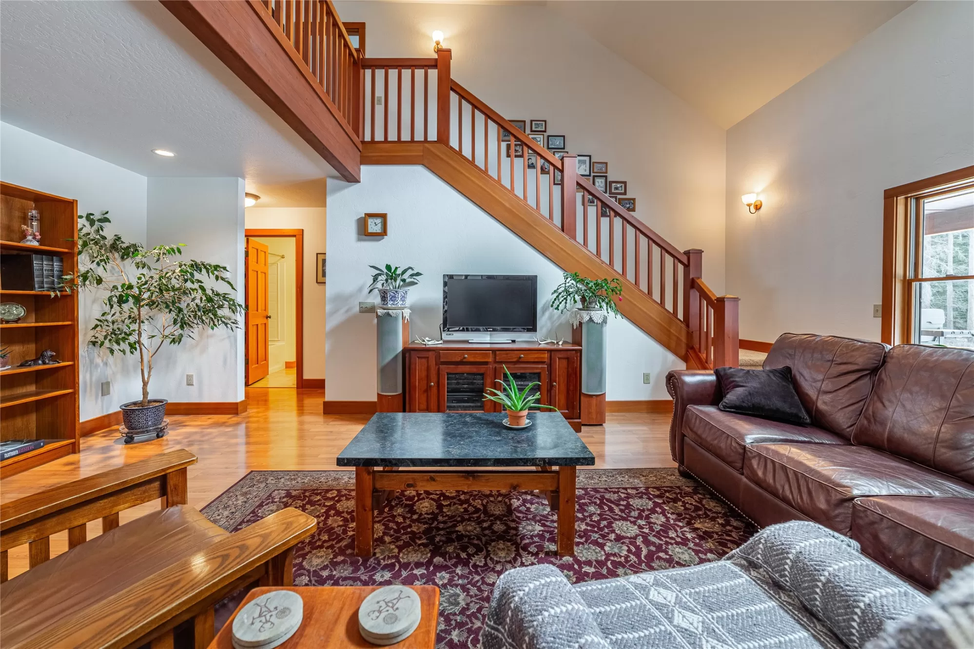 Ready-made Montana living on this private enchanted 20+ acres! This awe-inspiring property is a canvas of mature larch trees, meadows, productive alfalfa/timothy hayfield, fenced garden w/ greenhouse, & Stillwater River frontage, only 15 minutes from the vibrant ski & summer resort town of Whitefish. This lovingly maintained 4,000+/- home features a sizable kitchen with custom cabinets, living room with cathedral ceiling and impressive staircase, and main-floor ensuite master and second large bedroom. An additional bedroom, large bonus room, and open loft sit on the second level. The full basement has its own walk-up exit and pool table. The detached heated 24x40 garage includes woodshop, covered parking, and 14x16 addition with a new custom dry sauna. The 24x48 equipment shed has 4 bays with 12' tall entries. The 16x16 barn can hold 4-5 tons of hay and has an attached loafing shed and paddock with heated waterer.