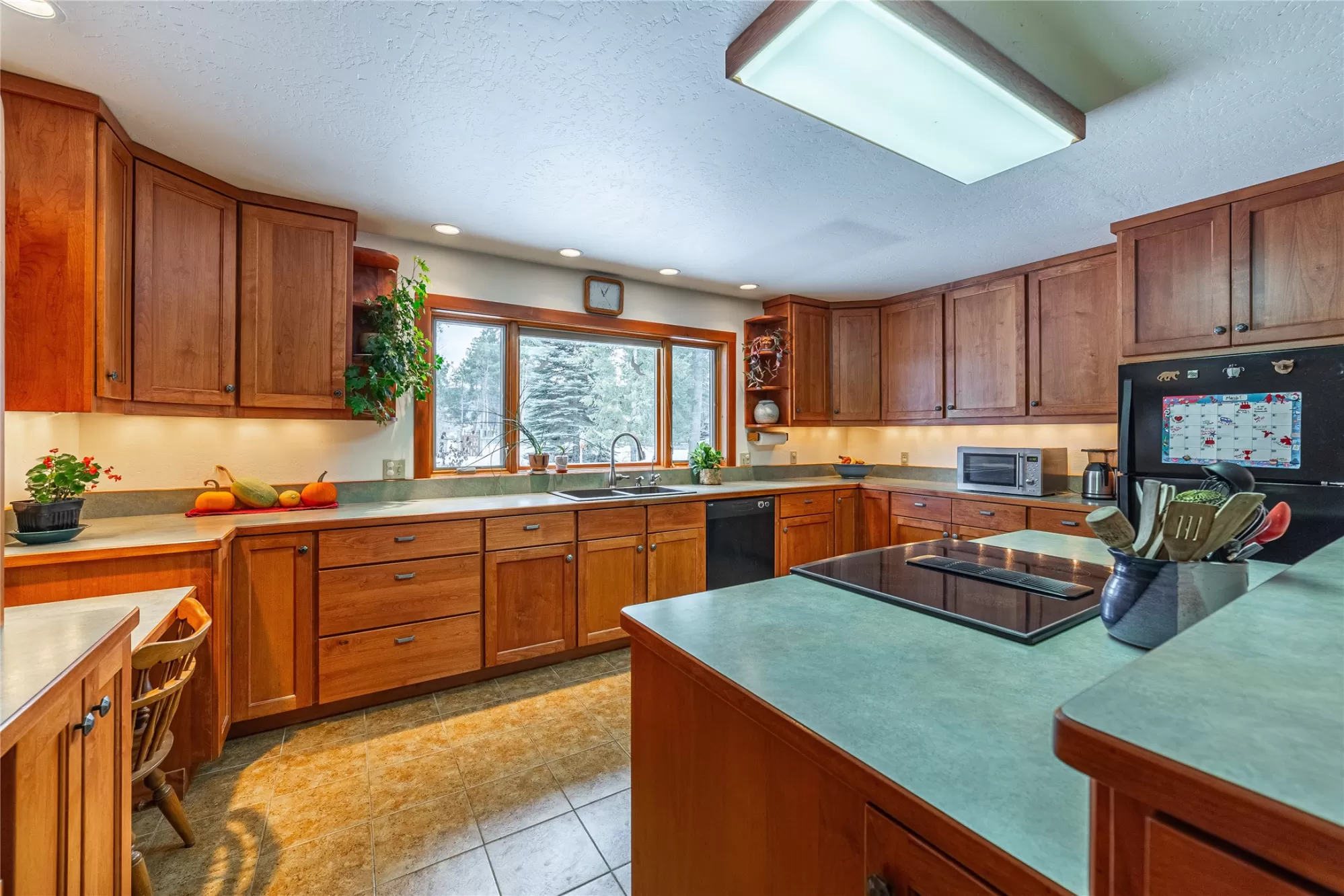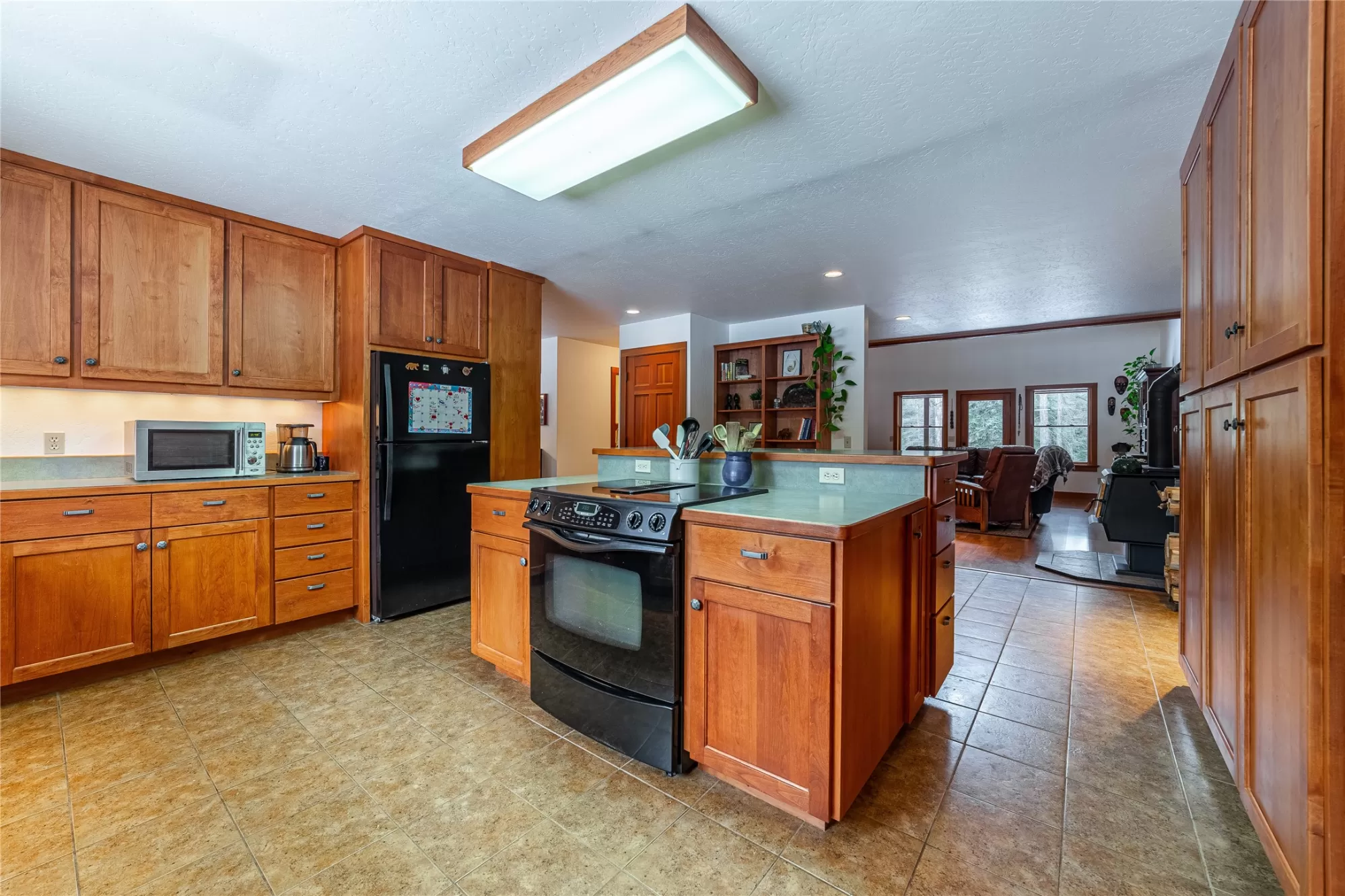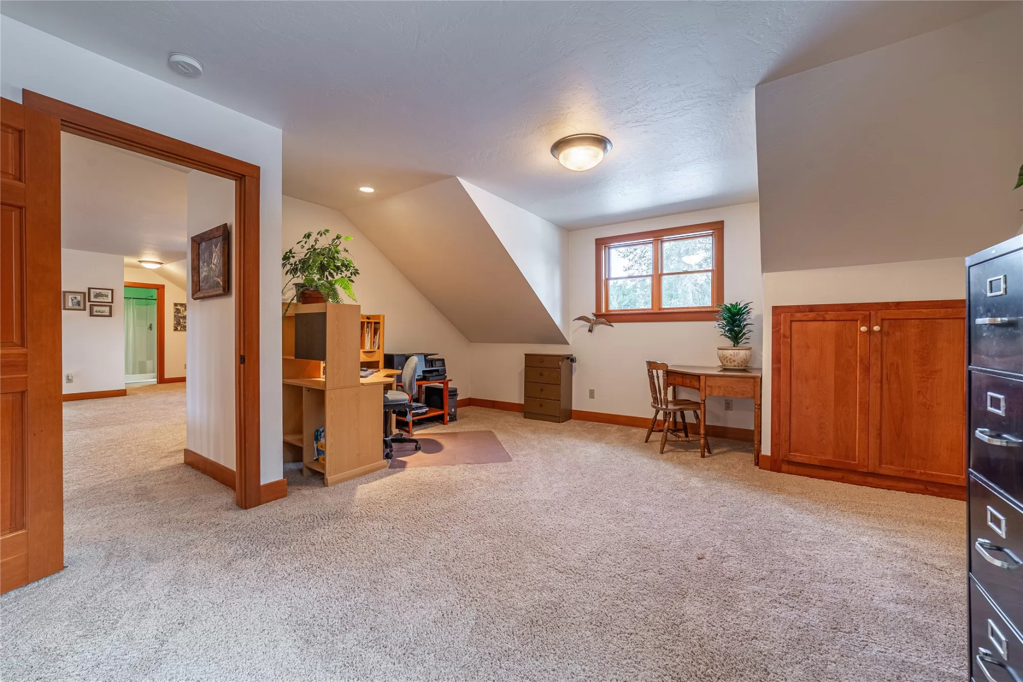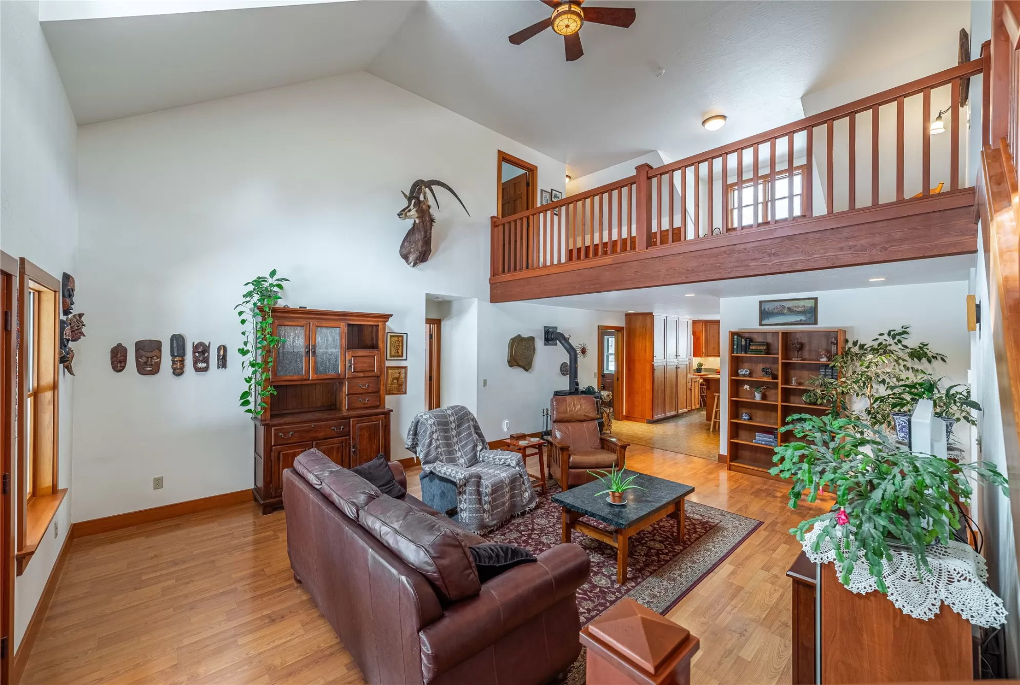 Ready-made Montana living on this private enchanted 20+ acres! This awe-inspiring property is a canvas of mature larch trees, meadows, productive alfalfa/timothy hayfield, fenced garden w/ greenhouse, & Stillwater River frontage, only 15 minutes from the vibrant ski & summer resort town of Whitefish. This lovingly maintained 4,000+/- home features a sizable kitchen with custom cabinets, living room with cathedral ceiling and impressive staircase, and main-floor ensuite master and second large bedroom. An additional bedroom, large bonus room, and open loft sit on the second level. The full basement has its own walk-up exit and pool table. The detached heated 24x40 garage includes woodshop, covered parking, and 14x16 addition with a new custom dry sauna. The 24x48 equipment shed has 4 bays with 12' tall entries. The 16x16 barn can hold 4-5 tons of hay and has an attached loafing shed and paddock with heated waterer.