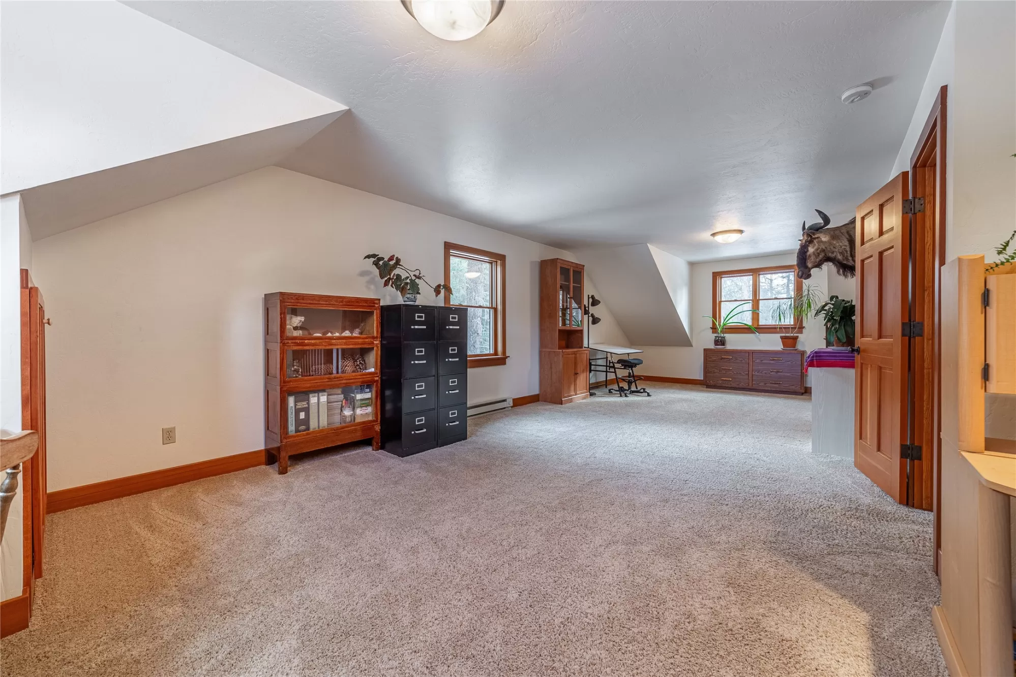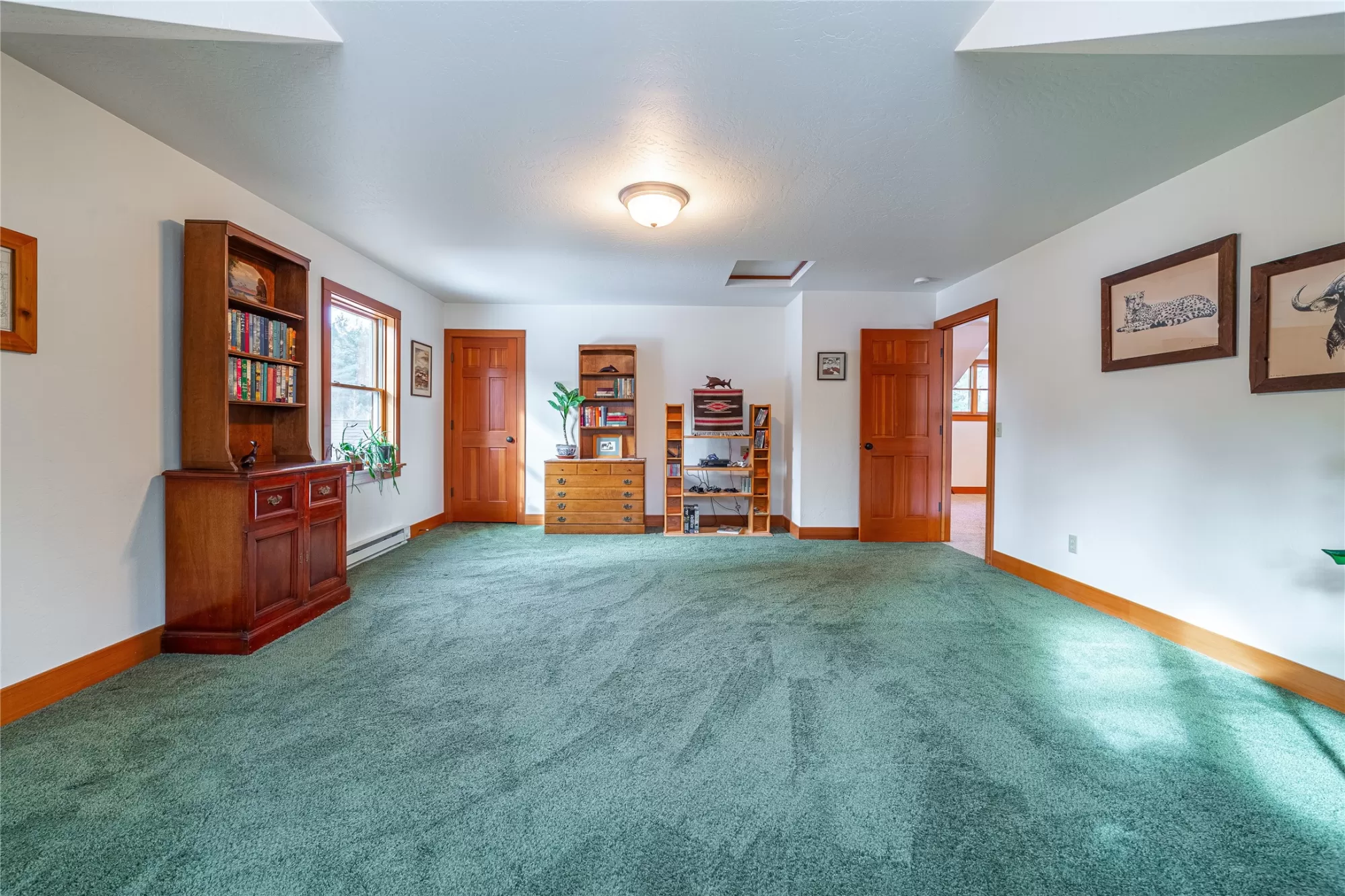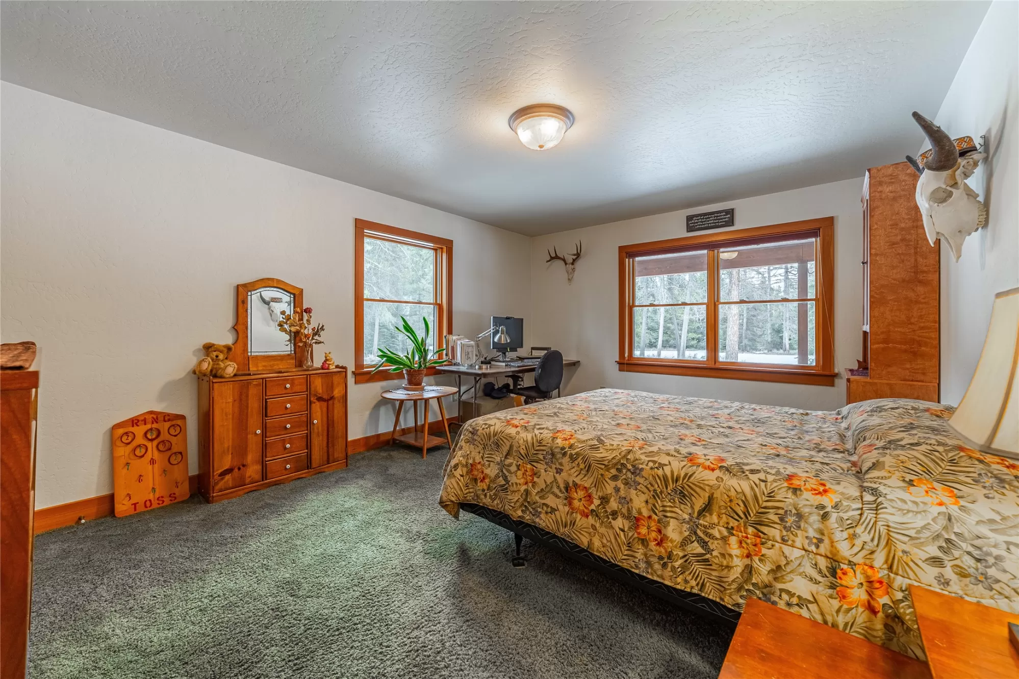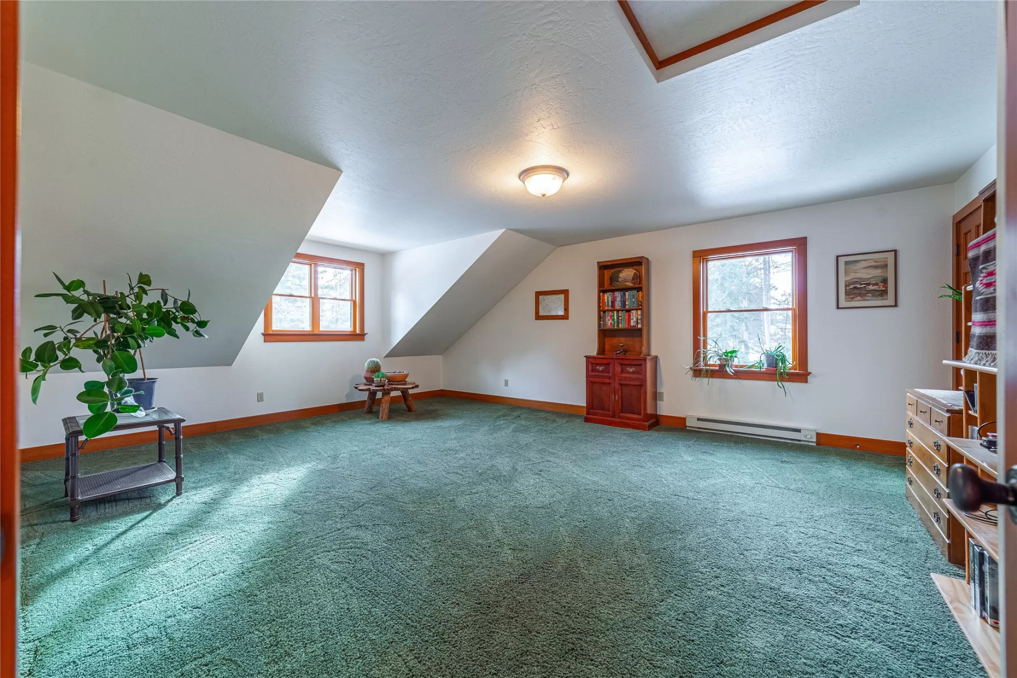 Ready-made Montana living on this private enchanted 20+ acres! This awe-inspiring property is a canvas of mature larch trees, meadows, productive alfalfa/timothy hayfield, fenced garden w/ greenhouse, & Stillwater River frontage, only 15 minutes from the vibrant ski & summer resort town of Whitefish. This lovingly maintained 4,000+/- home features a sizable kitchen with custom cabinets, living room with cathedral ceiling and impressive staircase, and main-floor ensuite master and second large bedroom. An additional bedroom, large bonus room, and open loft sit on the second level. The full basement has its own walk-up exit and pool table. The detached heated 24x40 garage includes woodshop, covered parking, and 14x16 addition with a new custom dry sauna. The 24x48 equipment shed has 4 bays with 12' tall entries. The 16x16 barn can hold 4-5 tons of hay and has an attached loafing shed and paddock with heated waterer.