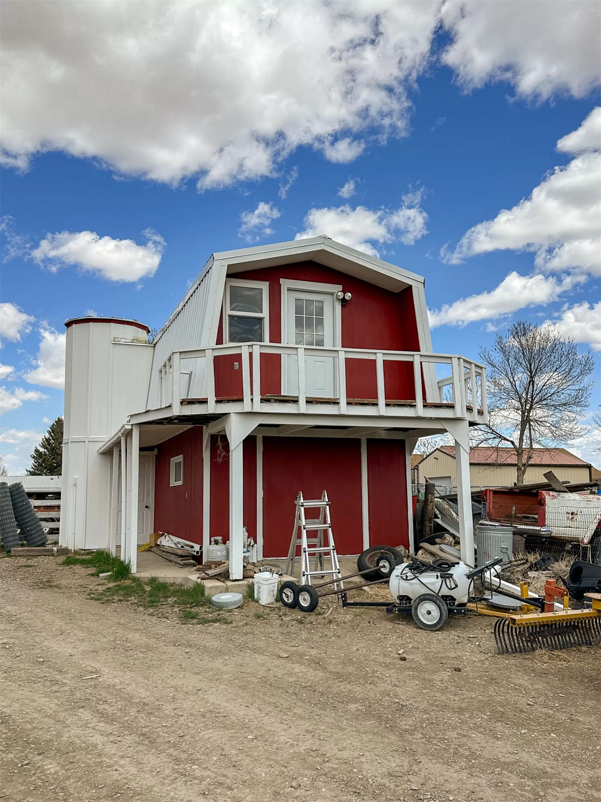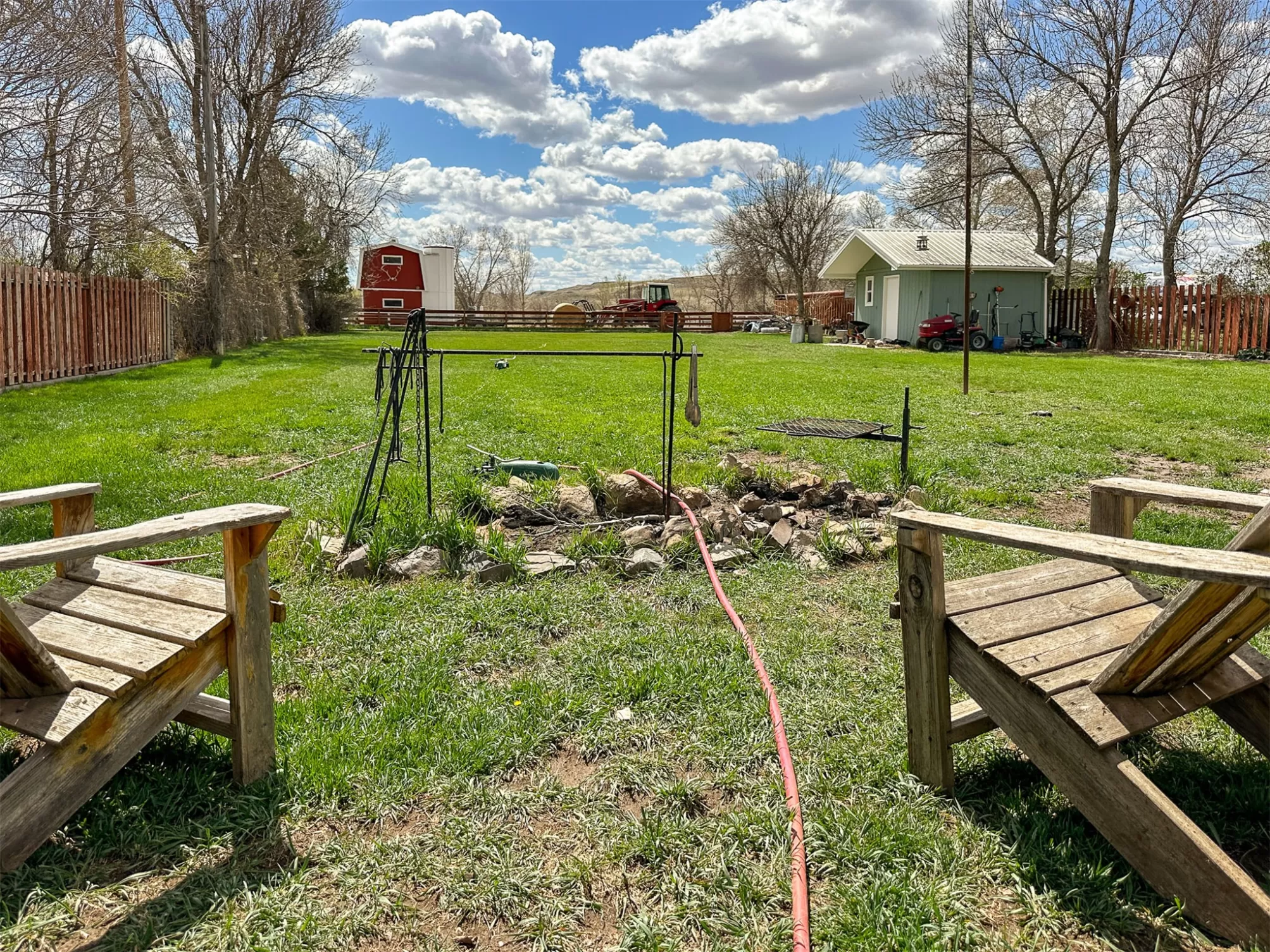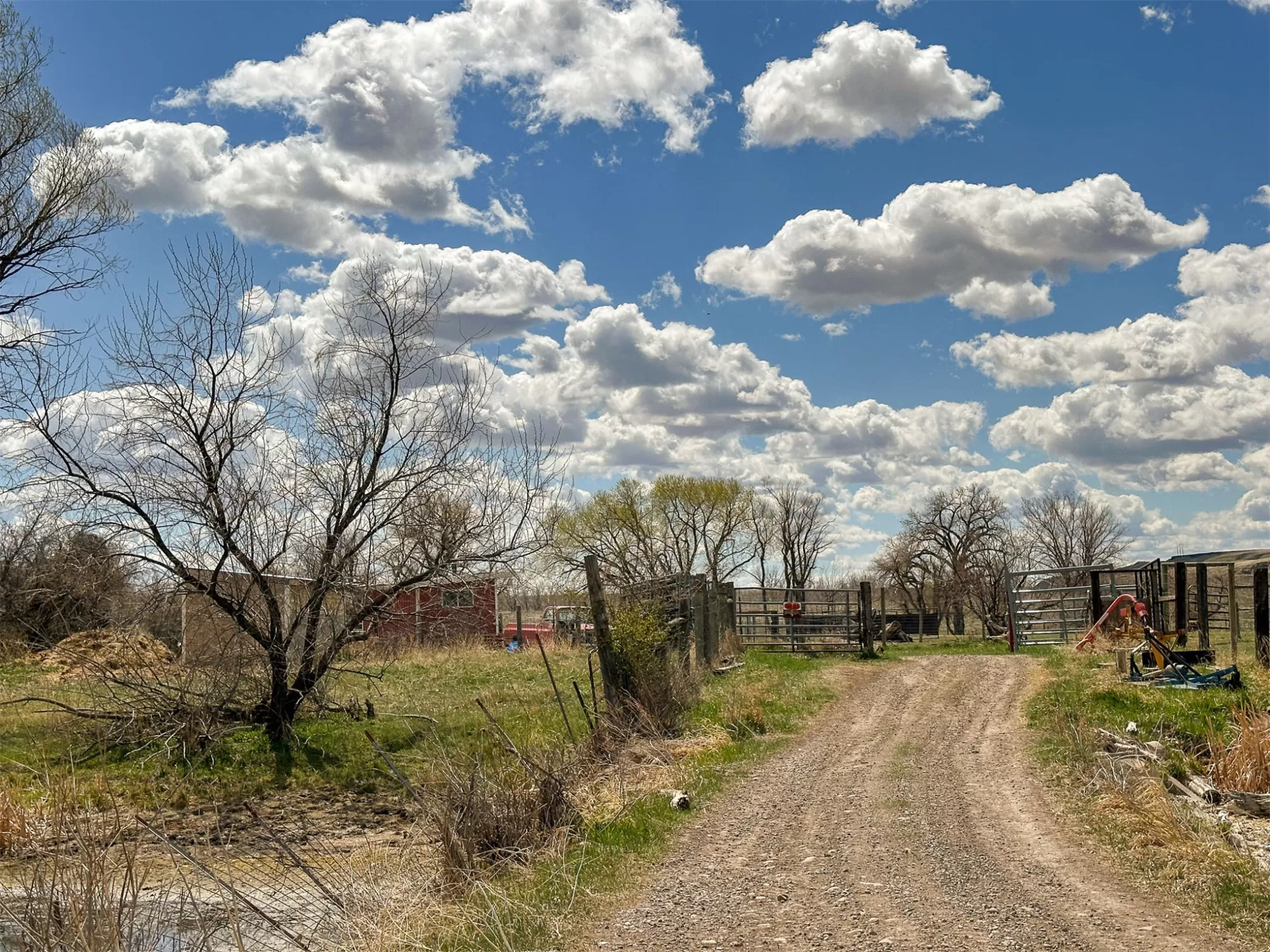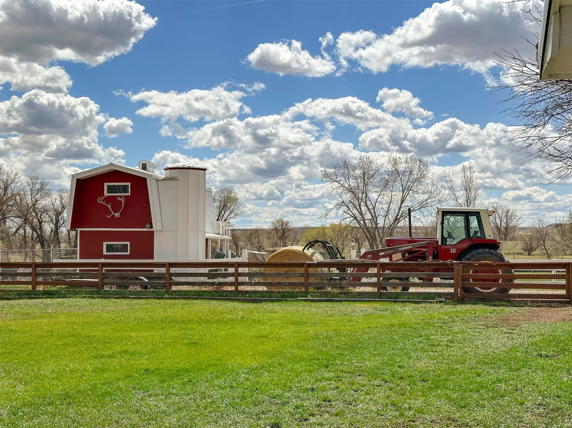 Welcome to your new home that is ideal for horses, livestock and even bison! It combines the best of all worlds with an easy and commutable distance to Great Falls and enough property to support your agricultural needs. This listing includes 4 already divided lots, a total of 12.23 acres, with a slough AND it abuts the renowned 406 Arena trails. The 406 attracts horse people from around the world and the trails are in your back yard. Enjoy sturdy fences, since the seller keeps bison on the property now, stunning butte views and a sophisticated stock watering system. The home is a classic ranch style with two bedrooms and a full bath upstairs and a non-egress lower living room, bedroom, and a 3/4 bathroom. On the main level, there is an enormous, and genuine stone, wood-burning fireplace and the living room boasts tongue and groove pine ceilings and walls. City water AND a well, community sewer, natural gas. Enjoy a detached two/car garage, a shed and a barn-inspired "person cave,” that has an upstairs with a deck and a main floor space that could be converted to corrals or retained as additional storage. Metal roofs; steel siding. Original hardwood floors on the upper level. Gas stove in lower level. You'll love the big, covered deck off the kitchen, with views. Grass lawn around the house. Bay window in the kitchen.