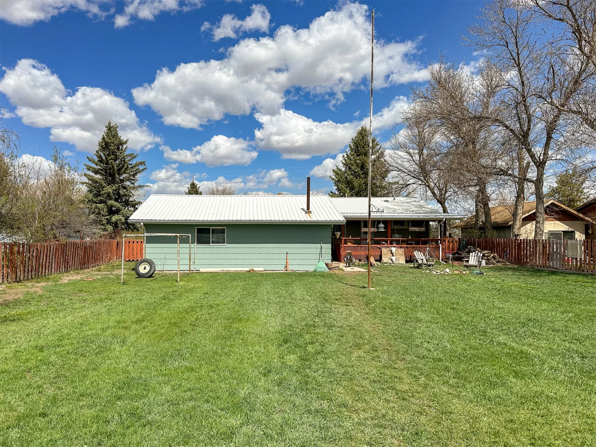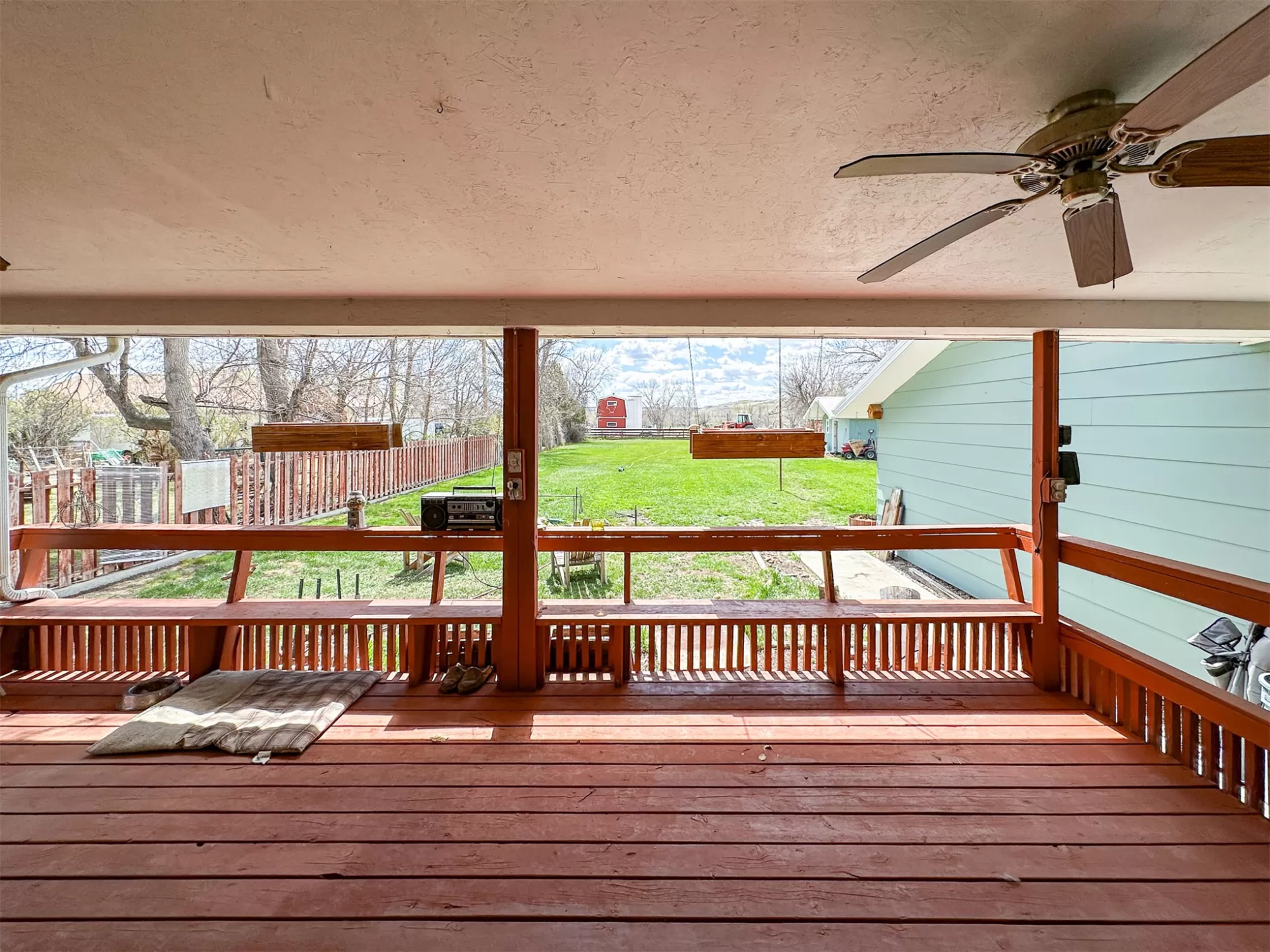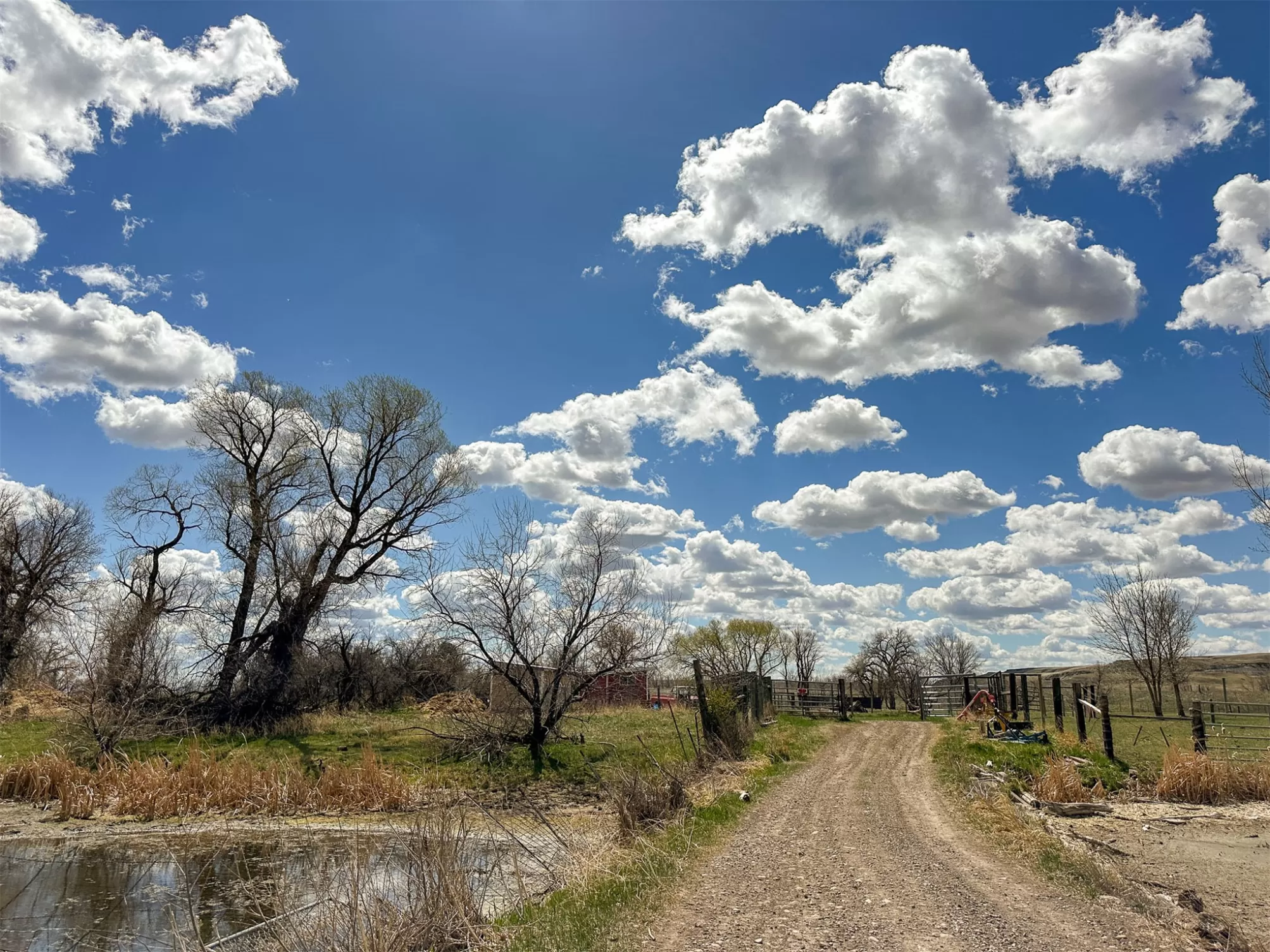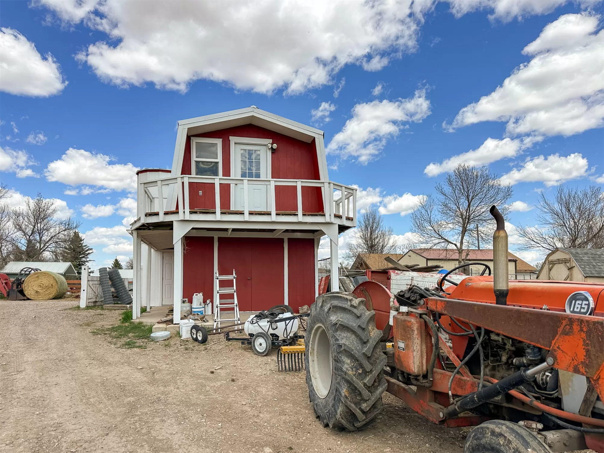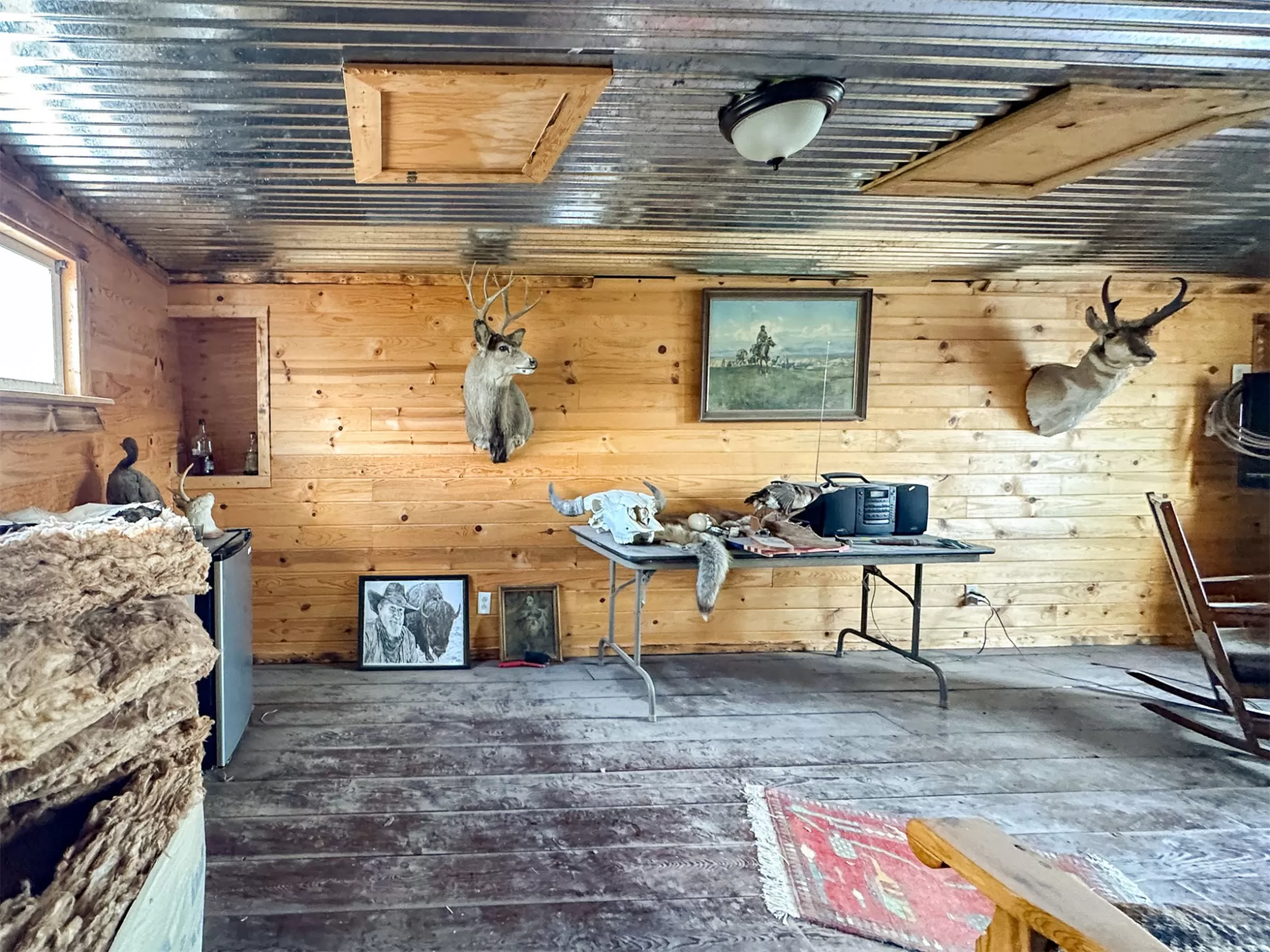 Welcome to your new home that is ideal for horses, livestock and even bison! It combines the best of all worlds with an easy and commutable distance to Great Falls and enough property to support your agricultural needs. This listing includes 4 already divided lots, a total of 12.23 acres, with a slough AND it abuts the renowned 406 Arena trails. The 406 attracts horse people from around the world and the trails are in your back yard. Enjoy sturdy fences, since the seller keeps bison on the property now, stunning butte views and a sophisticated stock watering system. The home is a classic ranch style with two bedrooms and a full bath upstairs and a non-egress lower living room, bedroom, and a 3/4 bathroom. On the main level, there is an enormous, and genuine stone, wood-burning fireplace and the living room boasts tongue and groove pine ceilings and walls. City water AND a well, community sewer, natural gas. Enjoy a detached two/car garage, a shed and a barn-inspired "person cave,” that has an upstairs with a deck and a main floor space that could be converted to corrals or retained as additional storage. Metal roofs; steel siding. Original hardwood floors on the upper level. Gas stove in lower level. You'll love the big, covered deck off the kitchen, with views. Grass lawn around the house. Bay window in the kitchen.