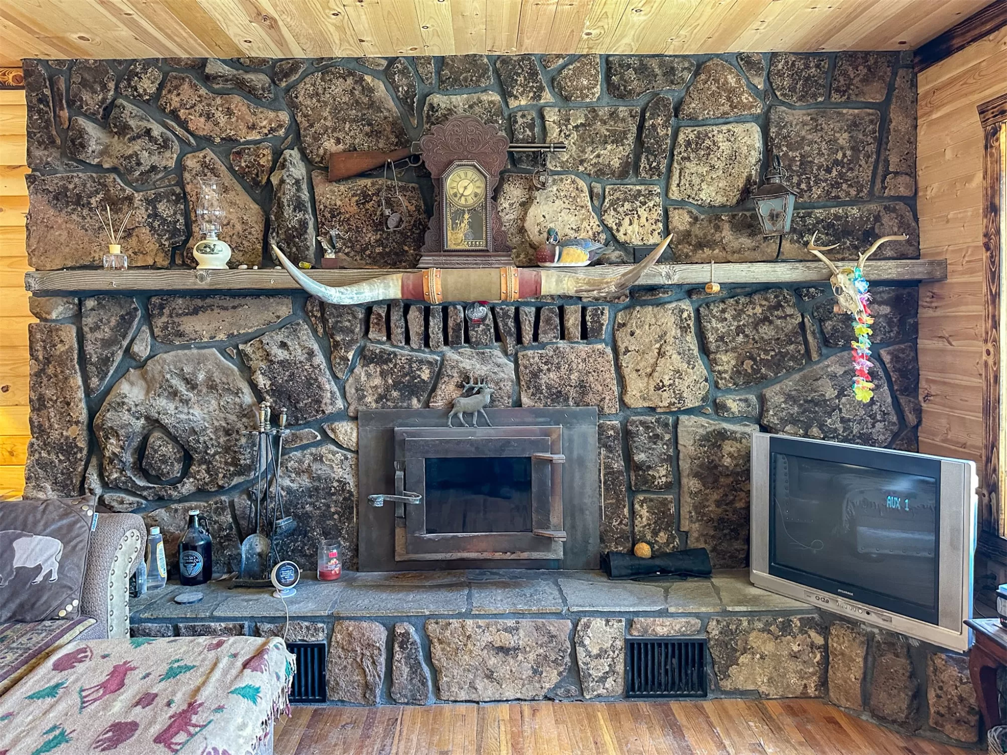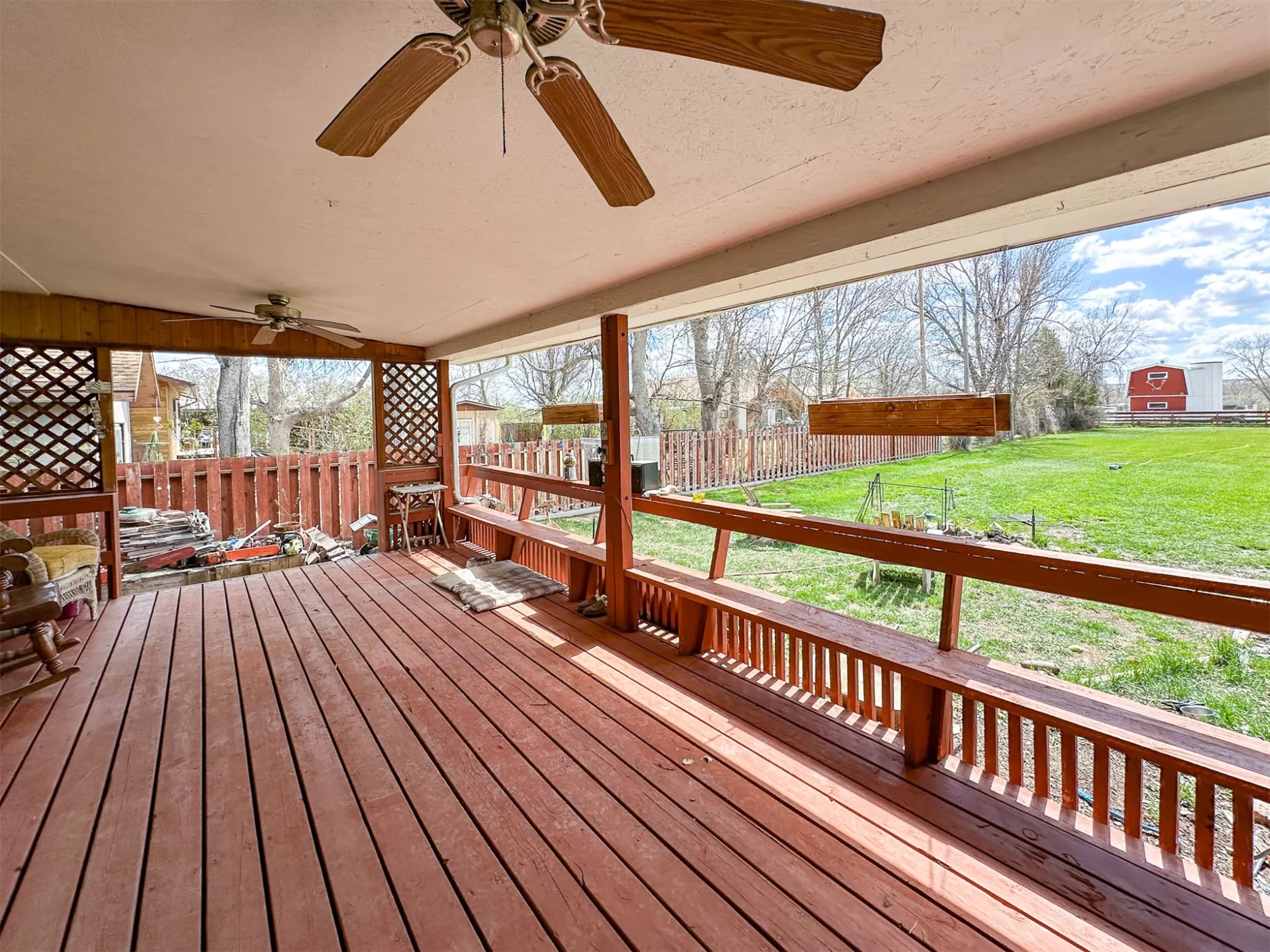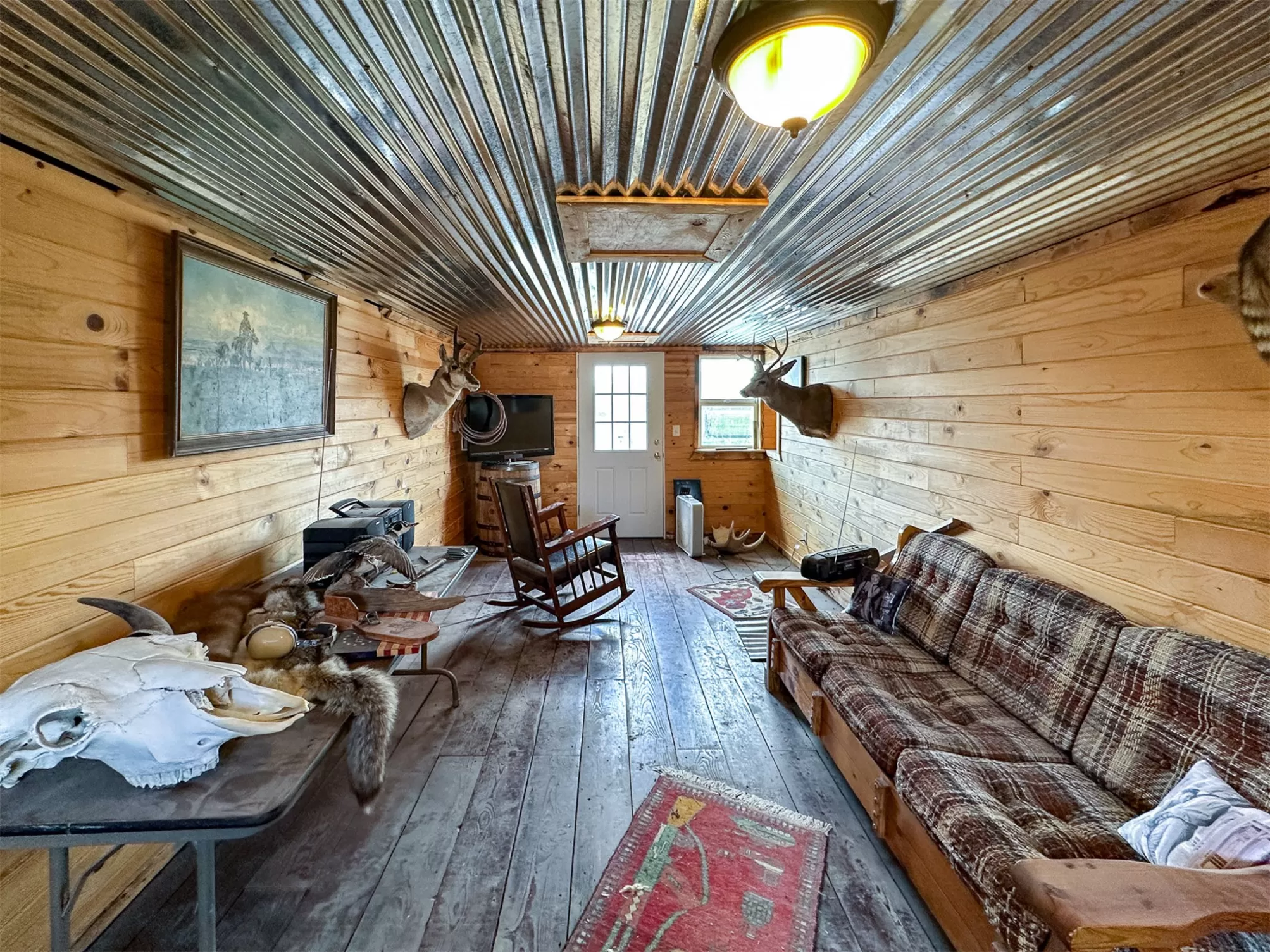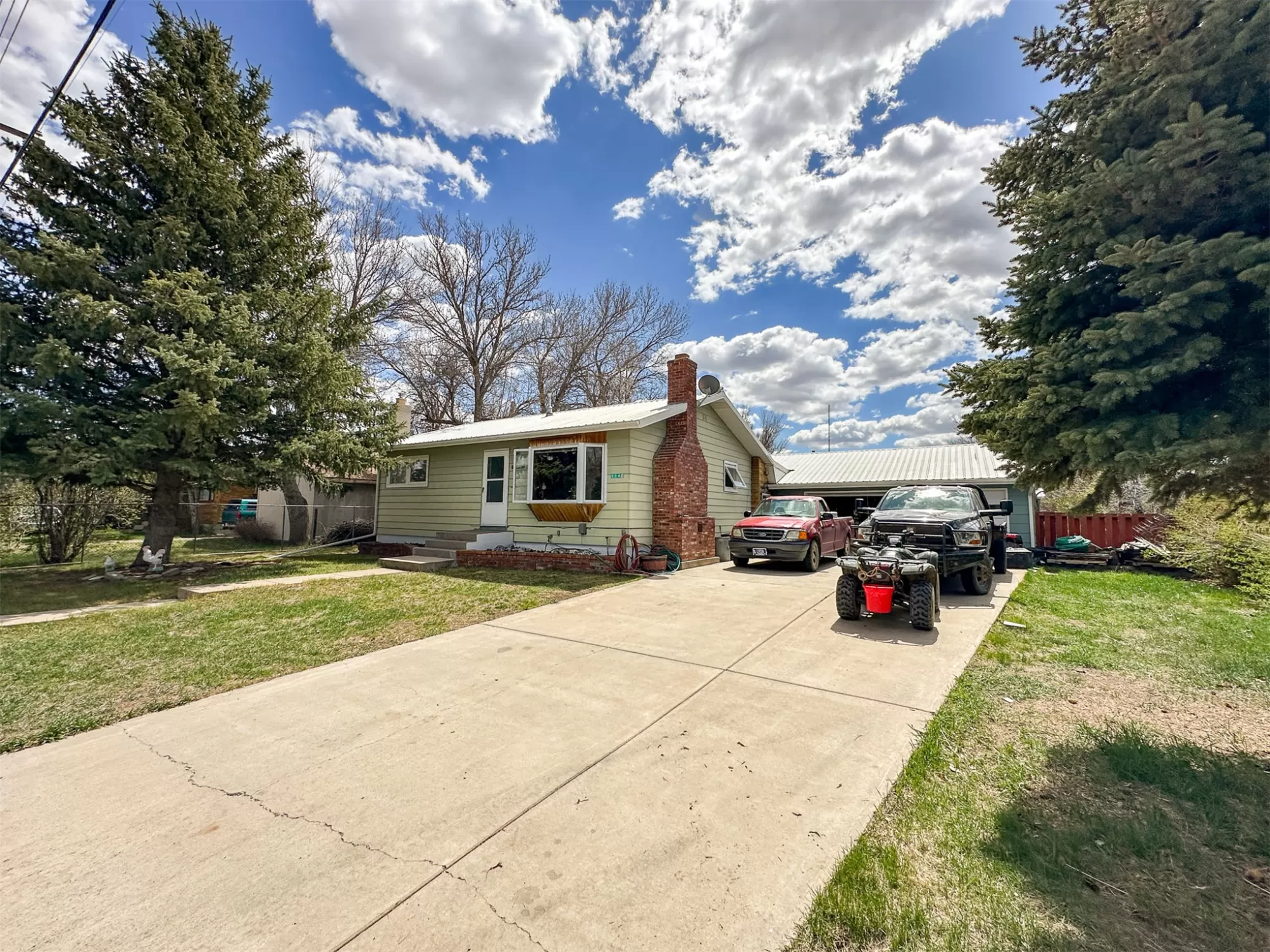 Welcome to your new home that is ideal for horses, livestock and even bison! It combines the best of all worlds with an easy and commutable distance to Great Falls and enough property to support your agricultural needs. This listing includes 4 already divided lots, a total of 12.23 acres, with a slough AND it abuts the renowned 406 Arena trails. The 406 attracts horse people from around the world and the trails are in your back yard. Enjoy sturdy fences, since the seller keeps bison on the property now, stunning butte views and a sophisticated stock watering system. The home is a classic ranch style with two bedrooms and a full bath upstairs and a non-egress lower living room, bedroom, and a 3/4 bathroom. On the main level, there is an enormous, and genuine stone, wood-burning fireplace and the living room boasts tongue and groove pine ceilings and walls. City water AND a well, community sewer, natural gas. Enjoy a detached two/car garage, a shed and a barn-inspired "person cave,” that has an upstairs with a deck and a main floor space that could be converted to corrals or retained as additional storage. Metal roofs; steel siding. Original hardwood floors on the upper level. Gas stove in lower level. You'll love the big, covered deck off the kitchen, with views. Grass lawn around the house. Bay window in the kitchen.