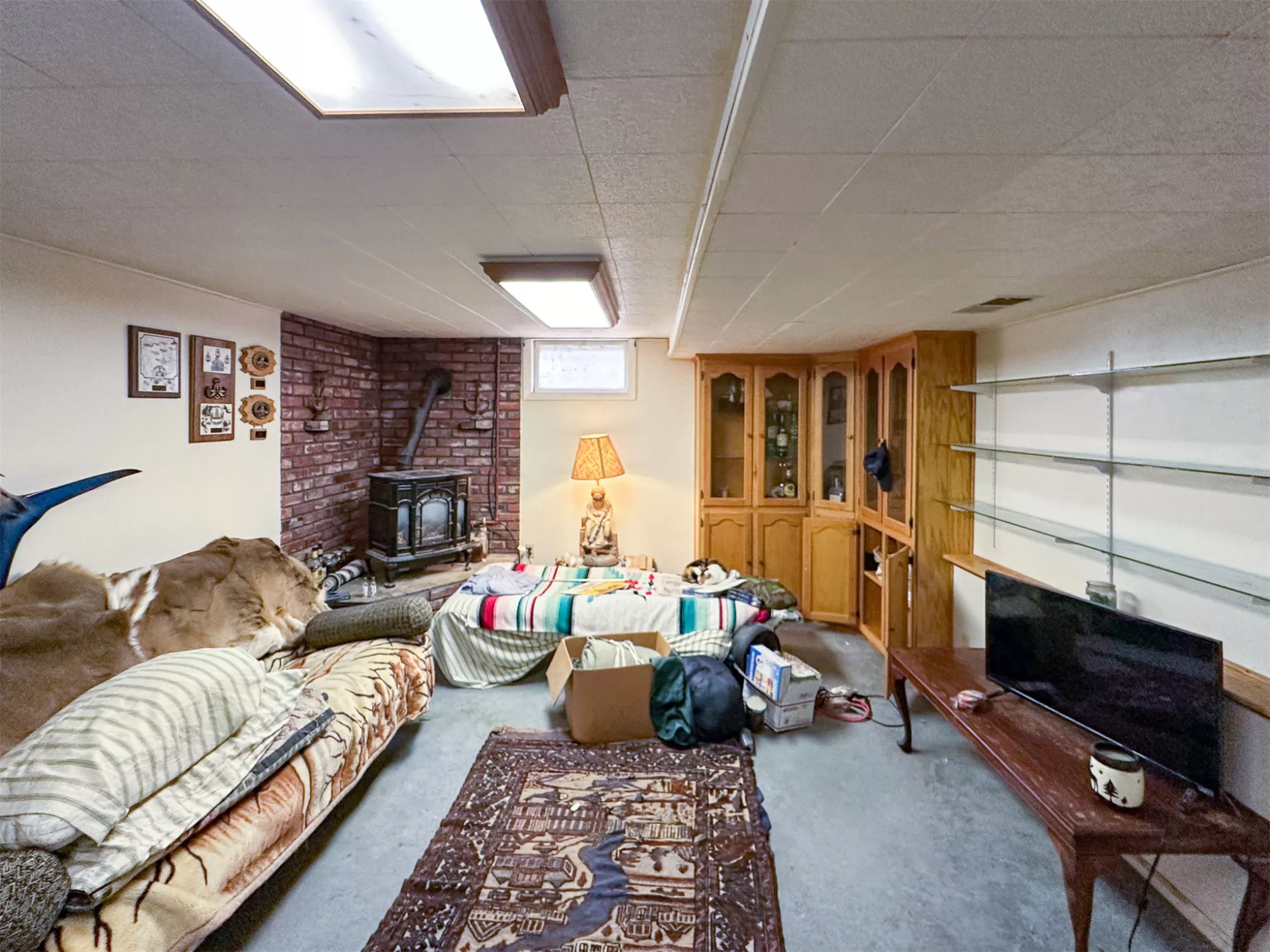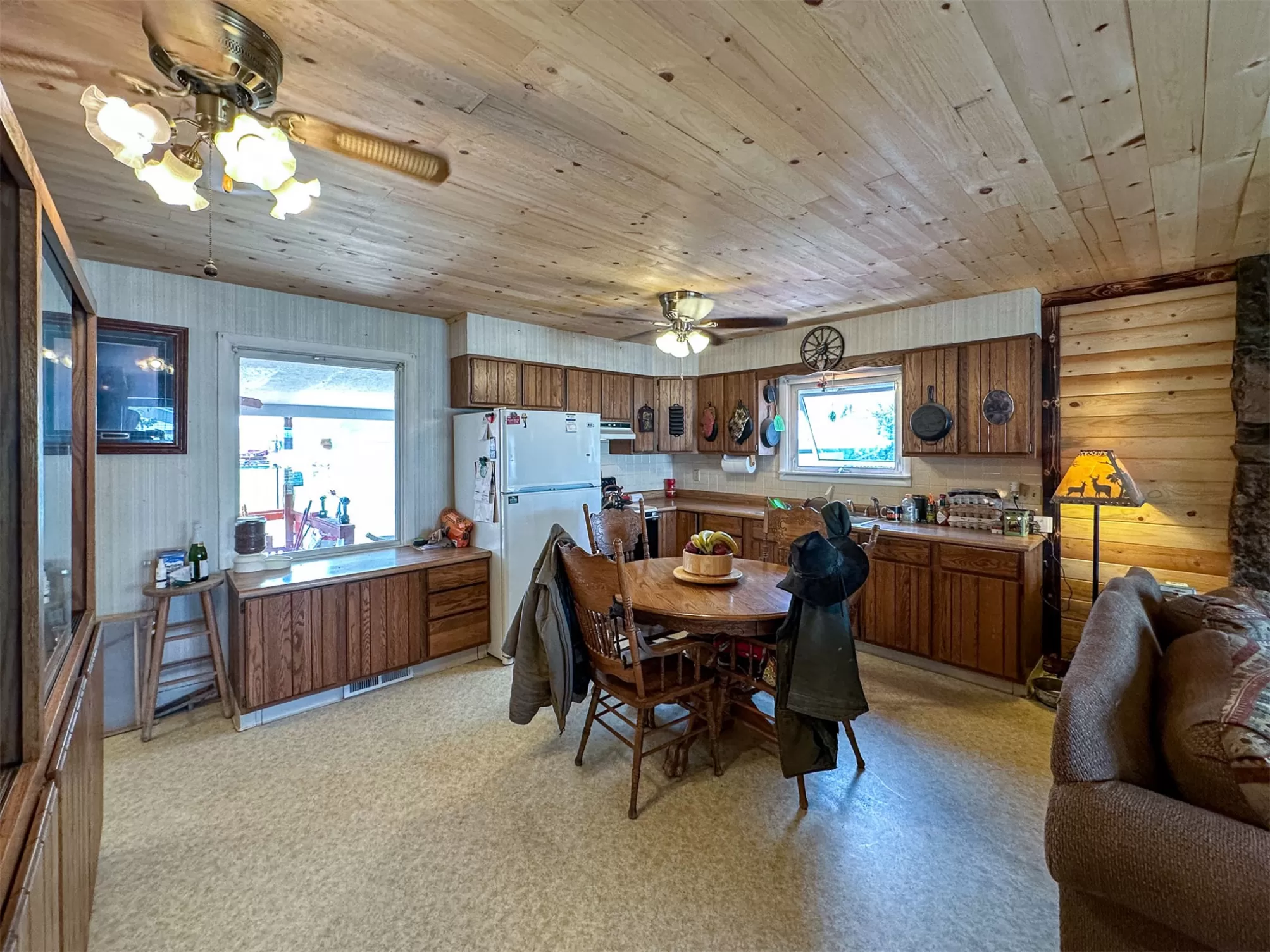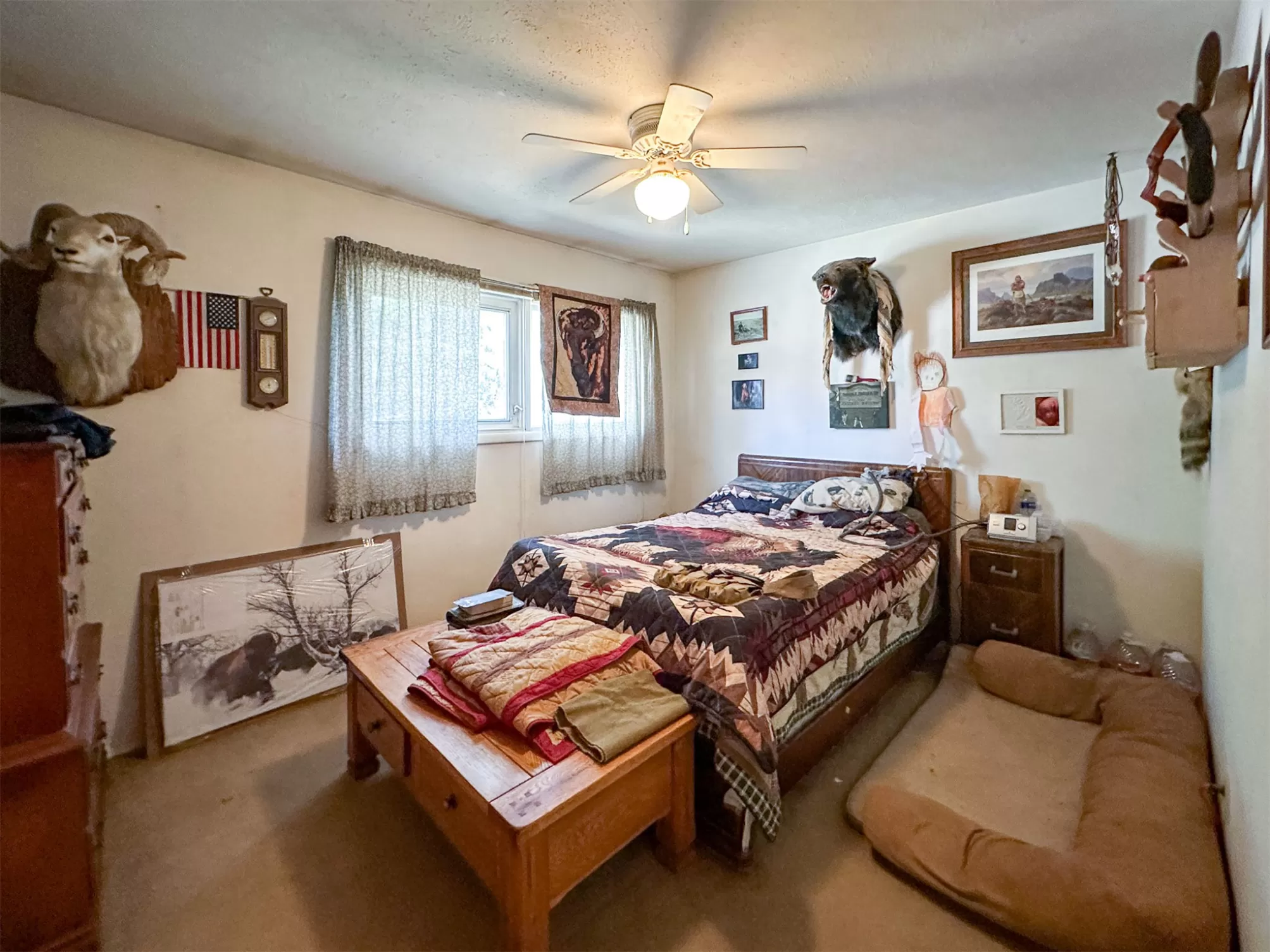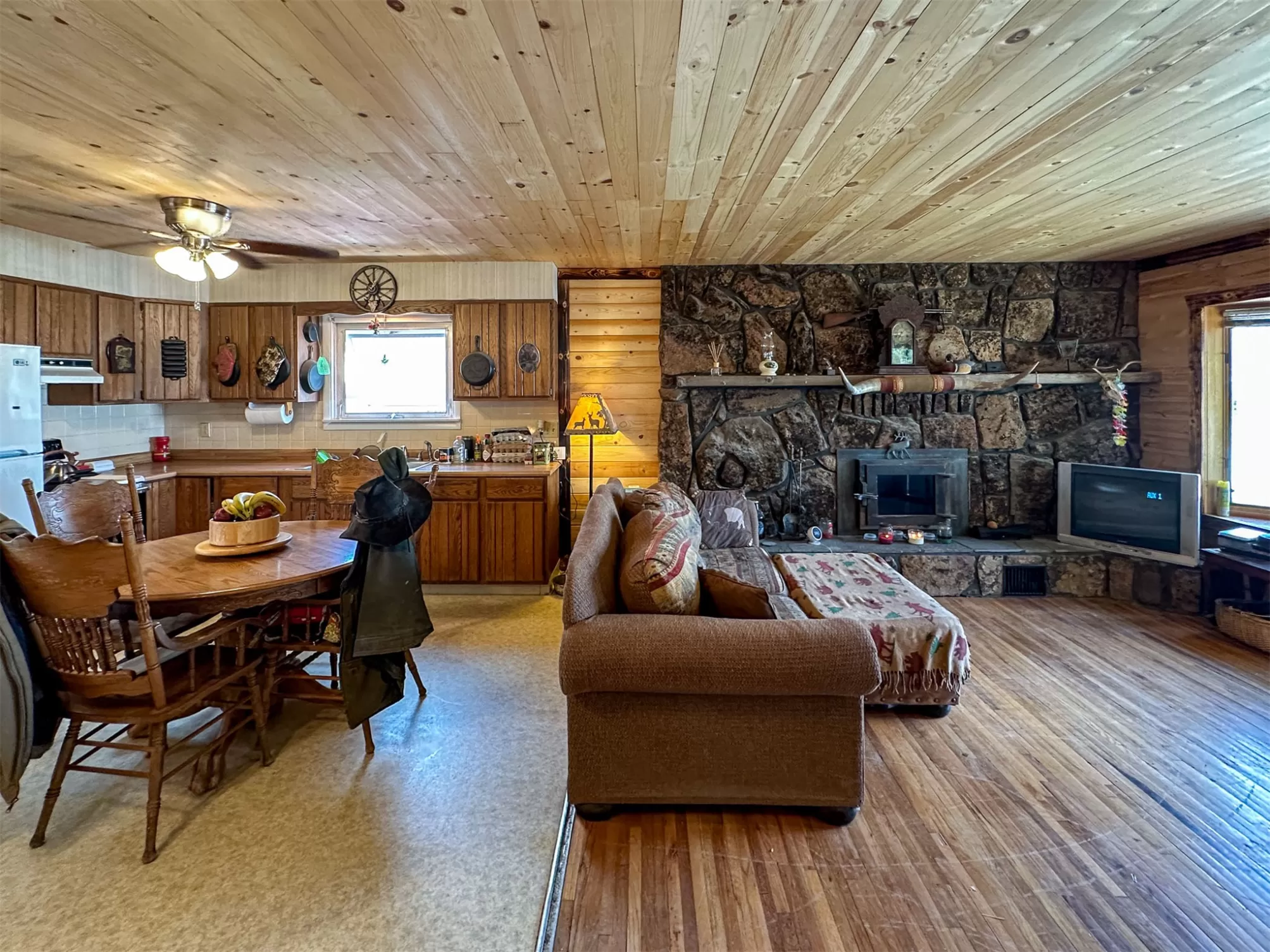 Welcome to your new home that is ideal for horses, livestock and even bison! It combines the best of all worlds with an easy and commutable distance to Great Falls and enough property to support your agricultural needs. This listing includes 4 already divided lots, a total of 12.23 acres, with a slough AND it abuts the renowned 406 Arena trails. The 406 attracts horse people from around the world and the trails are in your back yard. Enjoy sturdy fences, since the seller keeps bison on the property now, stunning butte views and a sophisticated stock watering system. The home is a classic ranch style with two bedrooms and a full bath upstairs and a non-egress lower living room, bedroom, and a 3/4 bathroom. On the main level, there is an enormous, and genuine stone, wood-burning fireplace and the living room boasts tongue and groove pine ceilings and walls. City water AND a well, community sewer, natural gas. Enjoy a detached two/car garage, a shed and a barn-inspired "person cave,” that has an upstairs with a deck and a main floor space that could be converted to corrals or retained as additional storage. Metal roofs; steel siding. Original hardwood floors on the upper level. Gas stove in lower level. You'll love the big, covered deck off the kitchen, with views. Grass lawn around the house. Bay window in the kitchen.