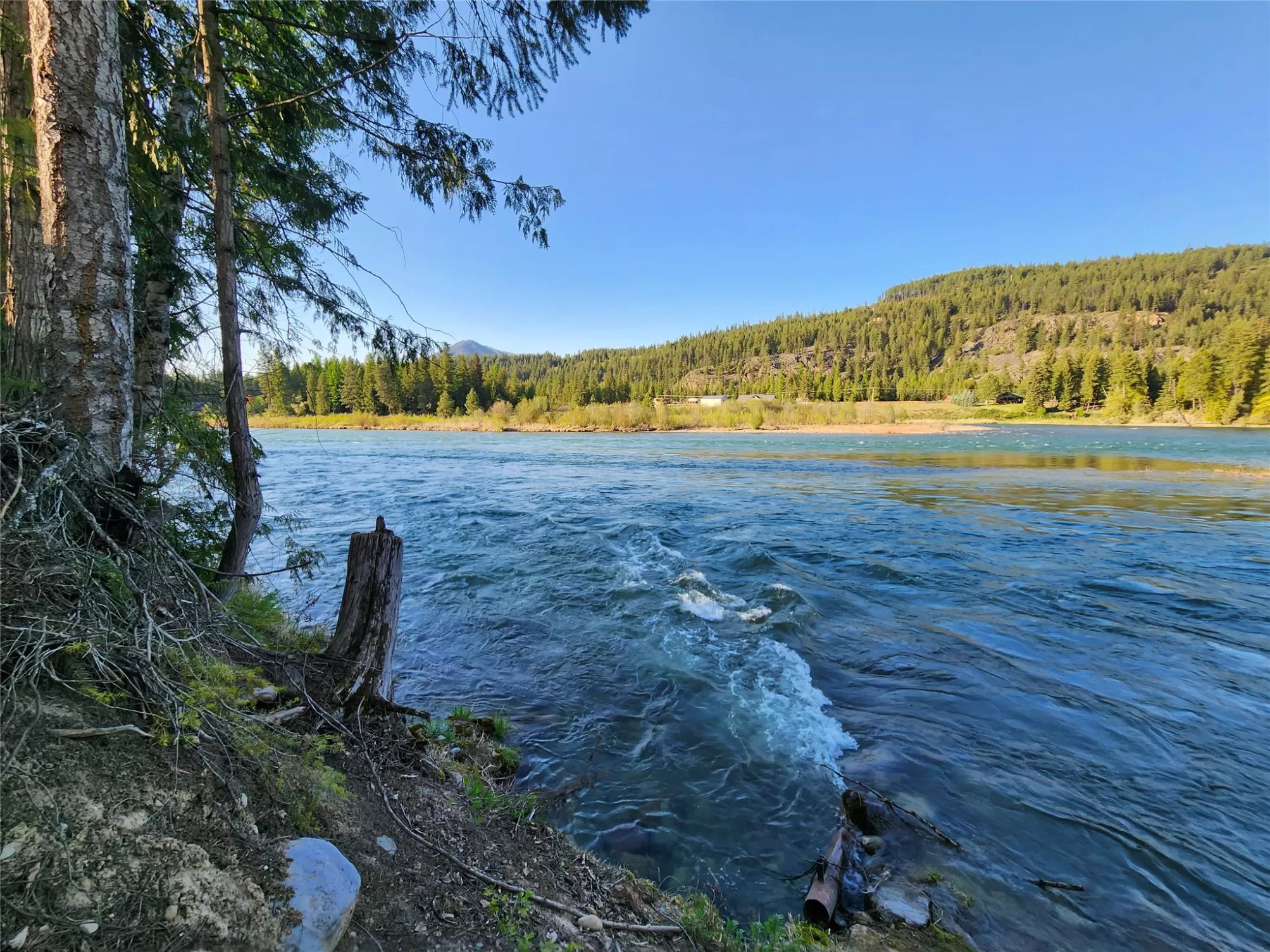 Featuring an unparalleled blend of natural beauty and recreational opportunities, this rare and beautiful 12.016 acres on the breathtaking Kootenai River has gorgeous Mountain views and 2308.85 feet of stunning Kootenai River frontage. Located in a desirable area not far from the quaint town of Troy, Mt., the groundwork towards the development of this property is well under way. With a well, electricity, and a permitted septic, this beautiful parcel provides the ideal spot for your new home. Currently a tiny home resides on the property that can be completed, as you design and build your dream home. Abundant wildlife can be found on or near the river, including eagles, osprey, wood ducks, kingfishers, geese, deer and other critters such as river otters and beavers, who make periodic appearances to the delight of those blessed to see them. Besides fishing right off your property, there is a boat ramp located upriver at Roosevelt Park, providing easy river access for boating, rafting, kayaking and many other recreational activities. Hunts Mill Road is a scenic drive, and this river parcel features end of the road privacy. Buildable riverfront lots are getting harder to find, and acreage with both river frontage and stunning Mountains views are rarer still. Enjoy an evening sunset while you enjoy the soothing sounds of river rapids. With a paved walking path nearby and the recreational opportunities that Northwest Montana provides, this Montana gem is one you will not want to miss out on. Lovely and pristine!