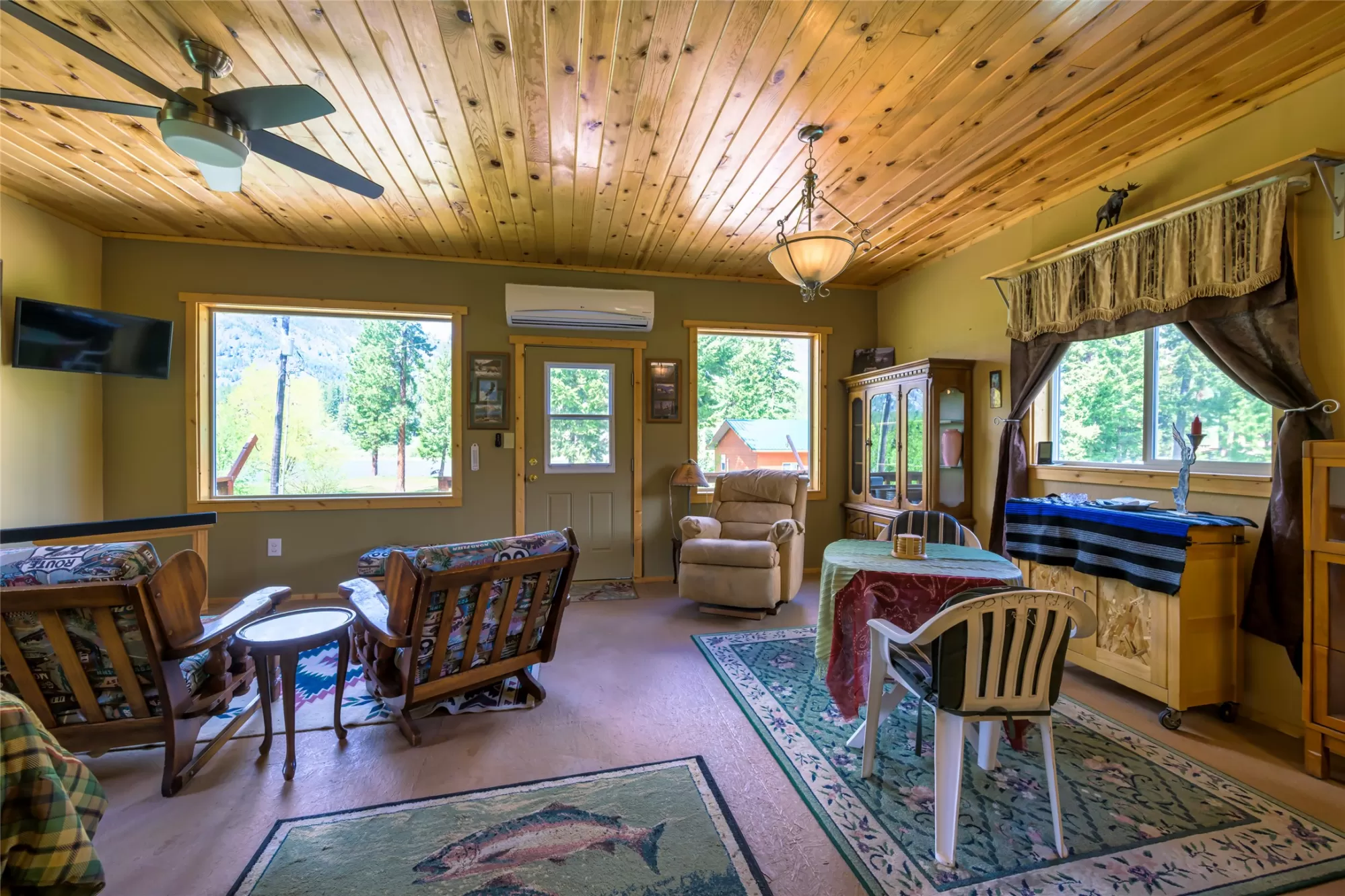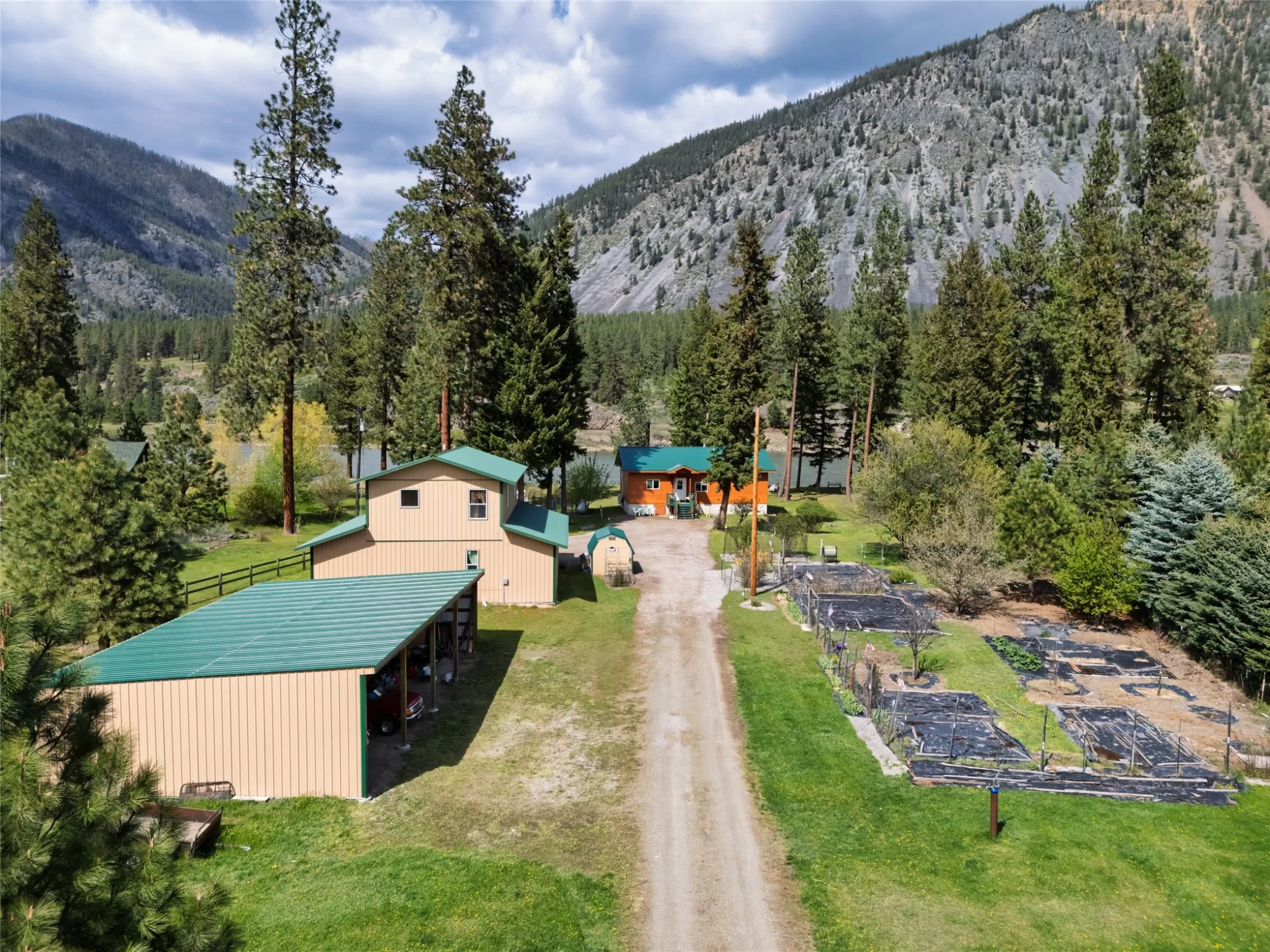 Set on 4 level, usable acres with 200± feet of easily accessible river frontage, this exceptional property in Plains, Montana offers a rare blend of privacy, recreation, and self-sufficiency. With no covenants or restrictions and direct access to thousands of acres of Forest Service land, the opportunities for outdoor living—fishing, boating, hunting, hiking—are endless. The main home is thoughtfully designed for comfort and flexibility, featuring one bedroom, 1.5 baths, and an additional room currently used as an office that could easily function as a second bedroom or guest space. Large windows bring in the surrounding beauty, and the back porch offers a front-row seat to hummingbird visits, deer sightings, and views of the river and mature landscape. The detached shop (22’x40' with soaring ceilings) includes separate living quarters above—complete with a full kitchen, living and dining areas, washer/dryer, a full bathroom, and a charming front porch. Whether used as guest space, rental potential, or multi-generational living, it’s a true asset with year-round comfort, including its own AC. Outdoor amenities are equally impressive: two large storage containers, a backup generator, a seasonal creek, and vast, established garden beds with fruit trees and space for growing and canning. This is a property designed with self-reliant living in mind. Both the main home and guest quarters are equipped with Starlink internet and air conditioning. Additional features include a privacy gate, boat-ready river access, potential for equestrian use, and incredible wildlife watching—from regular deer and eagle sightings to the charm of hummingbirds from sunrise to sunset. Whether you’re looking for a recreational escape, an off-grid-capable homestead, or a versatile multi-use property in the heart of Western Montana, this Clark Fork River retreat checks every box.