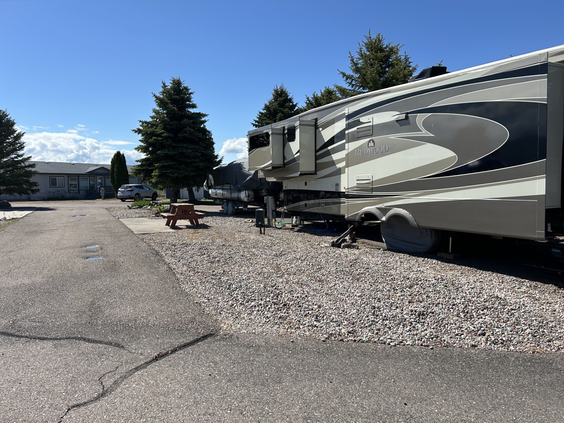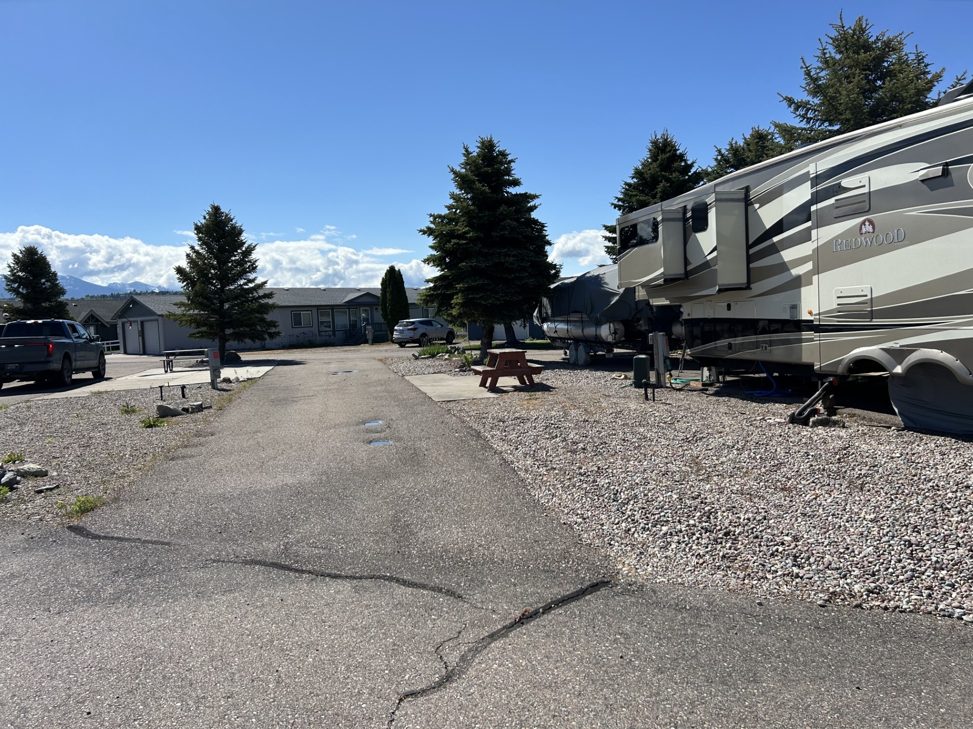 Wonderful sought after RV site with Flathead River access, swim dock, underground utilities, paved pull through site, 50 amp hookup with water and sewer.