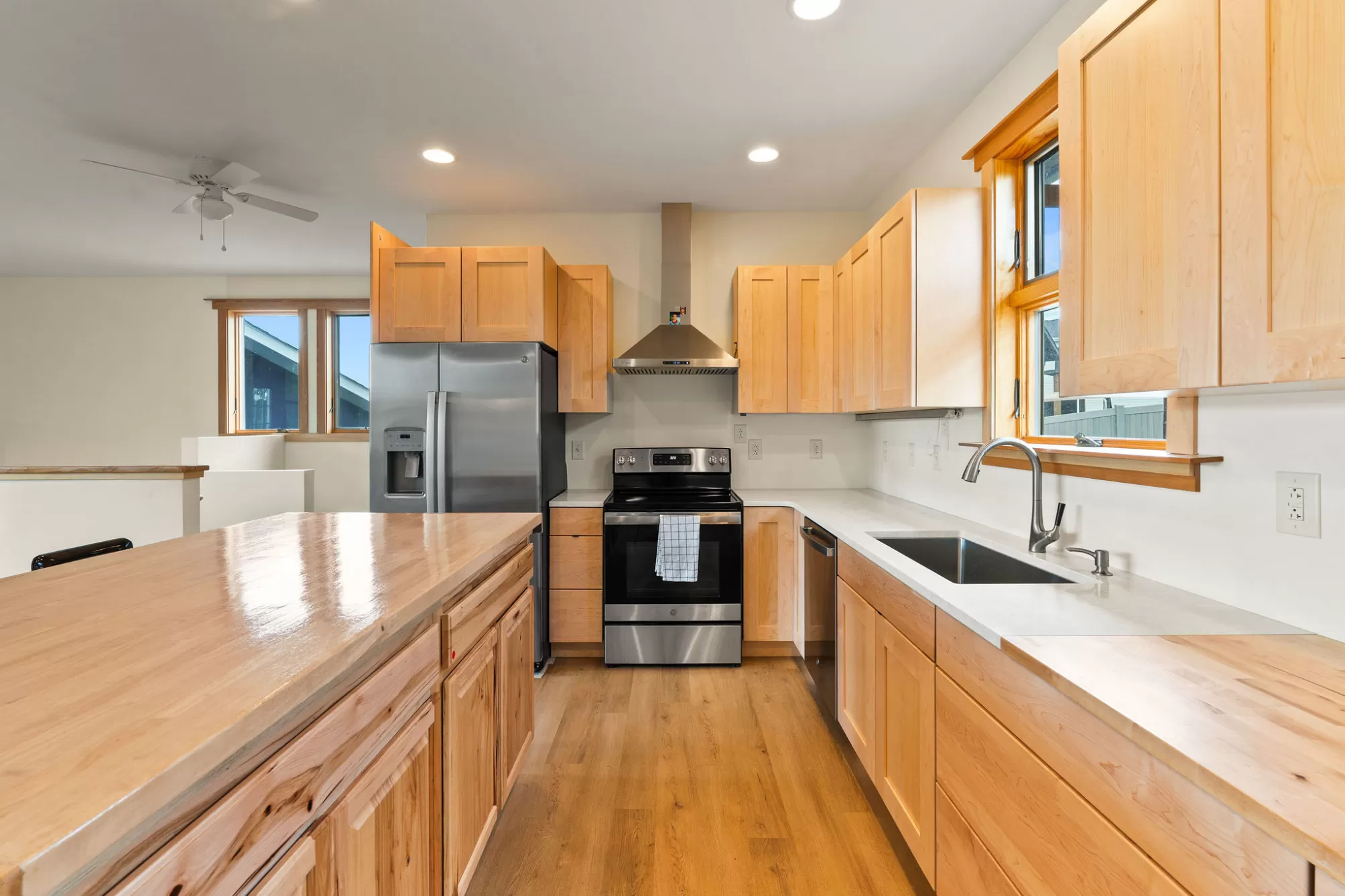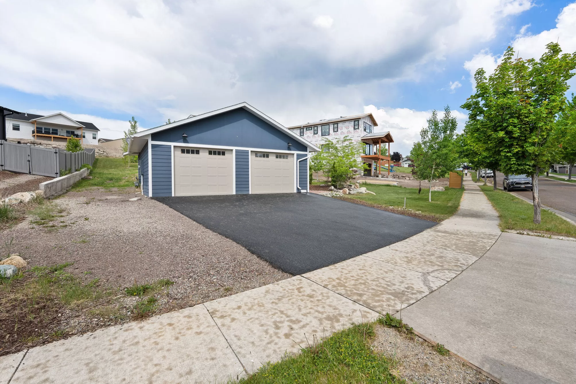 Thoughtfully designed 3-bedroom, 3-bathroom multi-level home on 0.275 acres in Aspen Creek Subdivision offers a spacious layout with modern updates. The main floor features an open concept with great natural light, a gas fireplace in the living room, brand-new countertops, stainless steel appliances, and an eat-in island. The primary ensuite bedroom is also on the main level and includes a separate tub and shower, plus private access to the front deck. The lower level includes a generous recreation room and two additional bedrooms, one of which is an ensuite, providing ample space for guests. The yard is nicely landscaped, and the backyard includes an additional building that serves as a multi-purpose flex space—previously planned as an art studio. Aspen Creek is a welcoming neighborhood in Kalispell and is conveniently located. Residents appreciate the area's walkability and the beautiful creek that runs through, adding a touch of nature to everyday life. The subdivision offers quick access to outdoor recreational activities throughout the Flathead Valley, making it an ideal place for those who enjoy an active lifestyle.