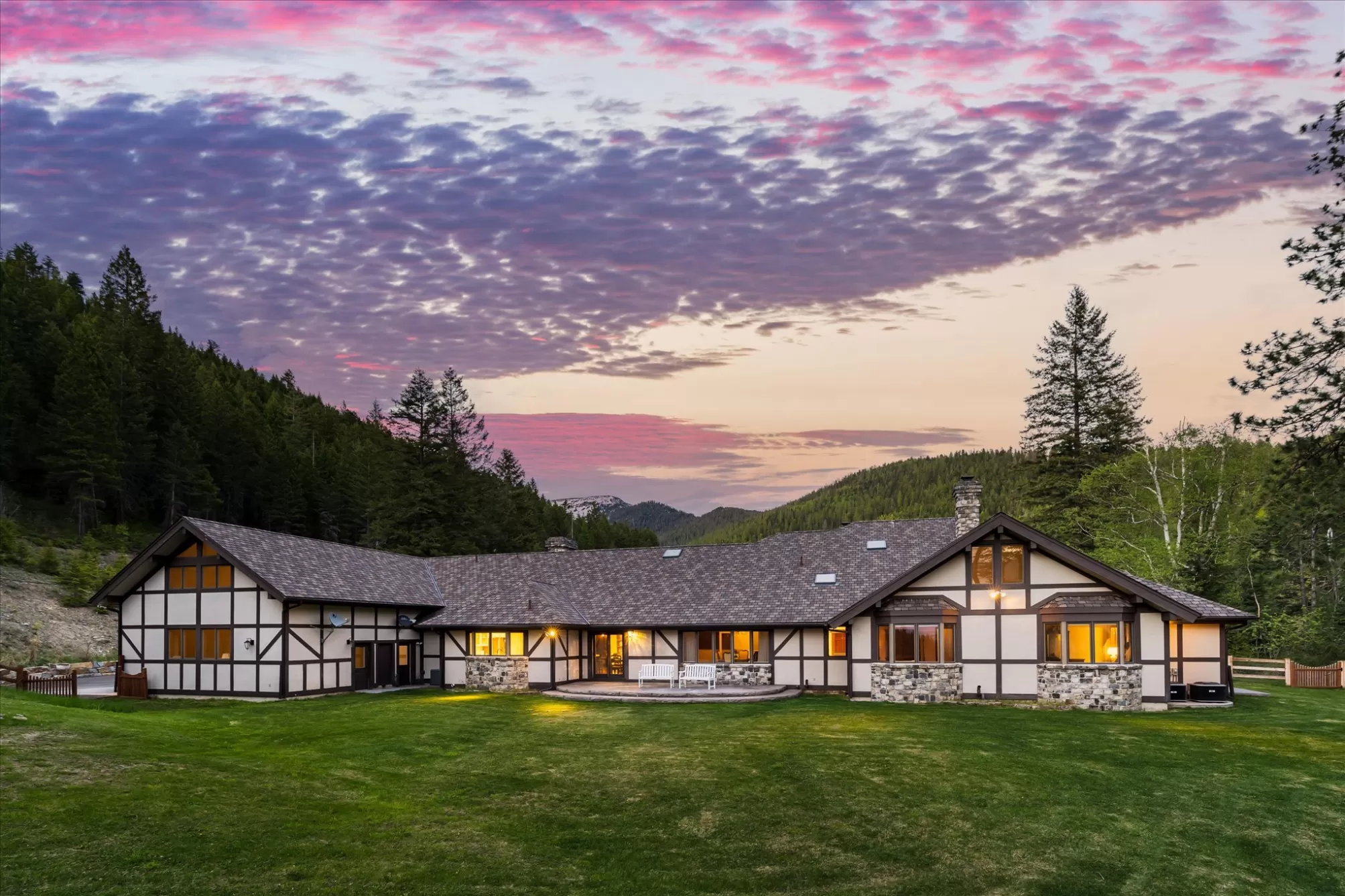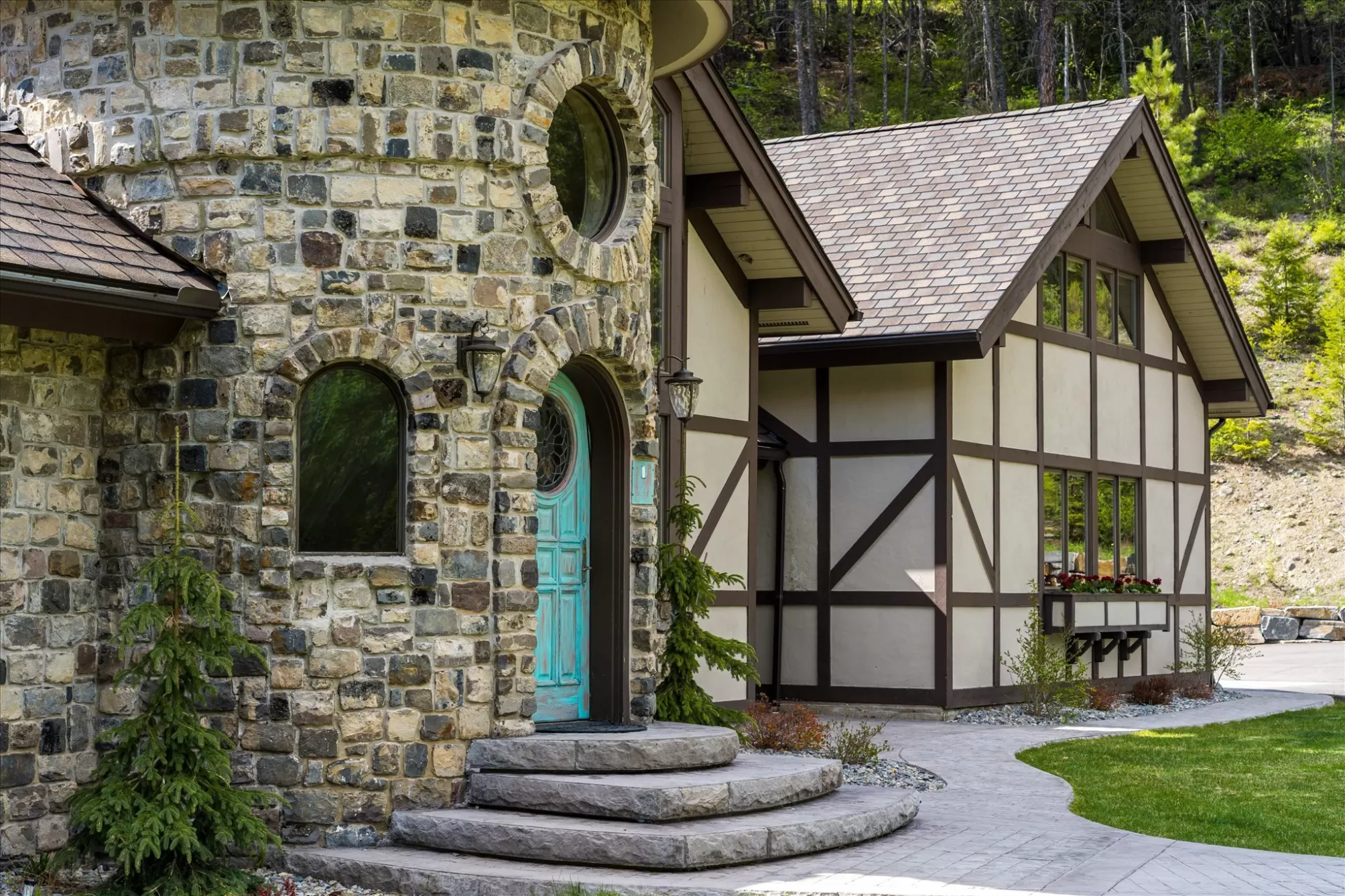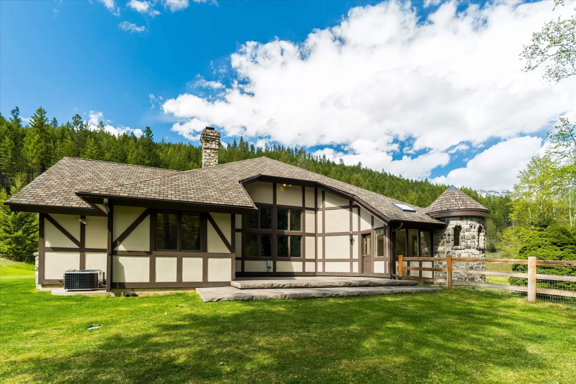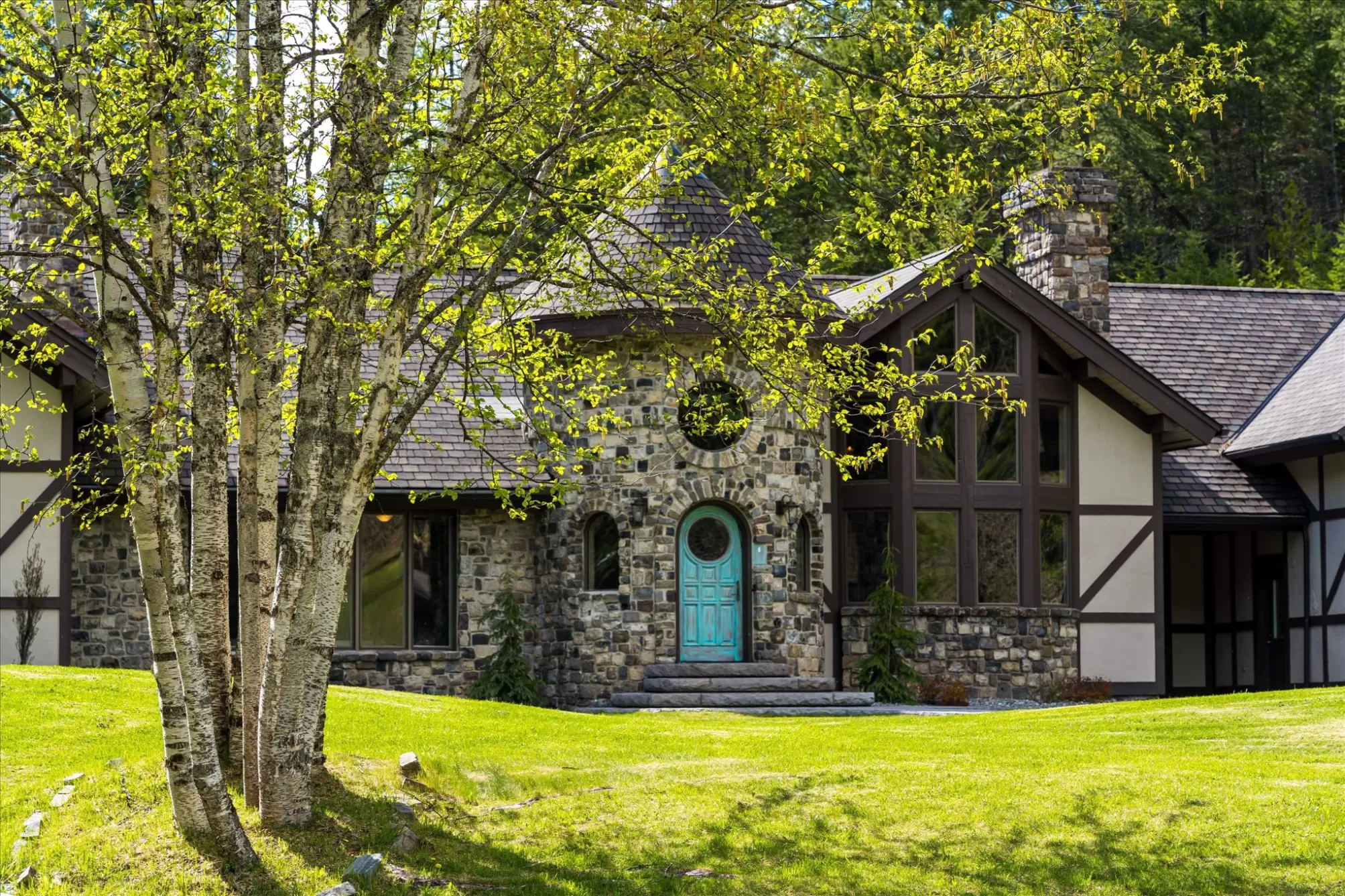 Storybook European-Style Estate on 21+ Acres with a 2-bedroom Guesthouse & 60' x 80' Shop. Step into a fairytale with this enchanting European-inspired estate, nestled on 21.32 private acres at the base of the Swan Mountain Range. Enjoy lush forest & the gentle sounds of Brown Creek, the scenic drive opens to captivating valley views & timeless Tudor-style architecture. Stone accents & expansive windows define the home’s exterior, while the interior is bathed in natural light & filled with old-world charm. A grand turret entry introduces the formal living & dining rooms, ideal for entertaining or peaceful retreat. The primary suite is a private sanctuary with vaulted ceilings & a spa-like ensuite featuring a one-of-a-kind shower in the home’s second turret. Additional features include a spacious kitchen, warm family room with vaulted ceiling, living room, cozy library, exercise room, a spacious 4 stall garage & large, landscaped area for recreational activities. Guests will enjoy the private guesthouse, and hobbyists or collectors will appreciate the spacious 80'x60' shop. This is a truly special Montana property—offering privacy, beauty, and a lifestyle to be cherished for generations