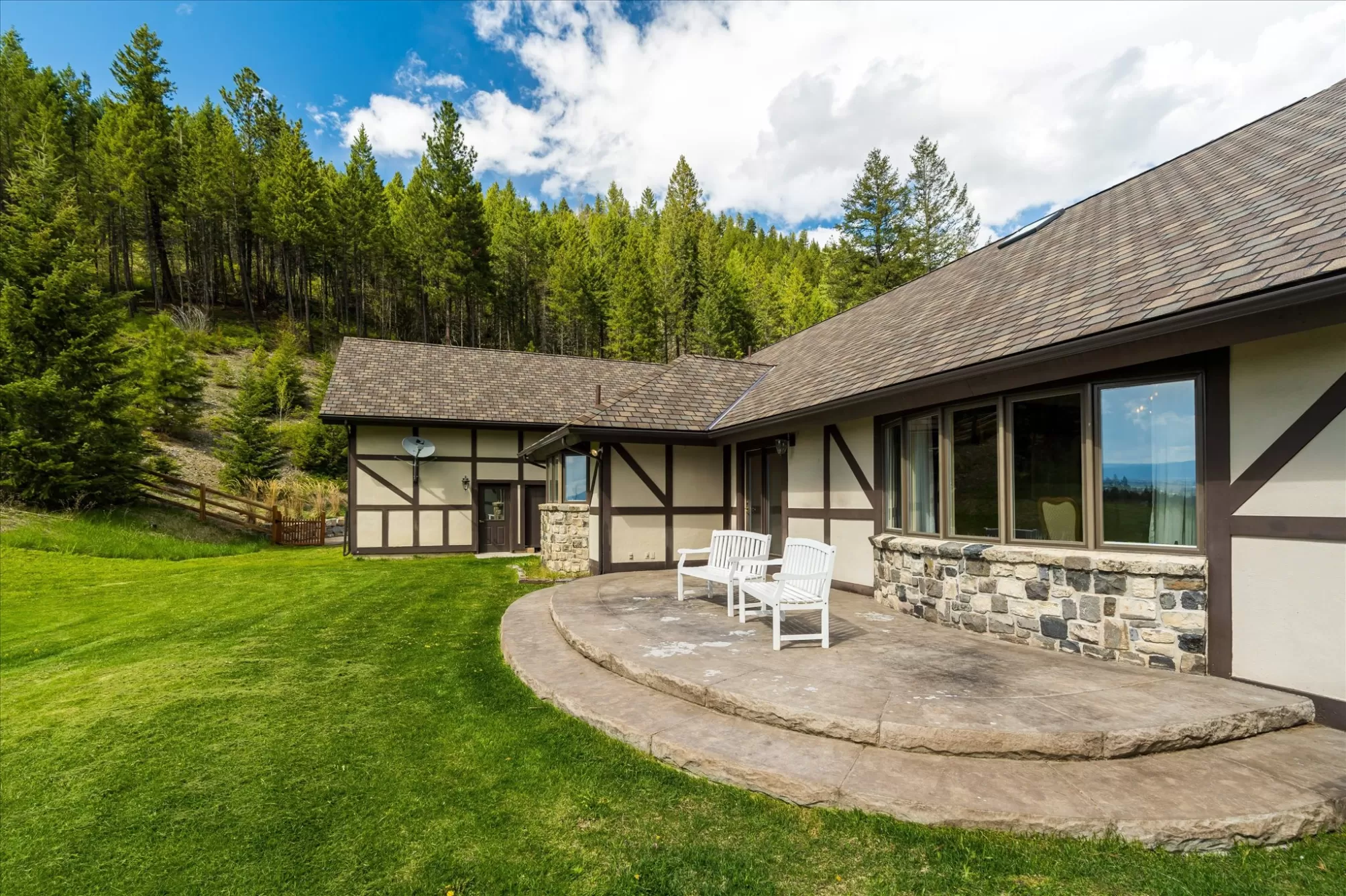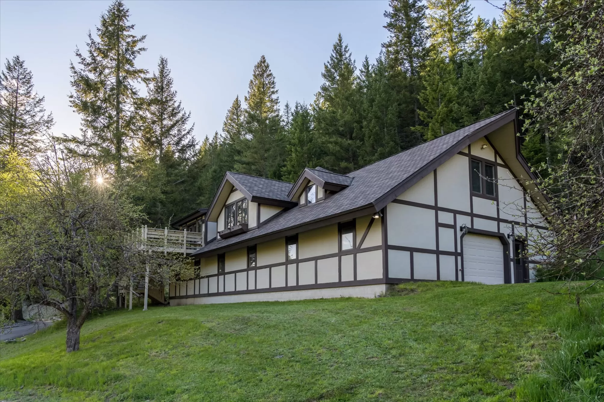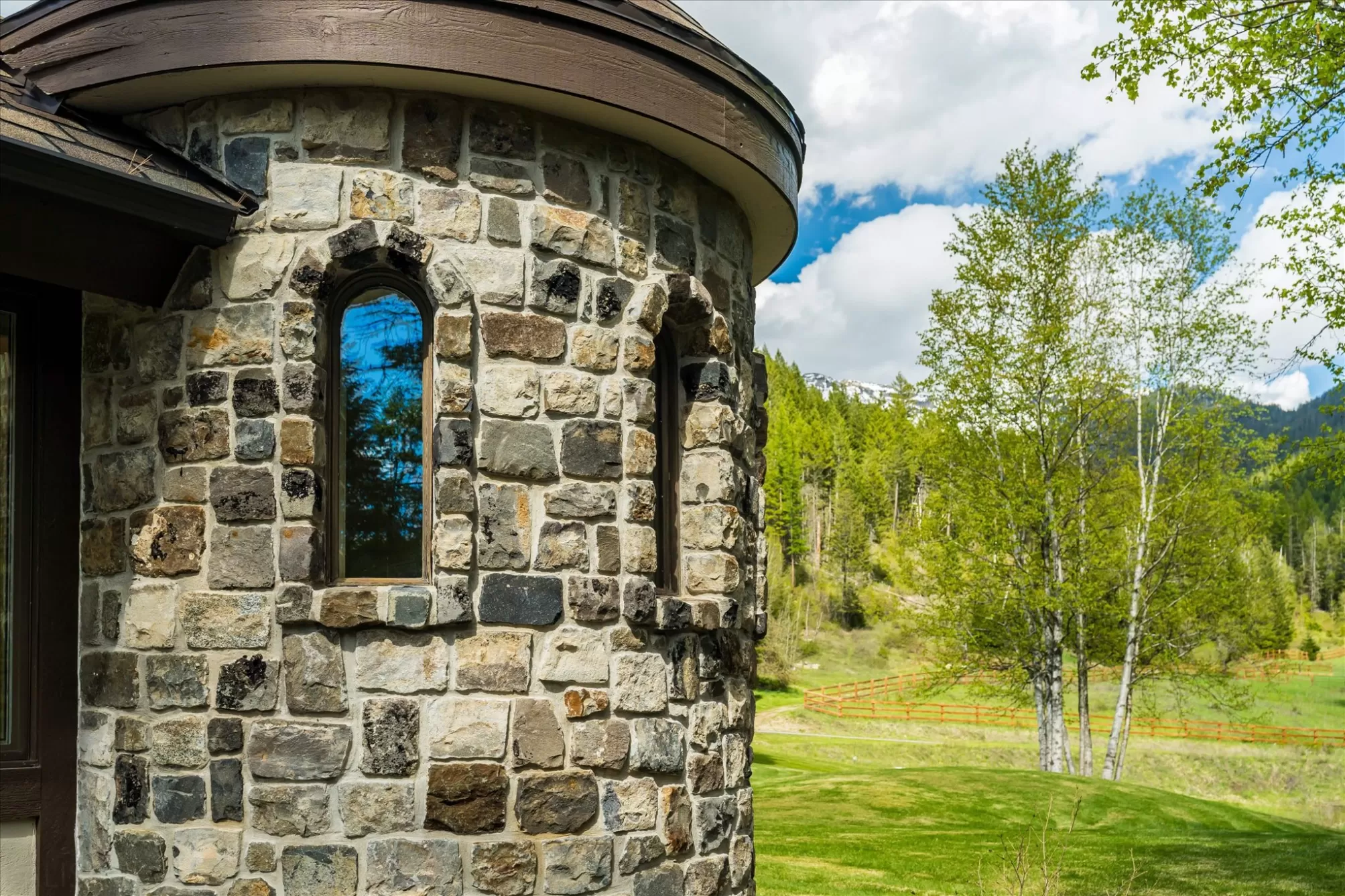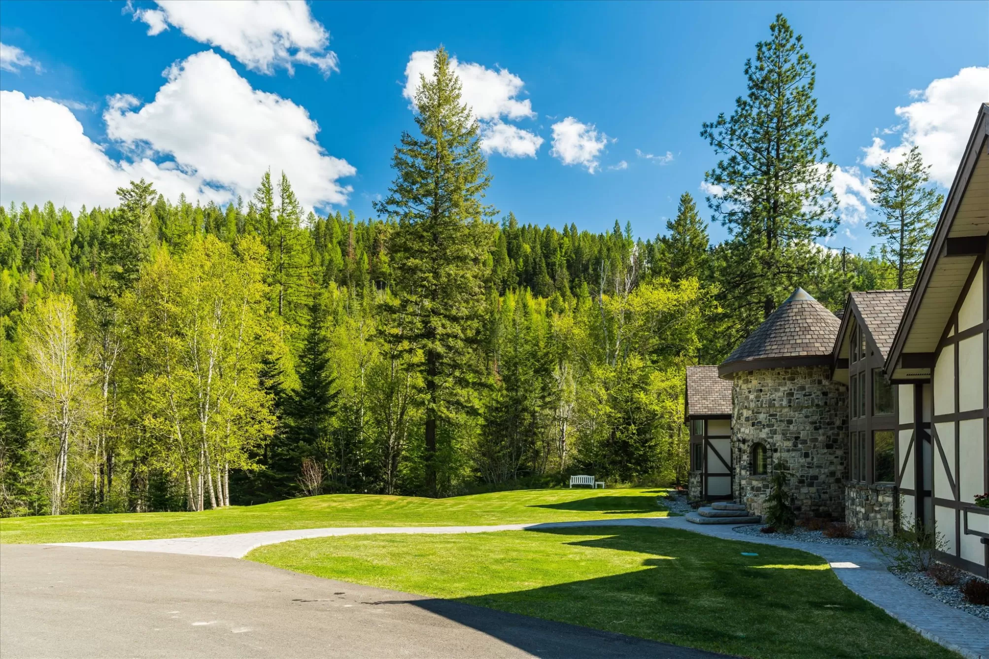 Storybook European-Style Estate on 21+ Acres with a 2-bedroom Guesthouse & 60' x 80' Shop. Step into a fairytale with this enchanting European-inspired estate, nestled on 21.32 private acres at the base of the Swan Mountain Range. Enjoy lush forest & the gentle sounds of Brown Creek, the scenic drive opens to captivating valley views & timeless Tudor-style architecture. Stone accents & expansive windows define the home’s exterior, while the interior is bathed in natural light & filled with old-world charm. A grand turret entry introduces the formal living & dining rooms, ideal for entertaining or peaceful retreat. The primary suite is a private sanctuary with vaulted ceilings & a spa-like ensuite featuring a one-of-a-kind shower in the home’s second turret. Additional features include a spacious kitchen, warm family room with vaulted ceiling, living room, cozy library, exercise room, a spacious 4 stall garage & large, landscaped area for recreational activities. Guests will enjoy the private guesthouse, and hobbyists or collectors will appreciate the spacious 80'x60' shop. This is a truly special Montana property—offering privacy, beauty, and a lifestyle to be cherished for generations