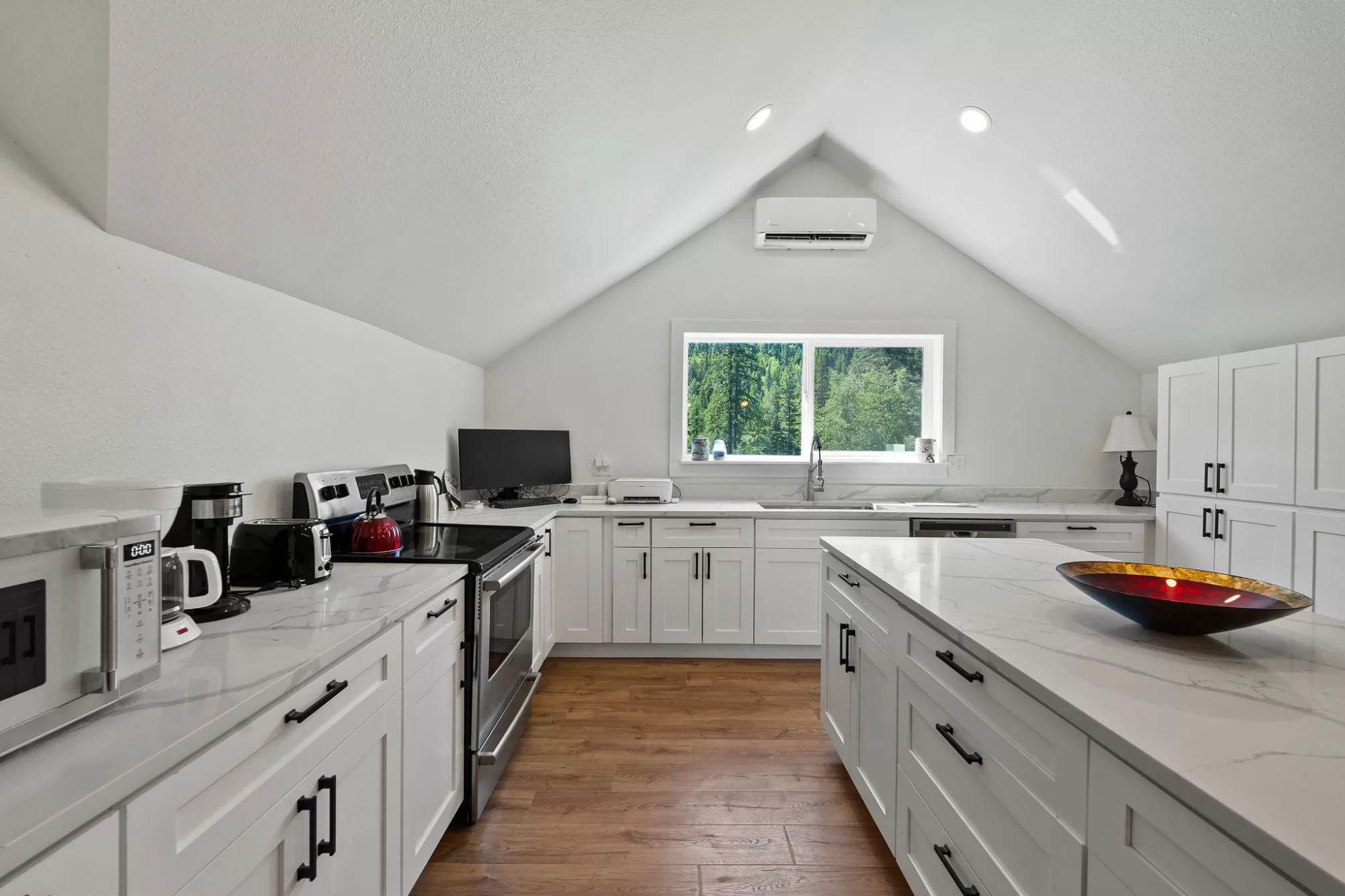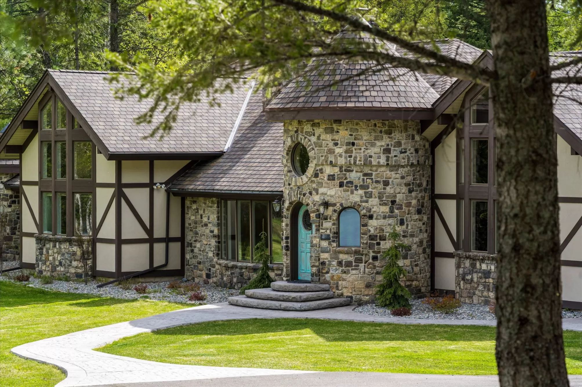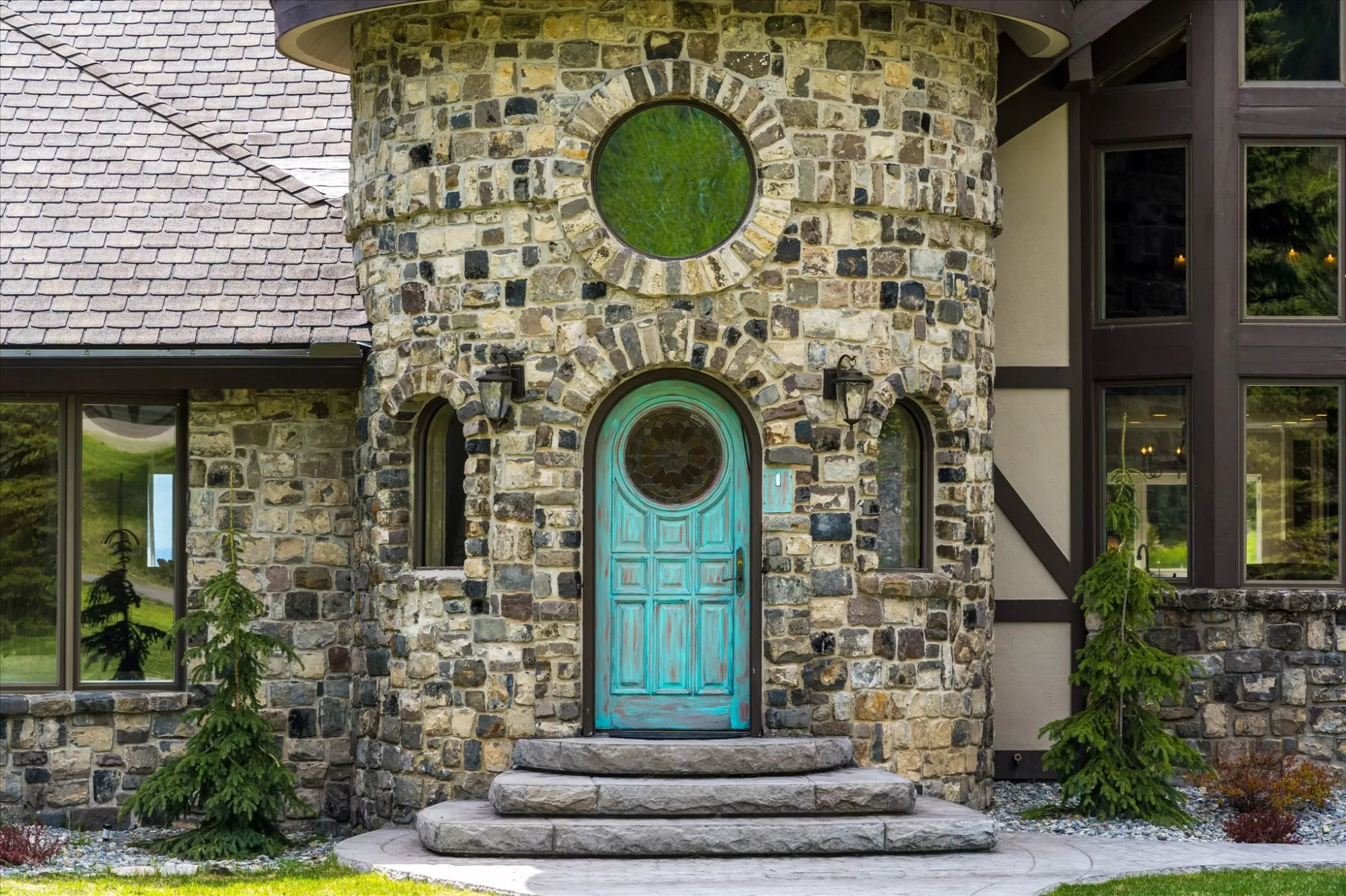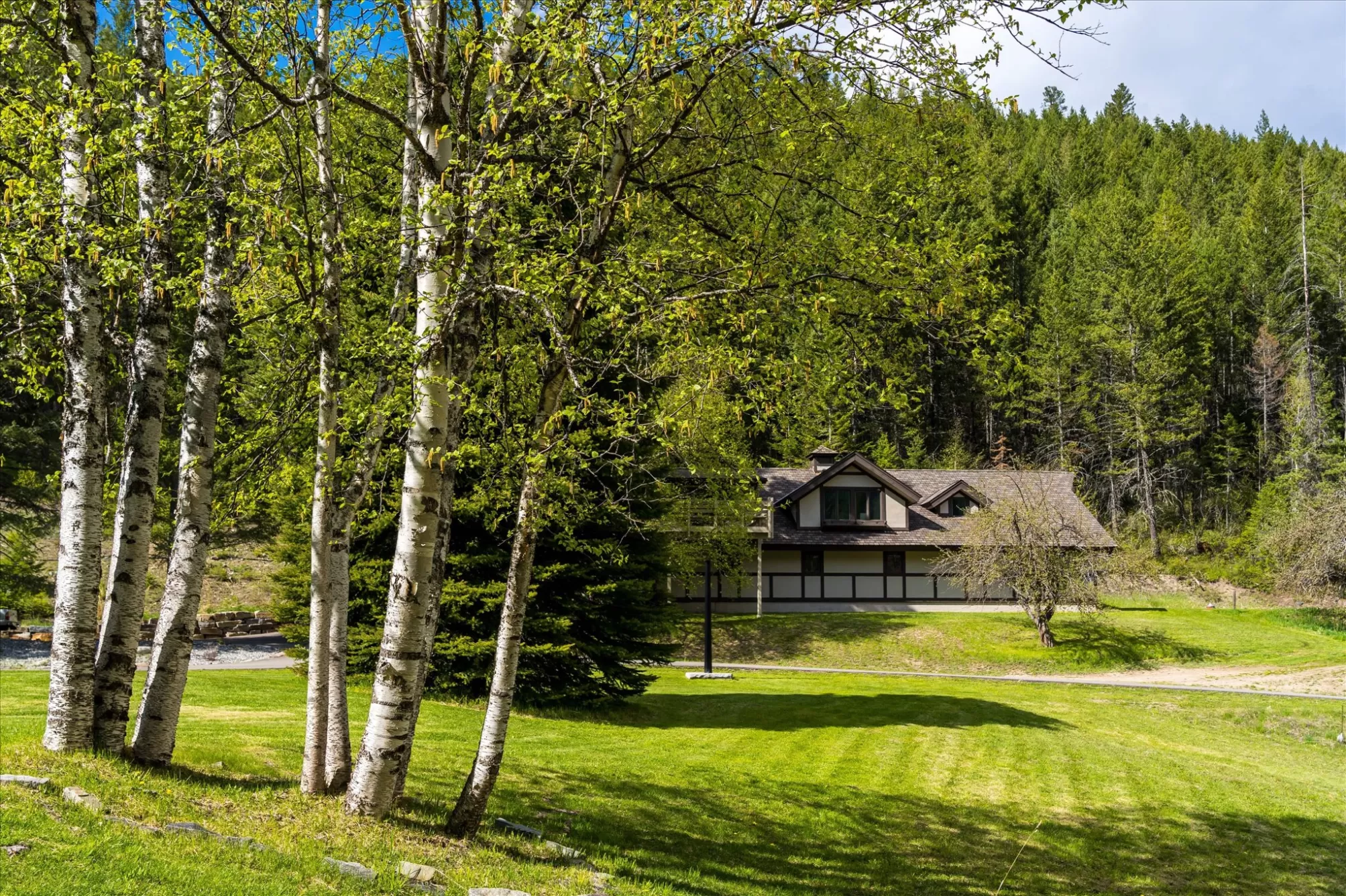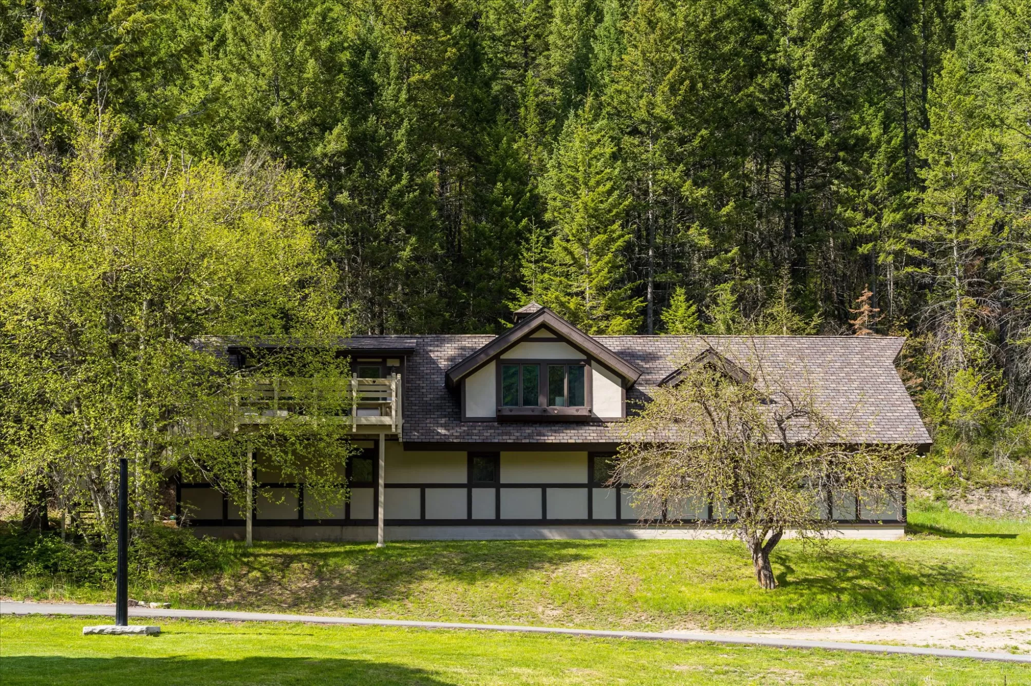 Storybook European-Style Estate on 21+ Acres with a 2-bedroom Guesthouse & 60' x 80' Shop. Step into a fairytale with this enchanting European-inspired estate, nestled on 21.32 private acres at the base of the Swan Mountain Range. Enjoy lush forest & the gentle sounds of Brown Creek, the scenic drive opens to captivating valley views & timeless Tudor-style architecture. Stone accents & expansive windows define the home’s exterior, while the interior is bathed in natural light & filled with old-world charm. A grand turret entry introduces the formal living & dining rooms, ideal for entertaining or peaceful retreat. The primary suite is a private sanctuary with vaulted ceilings & a spa-like ensuite featuring a one-of-a-kind shower in the home’s second turret. Additional features include a spacious kitchen, warm family room with vaulted ceiling, living room, cozy library, exercise room, a spacious 4 stall garage & large, landscaped area for recreational activities. Guests will enjoy the private guesthouse, and hobbyists or collectors will appreciate the spacious 80'x60' shop. This is a truly special Montana property—offering privacy, beauty, and a lifestyle to be cherished for generations