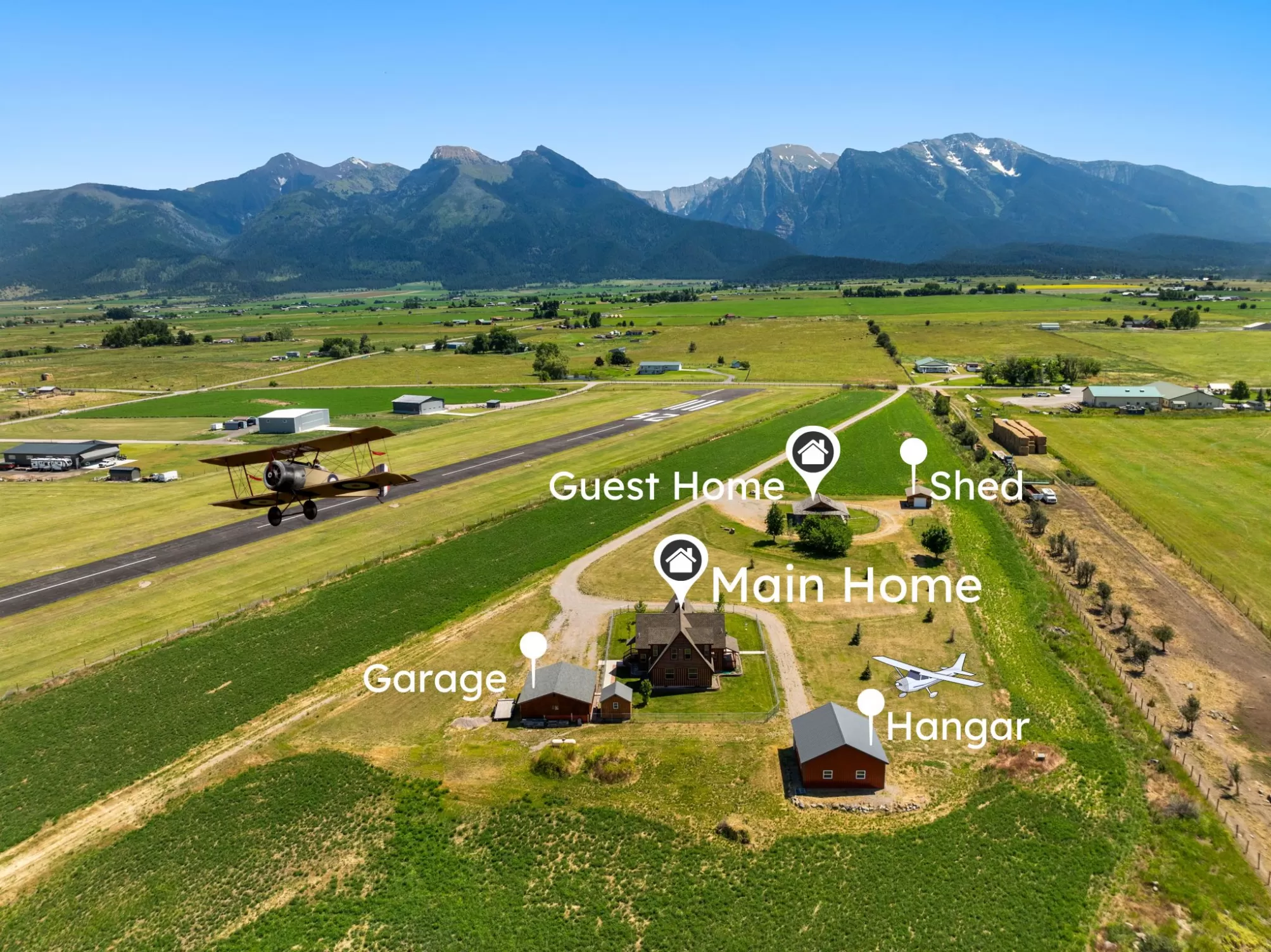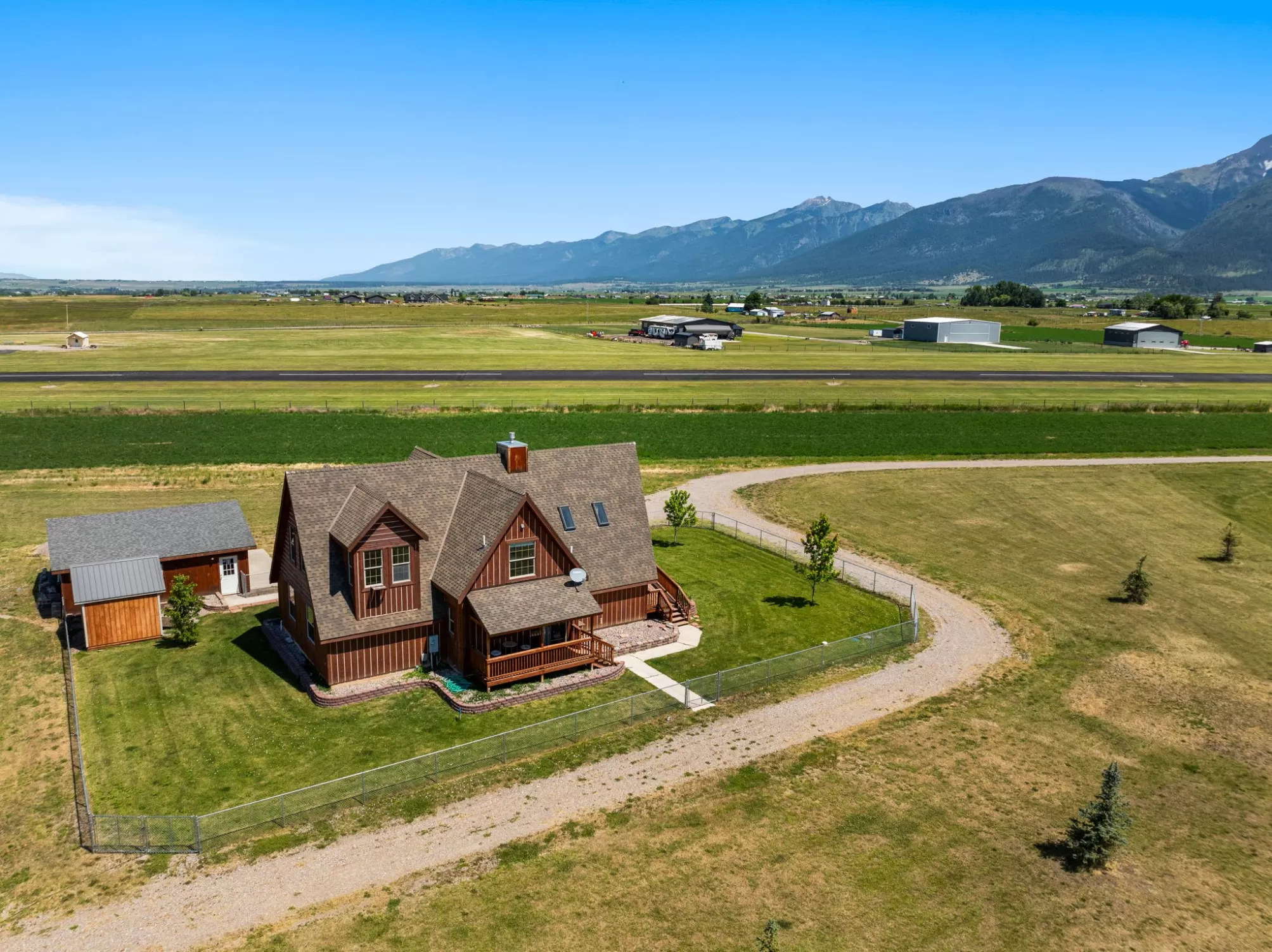 Welcome to your dream estate! This 4.65-acre property offers a harmonious blend of quality living, adventure, and natural beauty. With stunning views of the Mission Mountains, including the iconic Garden Wall, and exceptional aviation opportunities, this property is truly one-of-a-kind. The main residence features spacious, light-filled living areas with breathtaking mountain views, creating a warm and inviting atmosphere. The modern kitchen, equipped with impressive counter space, is perfect for culinary enthusiasts. Cozy and comfortable bedrooms are designed for ultimate relaxation, with the primary suite on its own level for added privacy. The deck provides space for entertaining guests or simply soaking in the stunning scenery. The secondary home is perfect for guests or tenants, offering bright and welcoming living spaces, a functional kitchen with all necessary amenities, and comfortable, inviting bedrooms. The bathroom meets your needs, including laundry facilities, and a fenced outdoor area of its own allows you to enjoy the mesmerizing surroundings. For aviation enthusiasts, this property is a dream come true. Unique in its offering, the estate includes platted access easement for through the fence agreement to the adjacent airport. This rare feature provides options for convenient takeoffs and landings. This property currently has a hanger with 24' wide door built for a smaller project plane. There is ample space to create the hanger that fits your aviation needs. A detached garage offers additional storage and parking for vehicles or equipment. The expansive grounds offer plenty of room for gardening, outdoor recreation, or future expansion. Unobstructed, panoramic views of the Mission Mountains create a picturesque backdrop for everyday living. Located in an inspiring setting, this property is also conveniently close to local amenities. You'll enjoy the intimacy of rural living, with Missoula just a 45-minute drive away, outdoor adventures abound, and a vibrant local community. This 4.65-acre estate is more than just a home; it's a lifestyle. Whether you're an aviation enthusiast or someone seeking a peaceful retreat with awe-inspiring views, this property offers a unique and unparalleled living experience. Don't miss the chance to own this extraordinary piece of paradise.