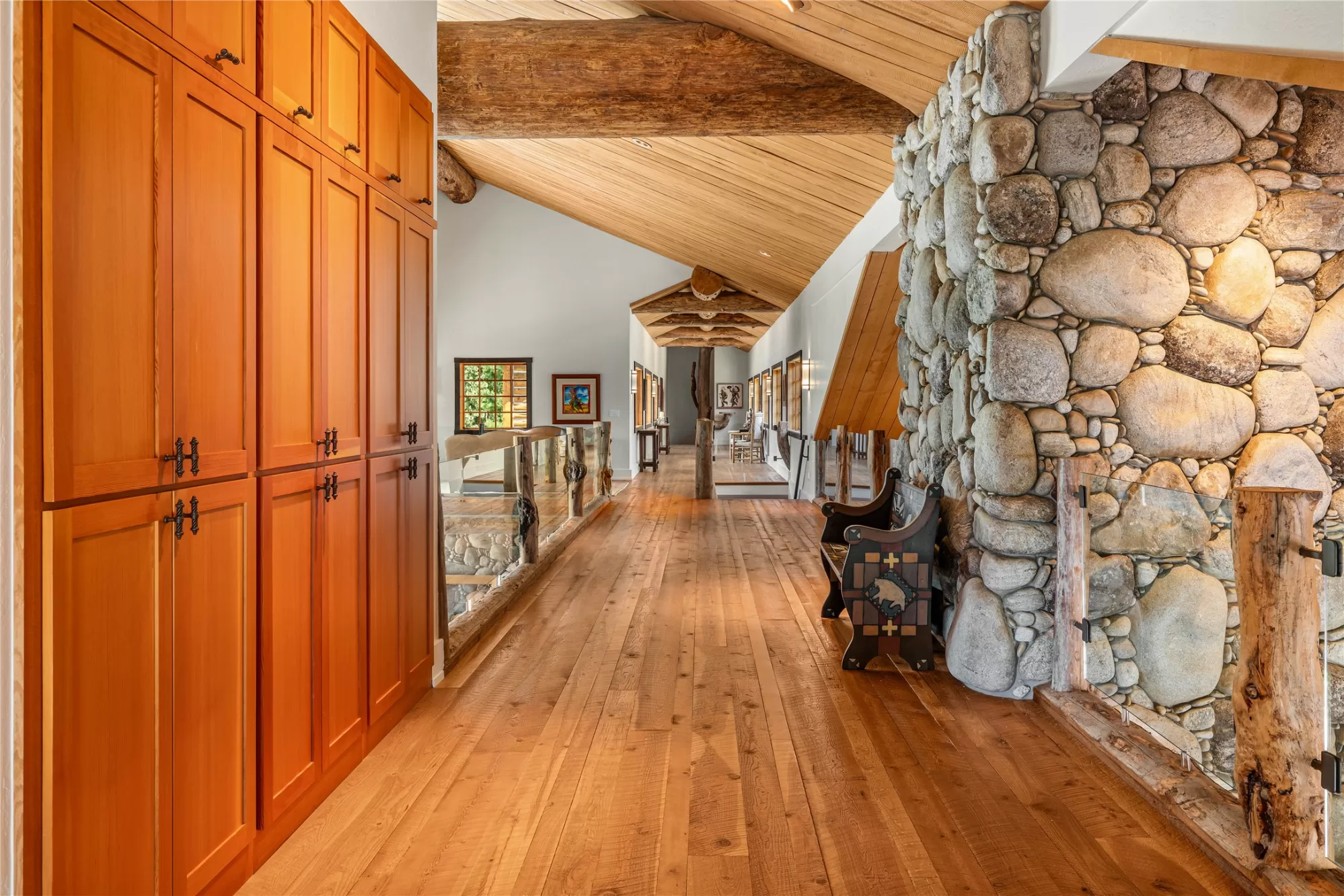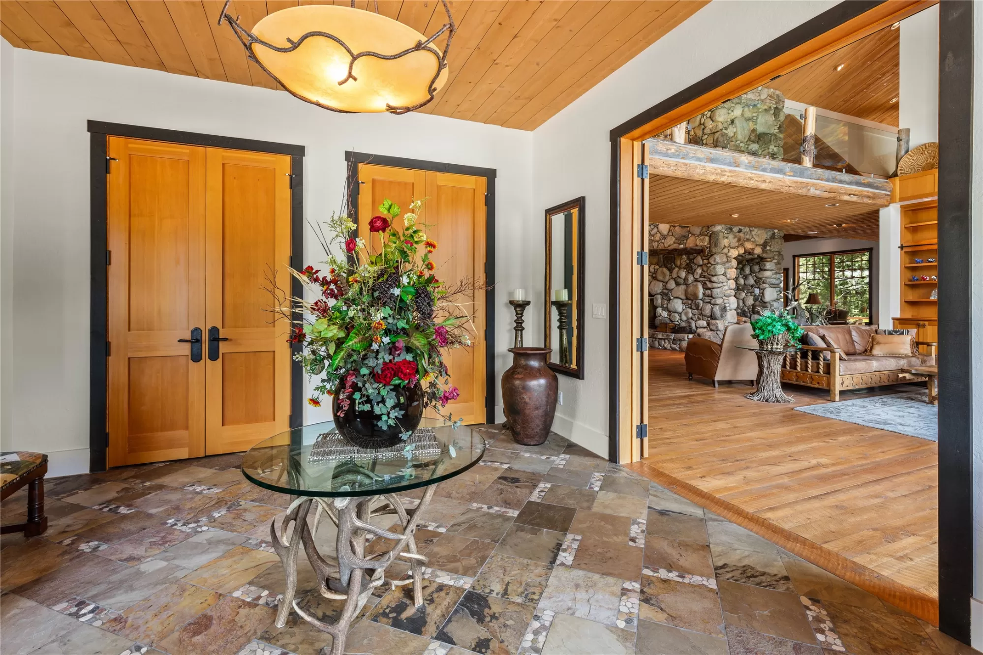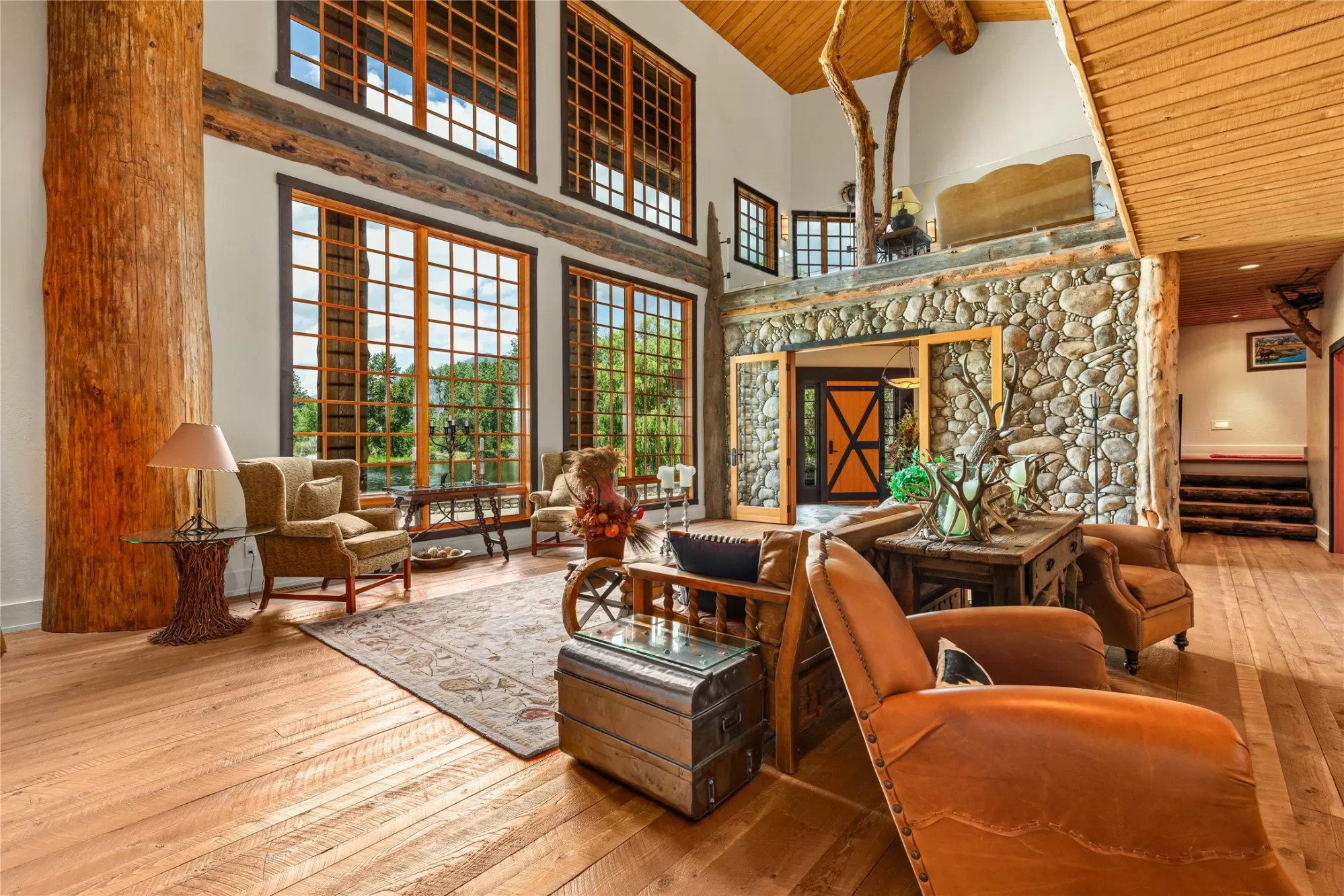 Welcome to Riverbell Ranch, a rare and exceptional offering in Montana’s Bitterroot Valley. With nearly one mile of pristine Bitterroot River frontage, this 170 acre legacy estate blends luxury, privacy, and natural beauty in an ideal location just minutes from a paved road and about 40 minutes from Missoula. The Bitterroot River—renowned as one of the nation’s top fly-fishing streams—forms the ranch’s boundary, while the dramatic Bitterroot and Sapphire Mountains provide an ever-present, awe-inspiring backdrop. Set within the valley’s mild climate and vibrant ecosystem, Riverbell Ranch is a gateway to endless outdoor recreation including world-class fly fishing, hunting, horseback riding, rafting, hiking, snowmobiling, and skiing. The property is also near premier destinations such as Montana Snowbowl, Lost Trail Pass Ski Area, the exclusive Stock Farm Club, and multiple national parks. At the heart of the ranch is a masterfully crafted log home where rustic elegance meets refined comfort. Towering timbers, vaulted ceilings, and expansive windows fill the residence with light and frame panoramic mountain views. A monumental 400-ton, double-sided river rock fireplace anchors the open-concept living and dining areas. The gourmet kitchen features a Viking range, custom cabinetry, premium appliances, and a large central island for both cooking and gathering. The owner's suite overlooks serene ponds and mountain scenery and includes its own fireplace and spa-inspired en-suite bath. Two additional guest suites, a home office with full bath, private guest quarters with a separate entrance, and a spacious three-car garage provide ample comfort and flexibility. Outdoor living is elevated with a large patio and wood-fired pizza oven, ideal for alfresco dining under Montana’s vast skies. Impeccable landscaping, tranquil ponds, and meandering waterways surround the home, creating a peaceful oasis. For equestrians, Riverbell Ranch features a well-maintained riding arena, irrigated pastures, and extensive trails, while natural forested areas attract abundant wildlife and game birds. Additional improvements include a self-contained three-bedroom caretaker’s cabin and a versatile one-bedroom barn apartment complete with a small kitchen and full bath—ideal for guests, rental income, or creative use. Multiple outbuildings and utility structures add to the property’s functionality and potential. Riverbell Ranch is more than a property—it’s a lasting legacy in one of the most coveted corners of Montana, where unmatched riverfront, wide-open land, and refined living come together in perfect harmony.