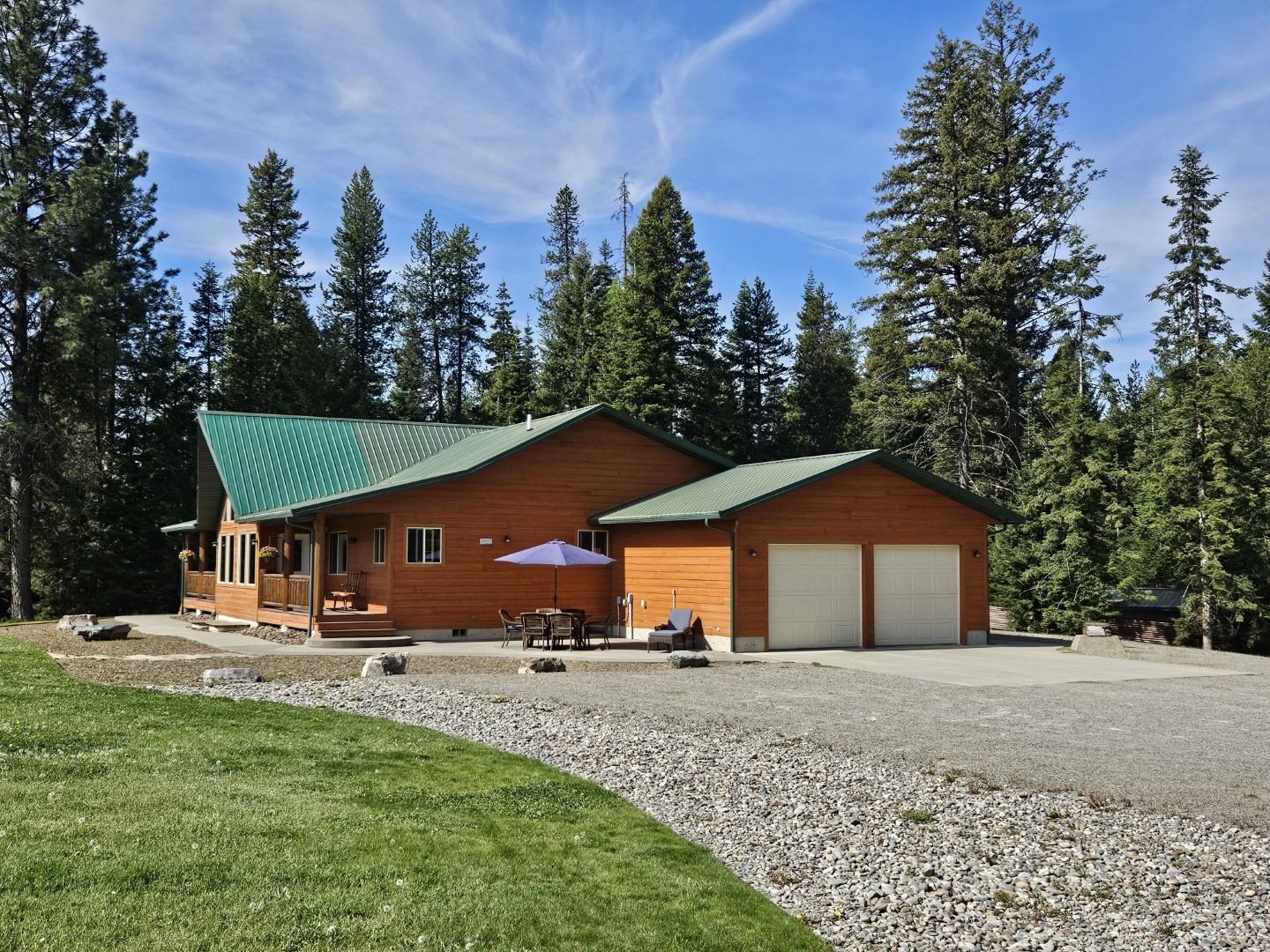 Custom Montana Dream Home with Opportunity to Owner Finance! - Embrace refined, single-level living on 9.59 picturesque acres of equestrian property just outside the charming town of Trout Creek. This beautifully crafted residence offers breathtaking, year-round views of the Cabinet Mountains, Noxon Rapids Reservoir, and your own private horse meadow. Designed for comfort and connection, the open-concept floorplan is accented by striking blue pine ceilings and walls, with rich hickory cabinetry adding warmth throughout. Two propane stoves and a Rinnai Energysaver heater ensure a cozy ambiance during every season. The main level features three spacious bedrooms, two and a half baths, a dedicated laundry room, a loft office, and a versatile bonus space, ideal as a guest suite, man cave, or hobby retreat. An oversized attached two-car garage provides both convenience and protection, while the unfinished basement offers generous storage and future potential. Step outside to take in the sweeping views, tend to your garden, or unwind in the private hot tub as the stars blanket the Montana sky. The property also includes a 12x12 garden shed, a 36x30 shop with 12-foot RV parking and 220V power, a 30x50 machine shed perfect for equipment, hay storage, or greenhouse conversion, and a 50x80 insulated shop/barn with propane heat, tailored for year-round use. Located just minutes from premier hunting, fishing, and endless outdoor adventure, this is a rare opportunity to own a private Montana retreat that truly has it all. Only 1.5 hours away from Schweitzer Mountain, a popular ski area in Sandpoint, ID, 2.5 hours from Spokane Int'l Airport and 2 hours from Missoula, MT.