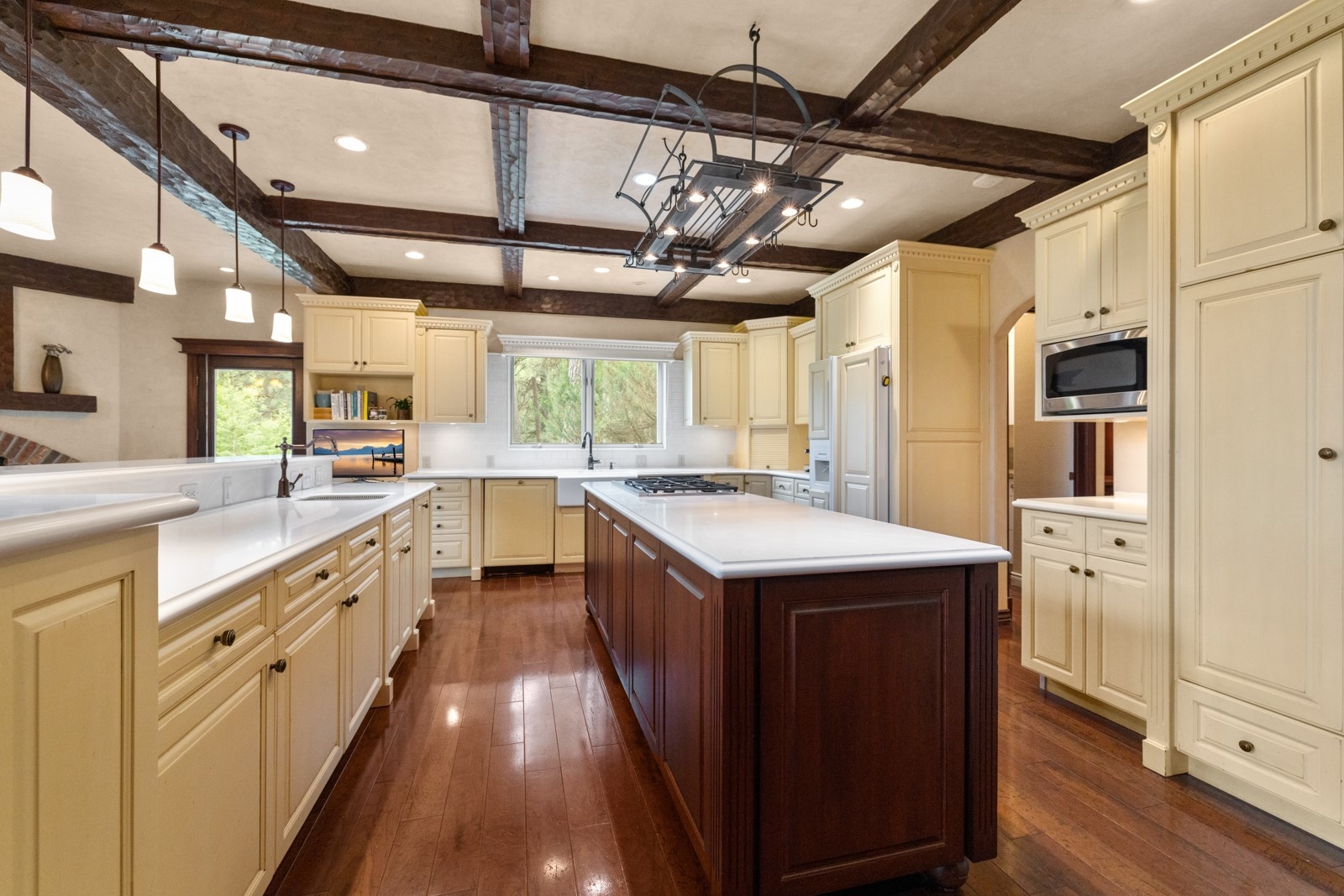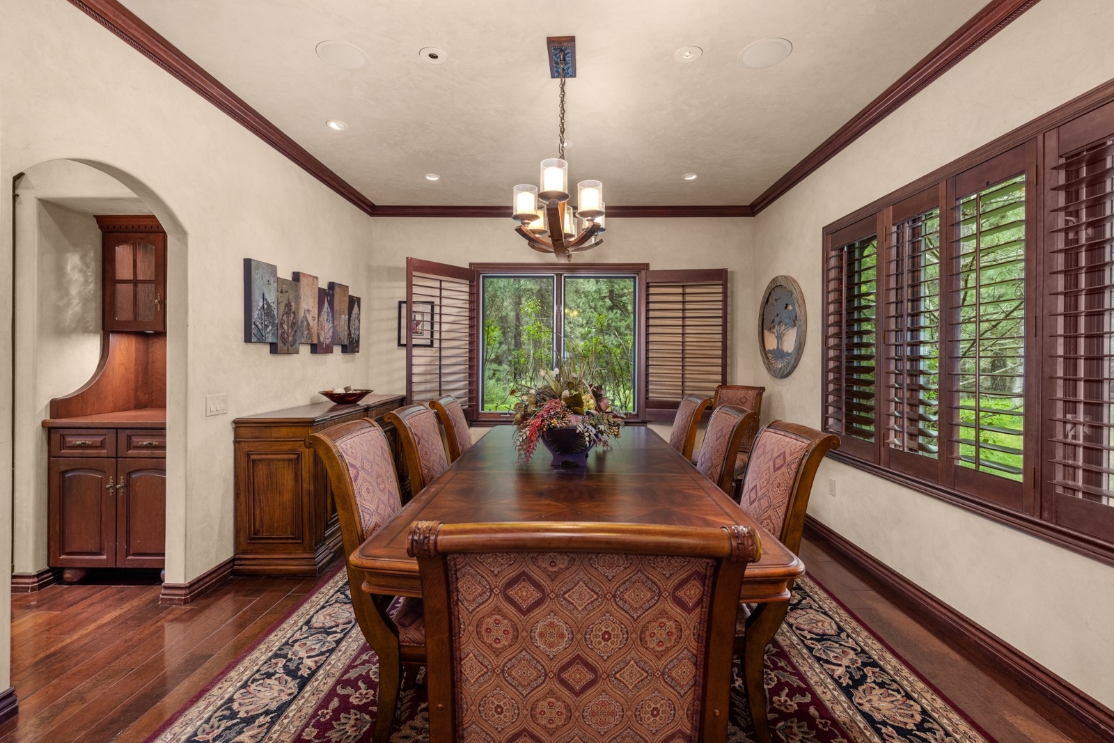 Plantation Pines Privacy! Nestled on 2.39 acres in the highly desirable Plantation Pines neighborhood, this beautifully crafted 5-bedroom, 4-bathroom home offers views toward Whitefish Mountain Resort, Glacier National Park, and the Swan Range. Thoughtfully designed with comfort and elegance at the forefront, the home features vaulted ceilings, hardwood floors, customized built-ins, intricate detailing, and an open-concept layout perfect for modern living. The chef-inspired kitchen is equipped with high-end appliances and custom cabinetry, while the luxurious primary suite includes a spa-like bathroom with a soaking tub, dual vanities, and a separate shower. Outdoor living is equally impressive, with a covered patio overlooking a spacious backyard, ideal for relaxing or entertaining in privacy. Plantation Pines offers access to 82 +/- acres of shared common area, including a pond, tennis courts, cross-country/walking trails, and gated RV/boat storage. Located in the Whitefish School District and centrally positioned in the Flathead Valley, this one-of-a-kind property offers tranquility and convenience, just minutes from both downtown Whitefish and Kalispell.