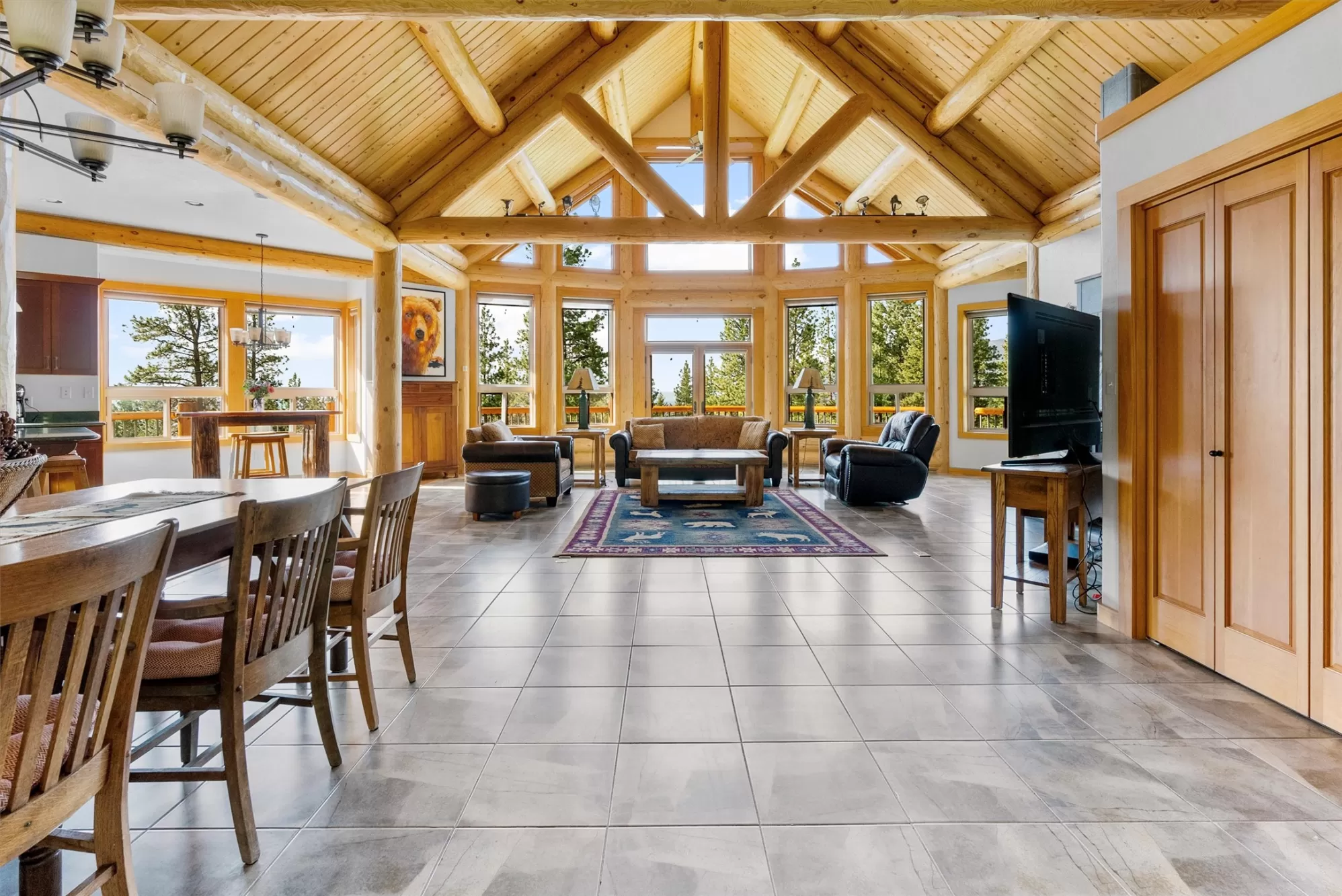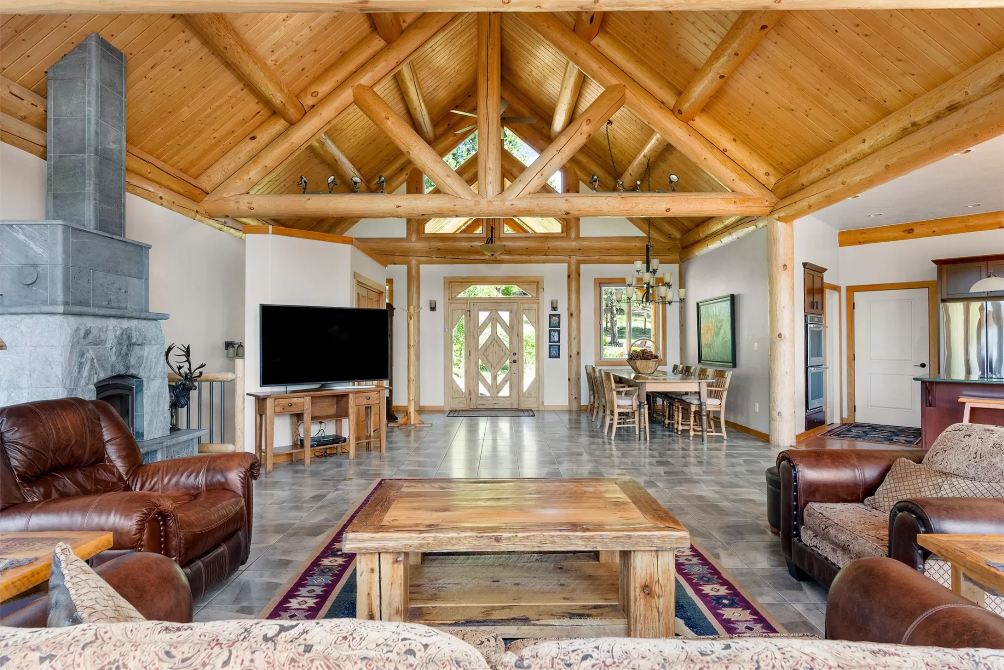 Tucked among towering pines and backdropped by the majestic Bitterroot Mountains, this stunning custom-built post and beam home sits on an expansive 95+ acres just a short and well maintained 10 minute drive west of Victor, Montana. Offering ultimate privacy, serenity, and uninterrupted panoramic views, this extraordinary property is bordered by Forest Service land to the north and west, and protected conservation easement land to the south—ensuring your views and peace of mind remain forever untouched. Designed with masterful craftsmanship and rustic sophistication, the 3,270 Sq. Ft. residence features intricate wood detailing, king log trusses, and a striking fusion of ceramic and wood flooring optimized for in-floor radiant heat. Vaulted cathedral ceilings and expansive windows flood the main living space with natural light, creating a passive solar design that enhances warmth and efficiency year-round. At the heart of the home is a hand-crafted sandstone Tulikivi fireplace, radiating both heat and character through the living area and adjacent main floor bedroom. The chef’s kitchen is as functional as it is beautiful, boasting rich cherry wood cabinetry, forest green Silestone countertops, a central island with eating bar, and a spacious walk-in pantry. The main-level primary suite is a private sanctuary featuring a spa-style bath with custom tile shower, dual vanities, and generous walk-in closets. The walkout lower level offers additional living space with a large family room, second bedroom, a third non-conforming bedroom or den, and a convenient kitchenette—perfect for guests or multi-generational living. Step outside to a sprawling deck with an awning, ideal for outdoor entertaining or quiet mornings with sweeping valley views. The land itself is a haven, complete with two small ponds, fruit trees (apple, pear, cherry), forest service trail access, and one of the valley’s highest-producing wells. A 3-car garage, asphalt driveway, and recent upgrades—including a new roof, freshly painted exterior, and sealed beams—ensure the property is move-in ready and built to last. Additional features include a 400-gallon cistern, comprehensive fire suppression system, and inclusion within the Victor Fire Protection District—providing peace of mind in this remarkable, self-sufficient retreat. This is more than a home—it's a rare legacy property where Montana rustic charm meets refined comfort. Starlink internet is installed and ready for your high speed internet. Also offered for sale as 115+ acres for $2,495,000 see MLS 30050669