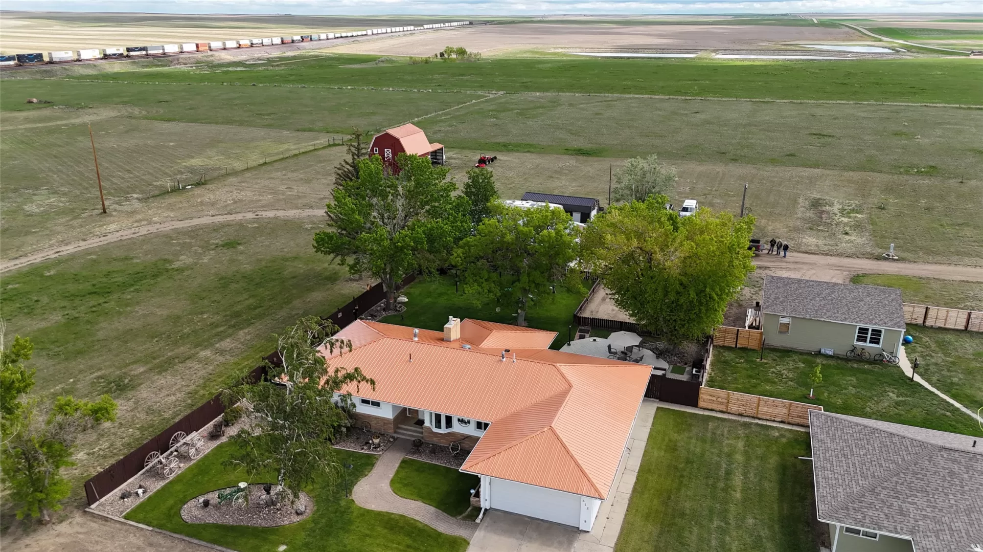 Welcome to this Charming Home with Heated Shop, Barn & Spacious Fenced Backyard. This beautifully updated 3-bedroom, 2-bath home includes 3 additional non-conforming rooms, large pantry, laundry and great storage. Nestled on 1.47 acres, featuring a large deck, fully fenced backyard with automatic sprinklers—perfect for entertaining. Step inside to an inviting open floor plan with a bright living area, freshly updated kitchen countertops, newly remodeled main floor bathroom as well as updated electrical, plumbing and HVAC system. The patio just outside the master bedroom, is great for enjoying morning coffee or relaxing in the evenings. This one checks all the boxes. Located on the quiet edge of town, with easy access to multiple fishing or hunting opportunities in any direction. The heated shop offers 110V and 220V outlets, water, floor sump and large air compressor as well as a 50 amp outdoor RV outlet. The barn has over a 100 year history with easy access to the full loft, including a new attached equipment shed. New 12X30 storage shed with a 9X7 roll up door and walkthrough door. Property includes a 36 gun safe and 220V air compressor. This property offers both comfort and functionality and unlimited opportunity.