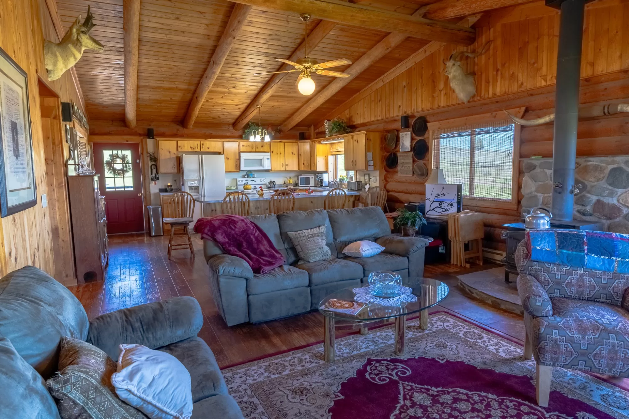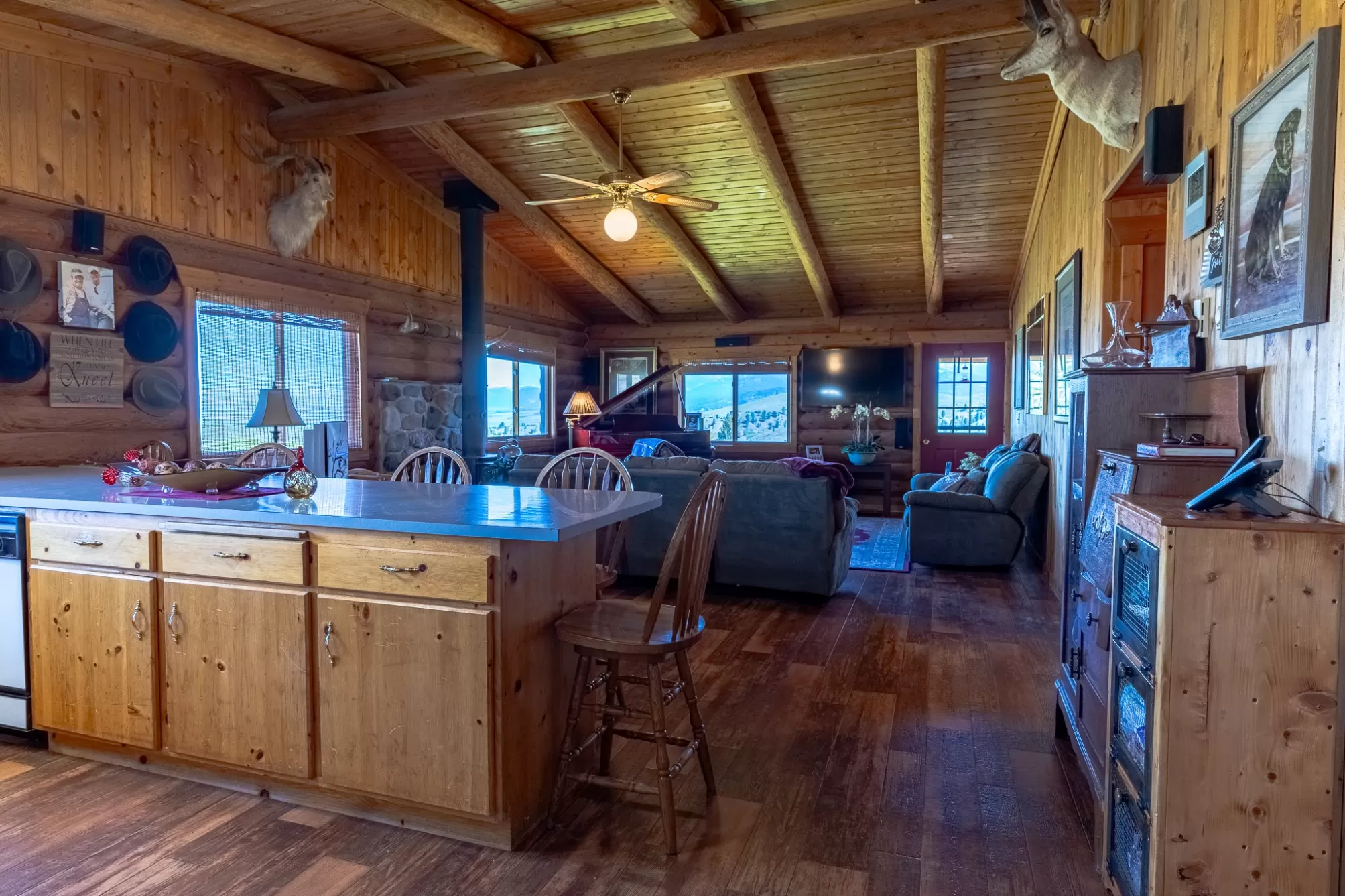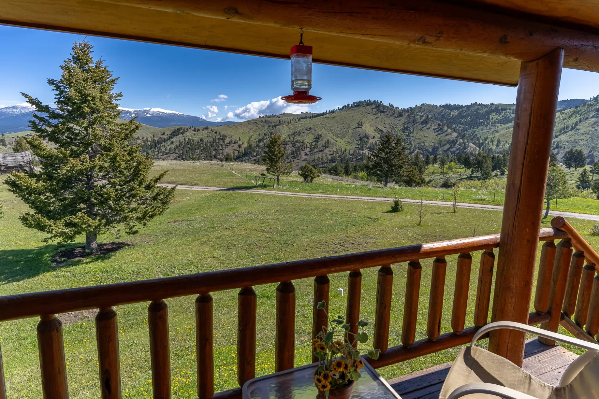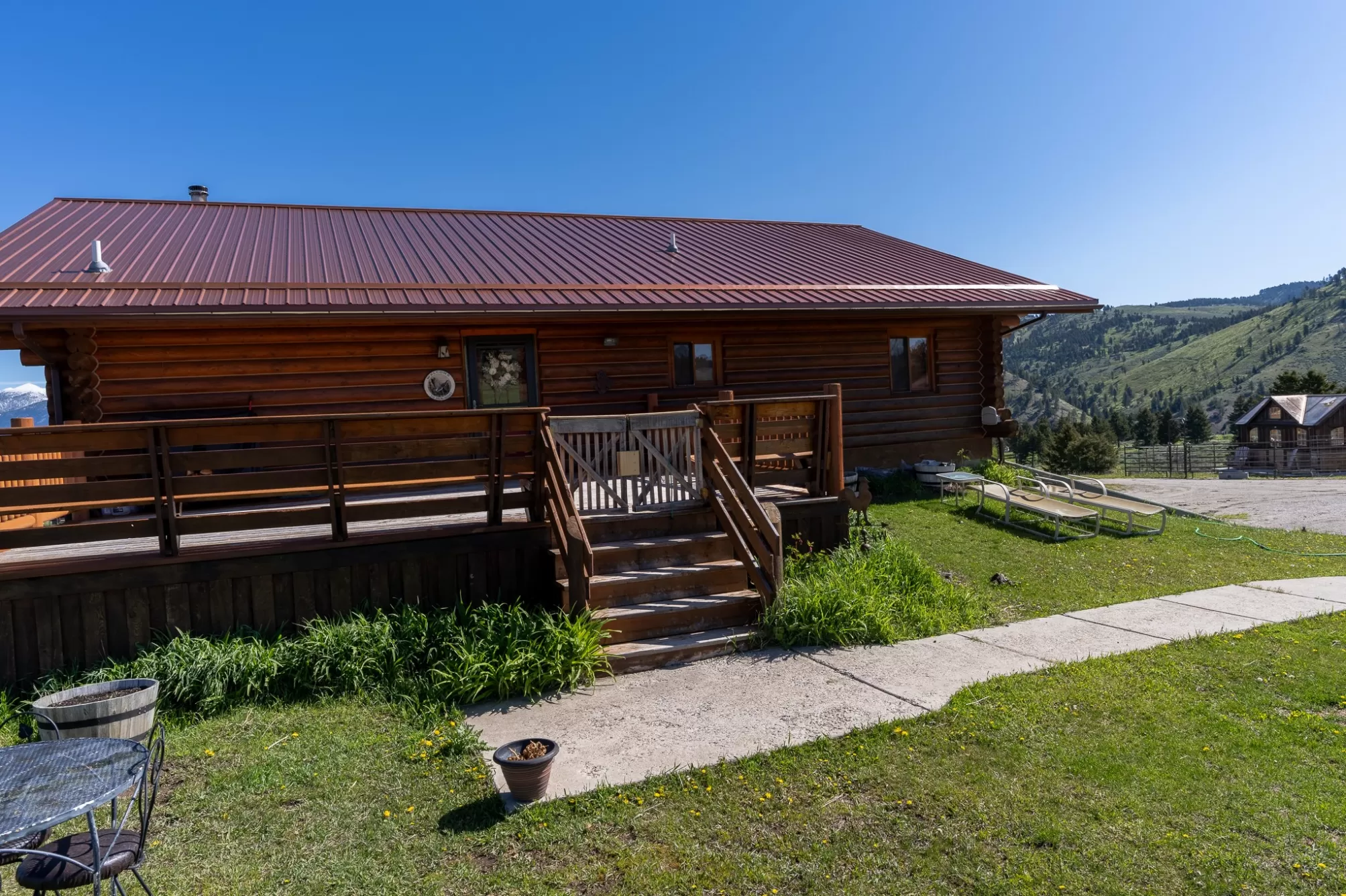 Welcome to your 20-acre oasis, offering privacy near the end of the road. This beautiful log home with vaulted ceilings features 3 spacious bedrooms and 2 bathrooms on the main level, along with a 1-bedroom (non-conforming) suite with a private entrance in the daylight basement, perfect for guests or as an in-law suite. The oversized tuck-under garage has two floor drains & is heated for your convenience. The views are breathtaking, and the tranquil surroundings will make it hard to leave! The entire property is fenced and has two pastures. The barn is a generous size, with ample room for expansion if needed. The tack-room is even heated! There is also a well-established greenhouse for your gardening projects. Additionally, a natural spring runs from April to August nearly every year. The well-maintained county road ensures easy access to town, which is just 20 minutes away from Townsend. Don't miss out on this piece of paradise!