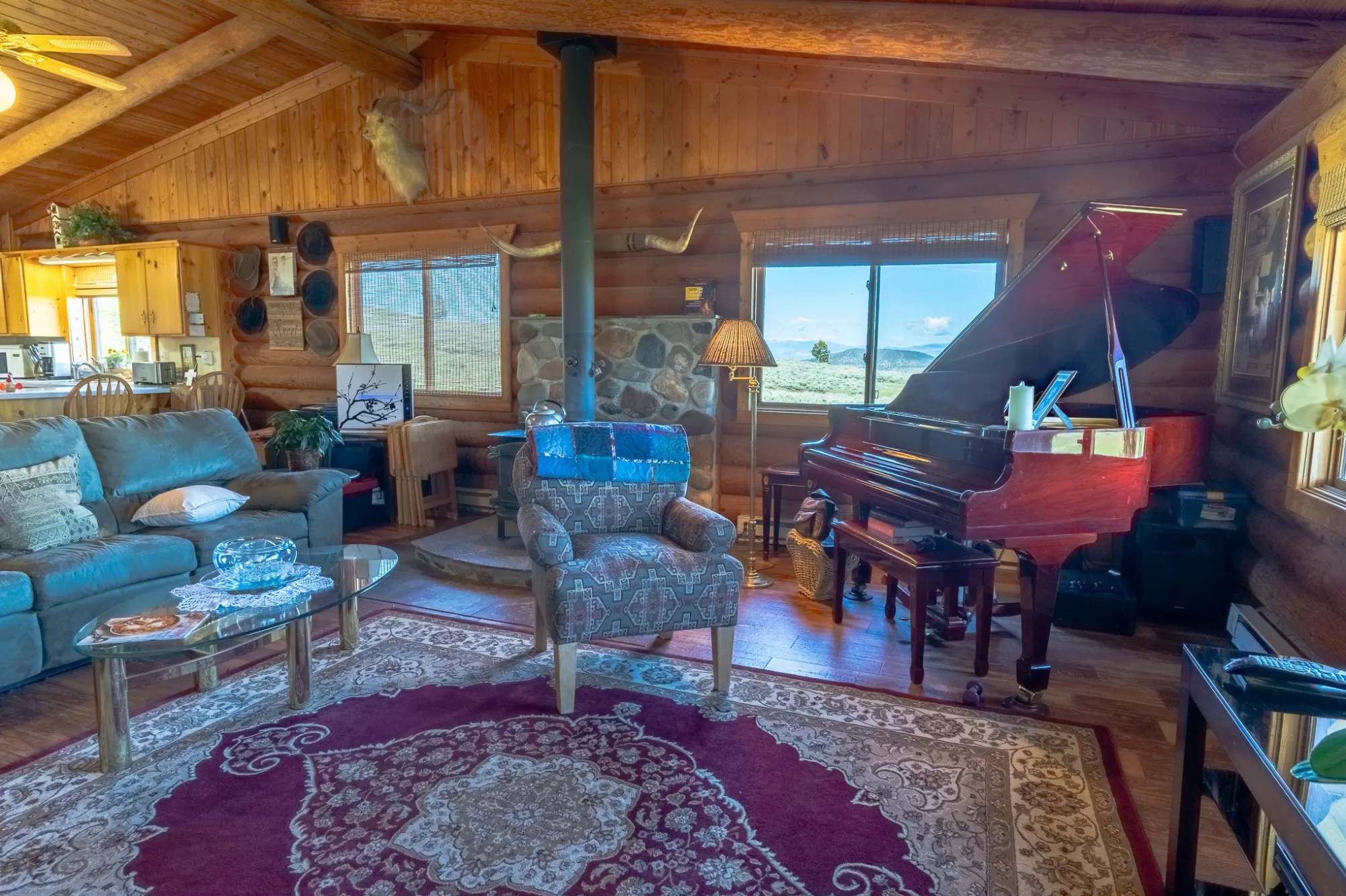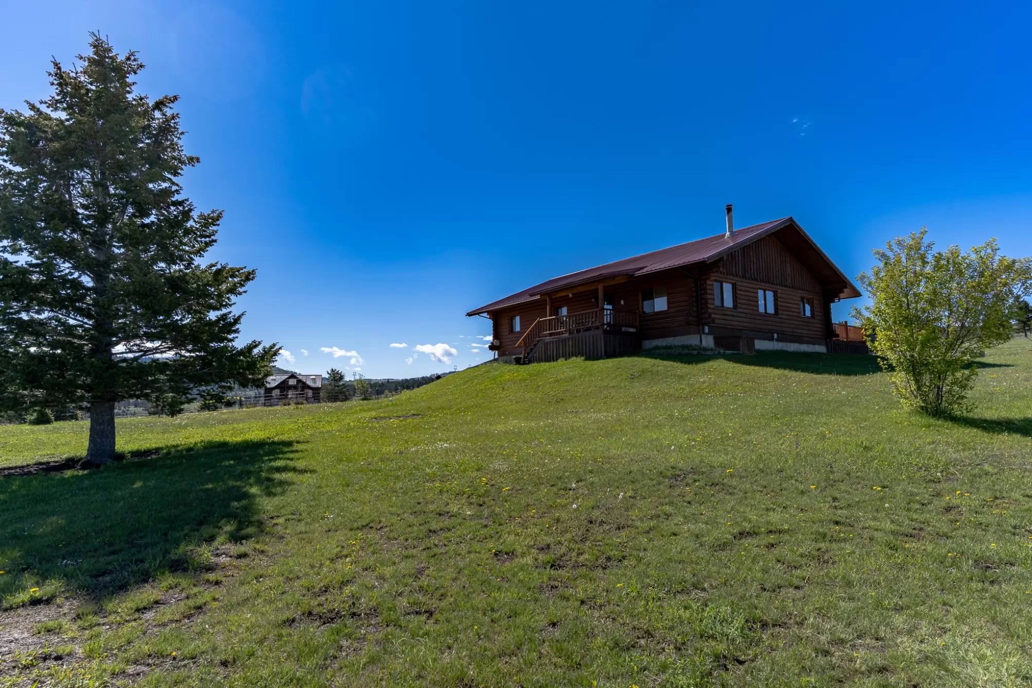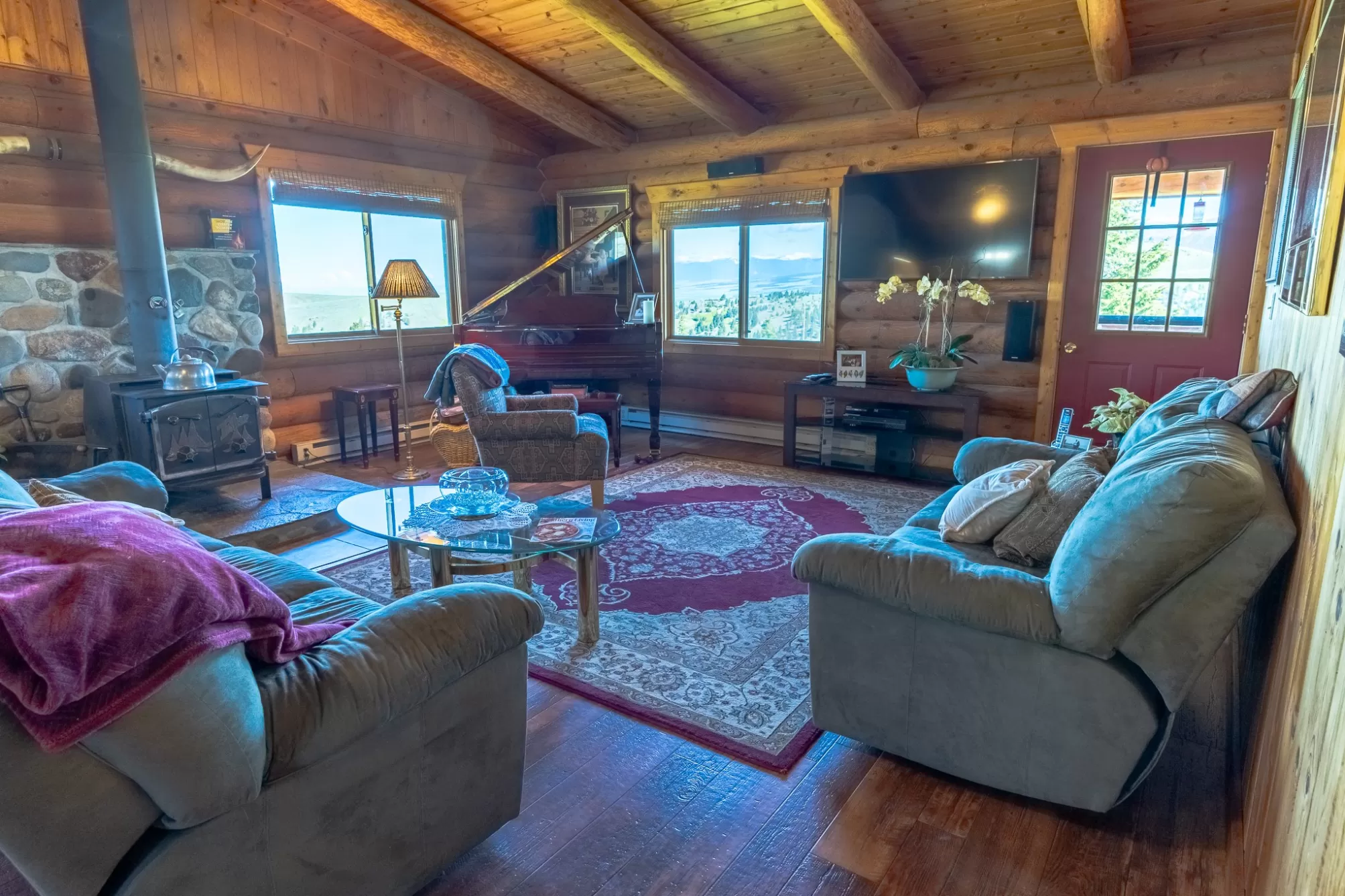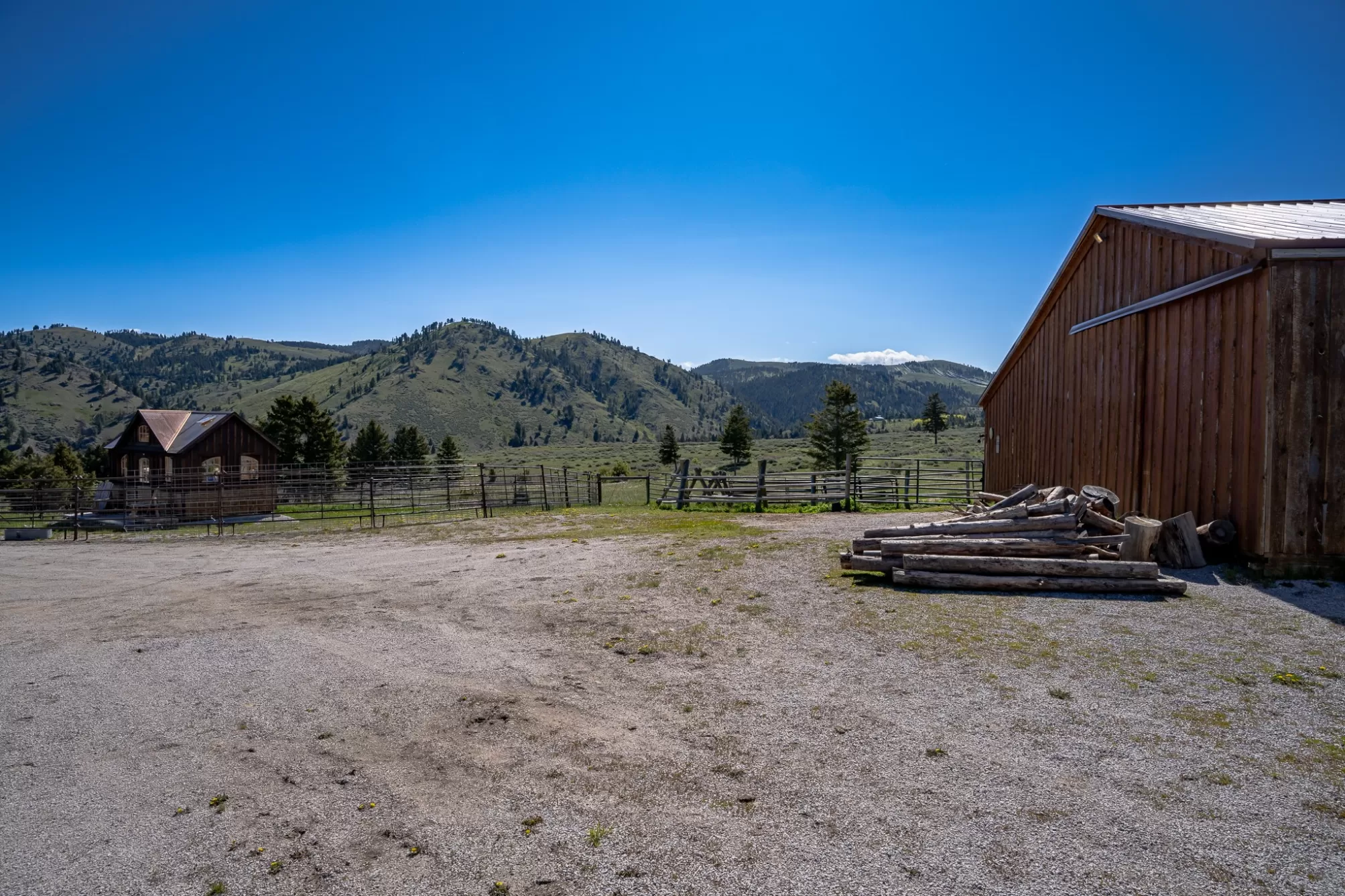 Welcome to your 20-acre oasis, offering privacy near the end of the road. This beautiful log home with vaulted ceilings features 3 spacious bedrooms and 2 bathrooms on the main level, along with a 1-bedroom (non-conforming) suite with a private entrance in the daylight basement, perfect for guests or as an in-law suite. The oversized tuck-under garage has two floor drains & is heated for your convenience. The views are breathtaking, and the tranquil surroundings will make it hard to leave! The entire property is fenced and has two pastures. The barn is a generous size, with ample room for expansion if needed. The tack-room is even heated! There is also a well-established greenhouse for your gardening projects. Additionally, a natural spring runs from April to August nearly every year. The well-maintained county road ensures easy access to town, which is just 20 minutes away from Townsend. Don't miss out on this piece of paradise!