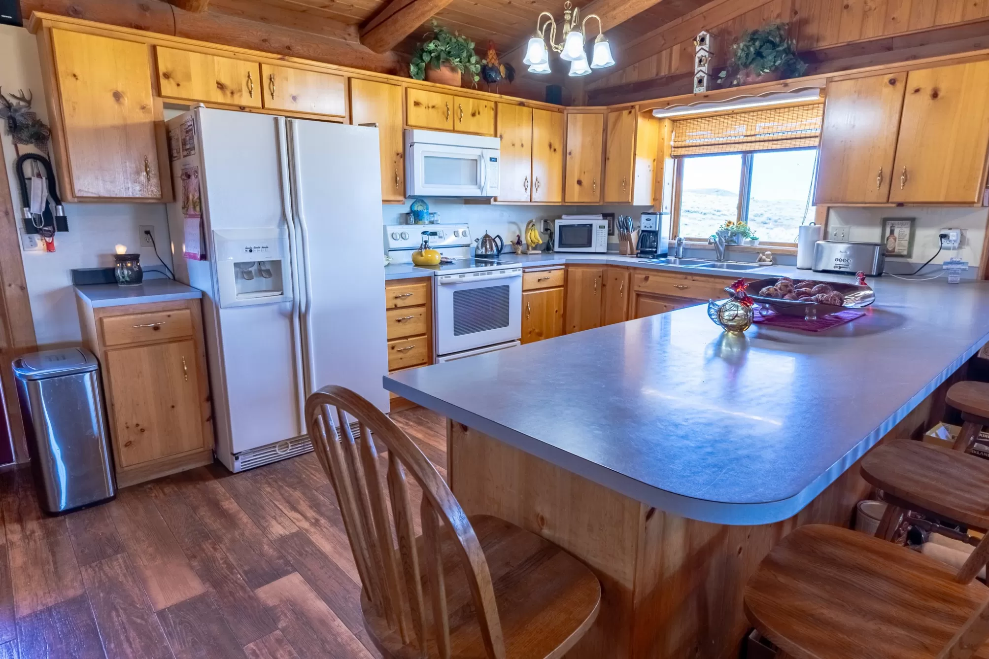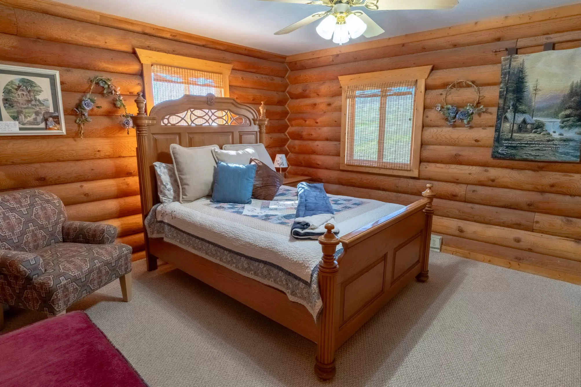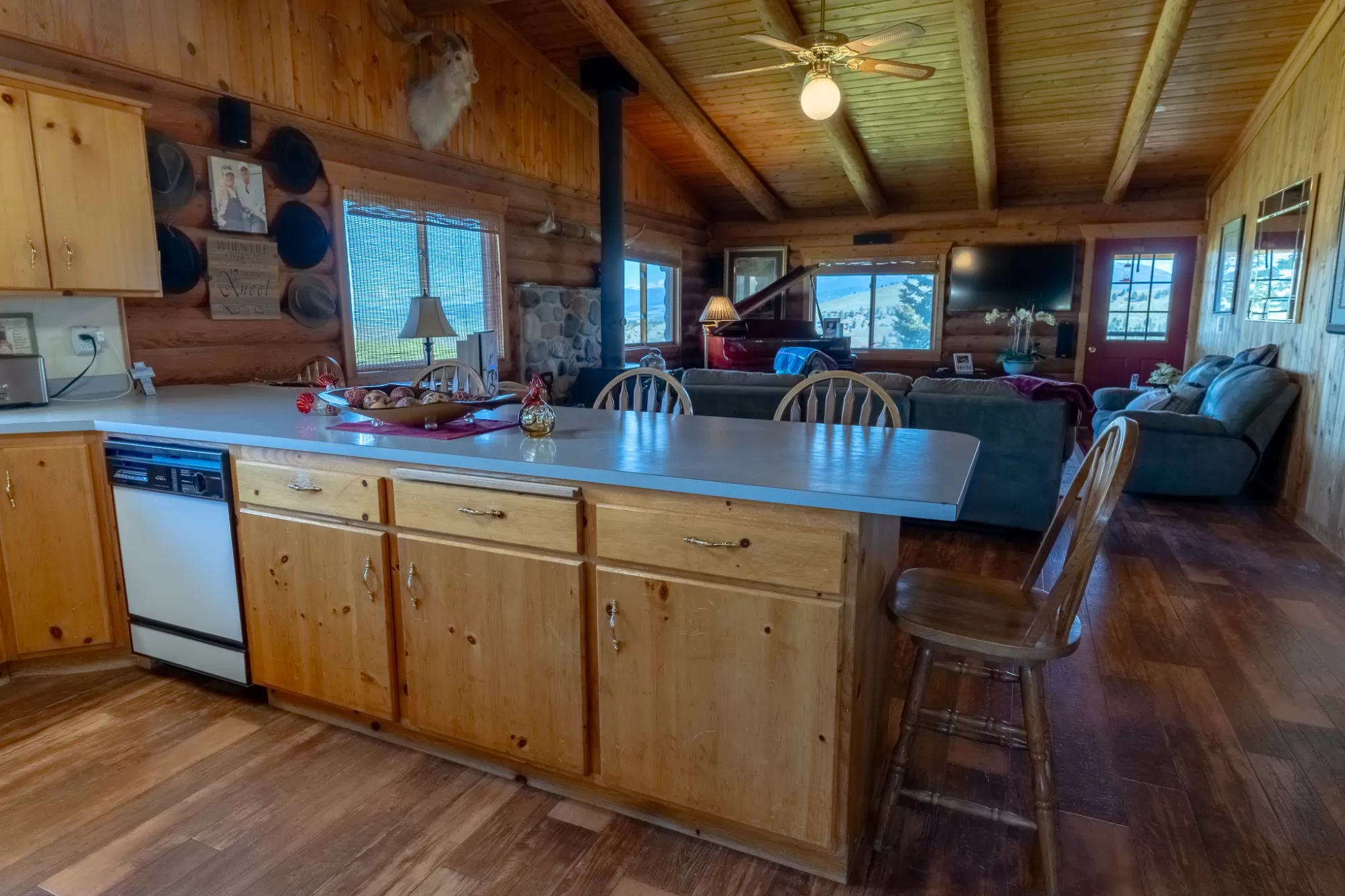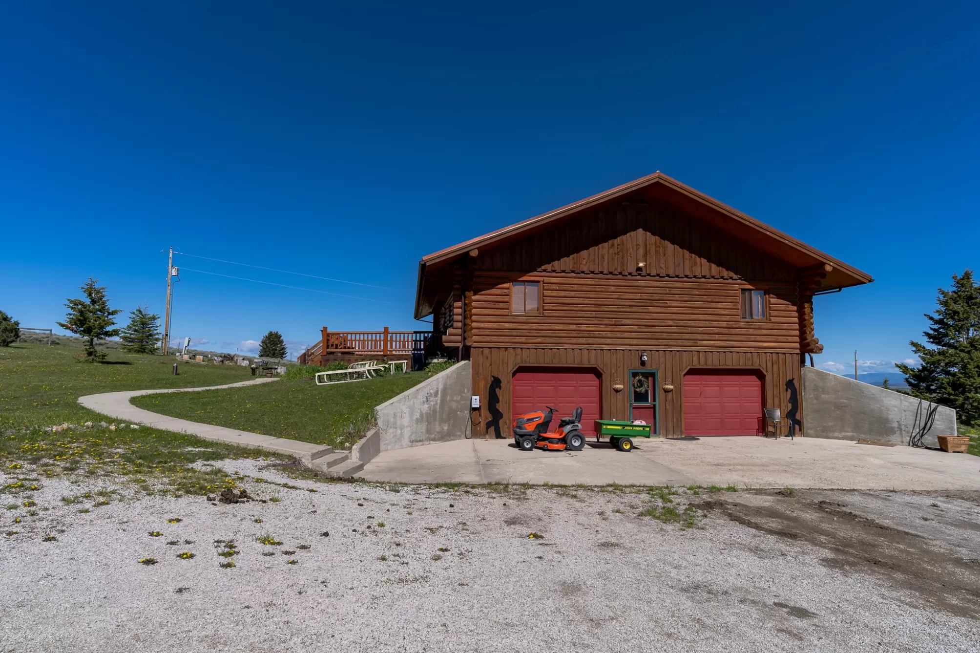 Welcome to your 20-acre oasis, offering privacy near the end of the road. This beautiful log home with vaulted ceilings features 3 spacious bedrooms and 2 bathrooms on the main level, along with a 1-bedroom (non-conforming) suite with a private entrance in the daylight basement, perfect for guests or as an in-law suite. The oversized tuck-under garage has two floor drains & is heated for your convenience. The views are breathtaking, and the tranquil surroundings will make it hard to leave! The entire property is fenced and has two pastures. The barn is a generous size, with ample room for expansion if needed. The tack-room is even heated! There is also a well-established greenhouse for your gardening projects. Additionally, a natural spring runs from April to August nearly every year. The well-maintained county road ensures easy access to town, which is just 20 minutes away from Townsend. Don't miss out on this piece of paradise!