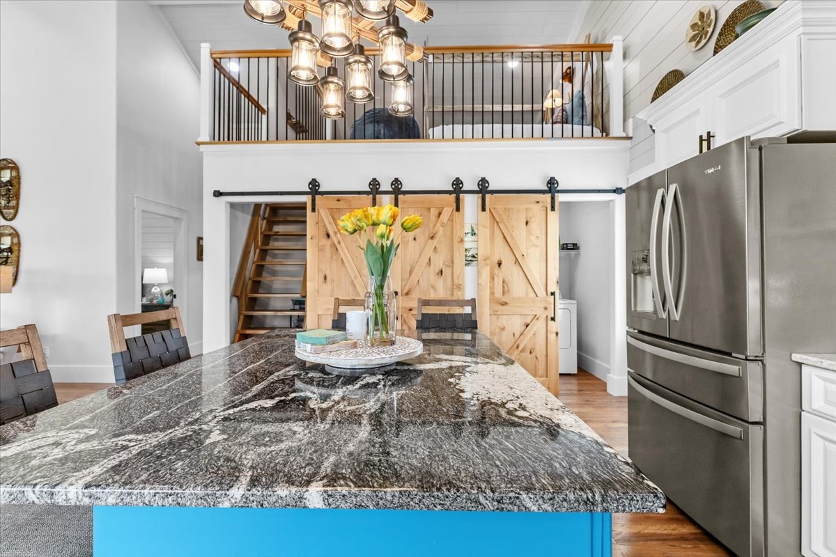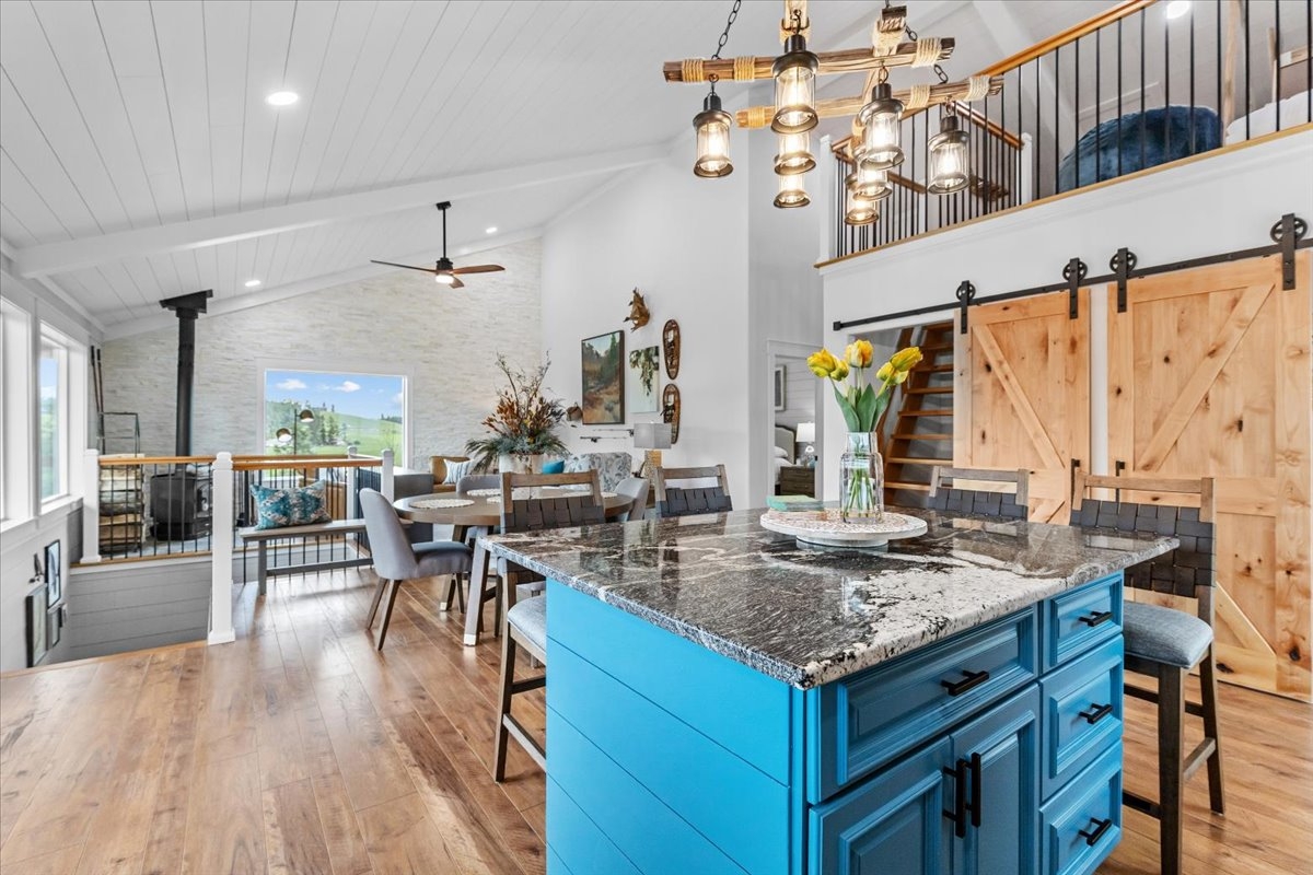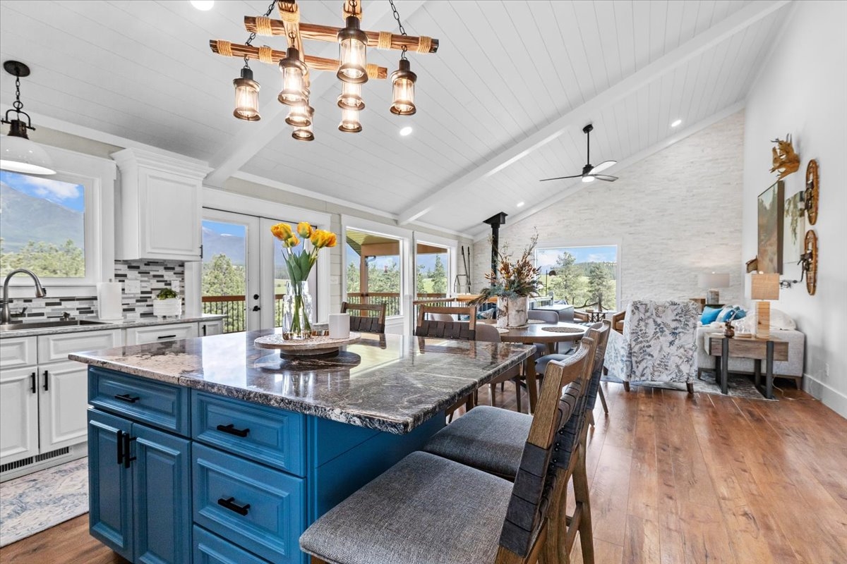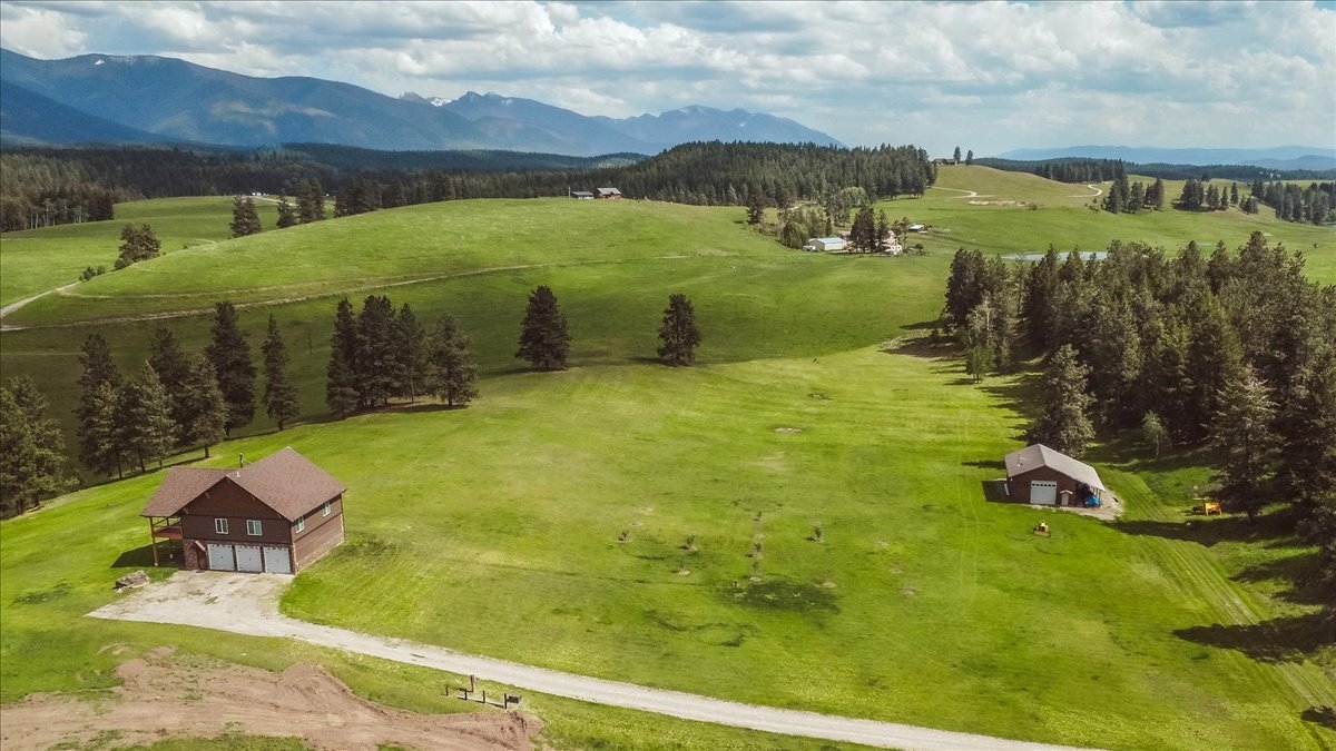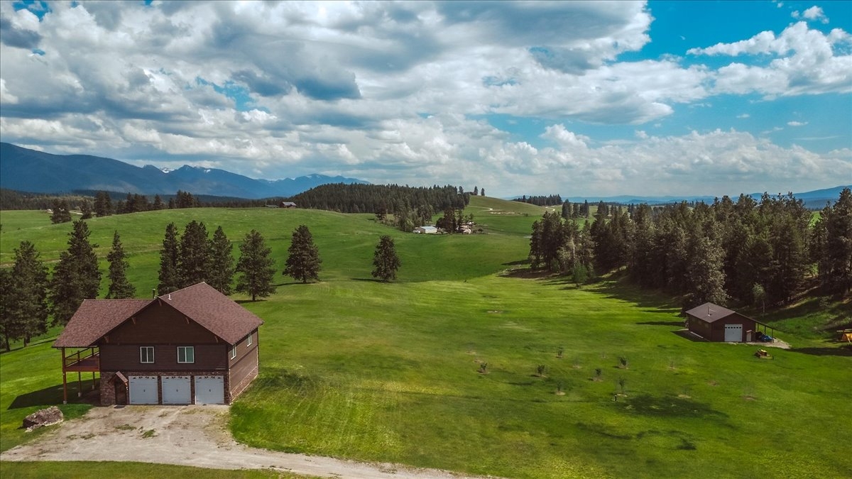 Situated in a storybook setting with lush rolling hills and sweeping mountain views this hand crafted home captures the best of Big Sky Country. Located on the coveted east side of the valley and against a towering mountain backdrop the green meadows and forested borders create a truly captivating setting. Featuring an open floor plan with expansive windows to bring in the scenic views of the Whitefish Mountain Range the completely custom home showcases quality in every detail. Constructed with natural stones and polished hardwoods the main level living area is a work of art. At the center of the home the gourmet kitchen is adorned with granite countertops, handmade cabinetry, and chandelier lighting that blend elegance with master craftsmanship. The open family room features vaulted ceilings, a stone accent wall, and a corner fireplace that create a warm and inviting space to enjoy family and friends. Retreat to the covered deck for evening gatherings and bask in the alpine mountain glow as the sun sets over the horizon. The primary suite is a private sanctuary with vaulted ceilings & a spa-like en-suite complete with a soaking tub and exquisite tile shower. Climb the ladder to a cozy loft that was created from your childhood dreams and is the perfect getaway for your young visitors. Downstairs the spacious 3 stall garage & finished living area are perfect overflow for company, a home office or gym space. Polished to perfection this space includes finished flooring throughout, rustic wood accent walls, radiant floor heat and a second laundry area. This unique basement garage is finished to impeccable quality and can easily be used as additional living space. As such, it is included in the total living square footage of the home. Hobbyists or collectors will appreciate the spacious detached shop tucked at the edge of the property providing ample covered storage and additional work space. This is a truly special Montana property—offering privacy, beauty, and a lifestyle to be cherished for generations. With the option of being sold completely turn key this property is ready for you to step in and start making memories.