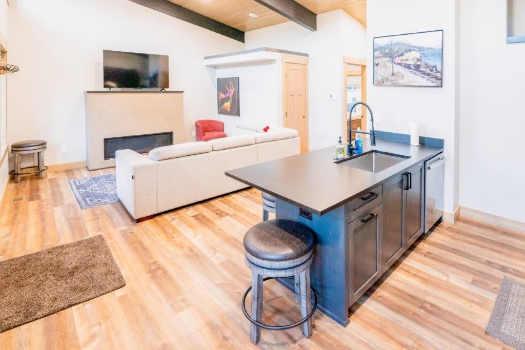 "The Stryker" located within The Cabins at Whitefish community, just steps from WF Lake Golf Course & minutes to the Lake, River, Trail Heads & Downtown. The Cabins is the original community of free standing, reduced footprint homes custom designed by MT Creative & constructed by Barbieri Builders. Each unit was designed site specific to accentuate stellar views & natural Lighting. Max efficiency w- a flair for luxury. Elite craftsmanship & materials providing contemporary looks, durability & reduced maintenance. No Attached Walls, No Wasted Space & Outright Ownership of buildings. Each is equivalent to a penthouse suite creating an ideal atmosphere for owner & vacation renter. The Stryker offers 2 bedrooms one bathroom, comes fully furnished-turnkey & with a Golf Cart! Great rental history & upcoming reservations. Adjacent to the 8 acre Grouse Mtn city park and close to all that Whitefish has to offer.