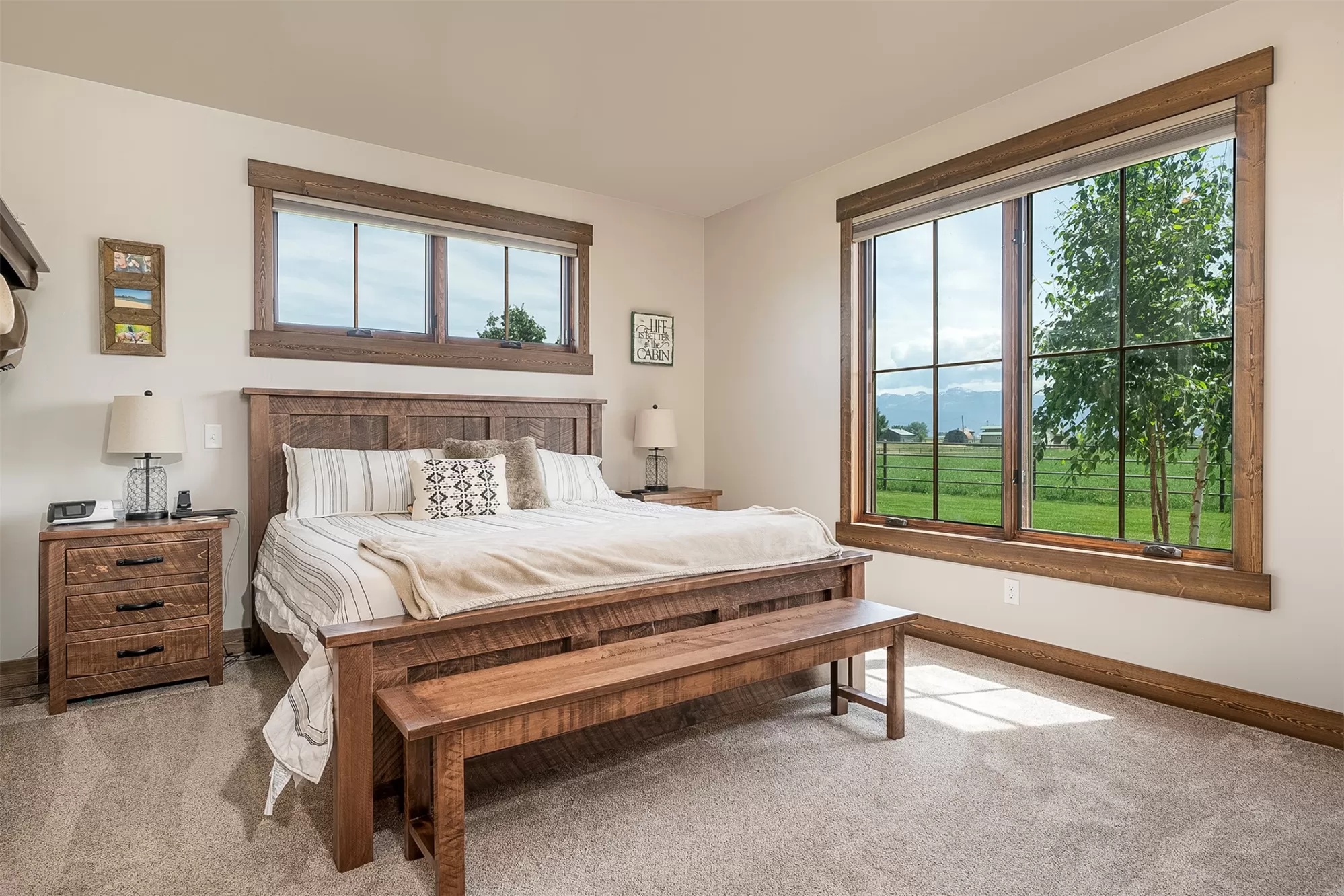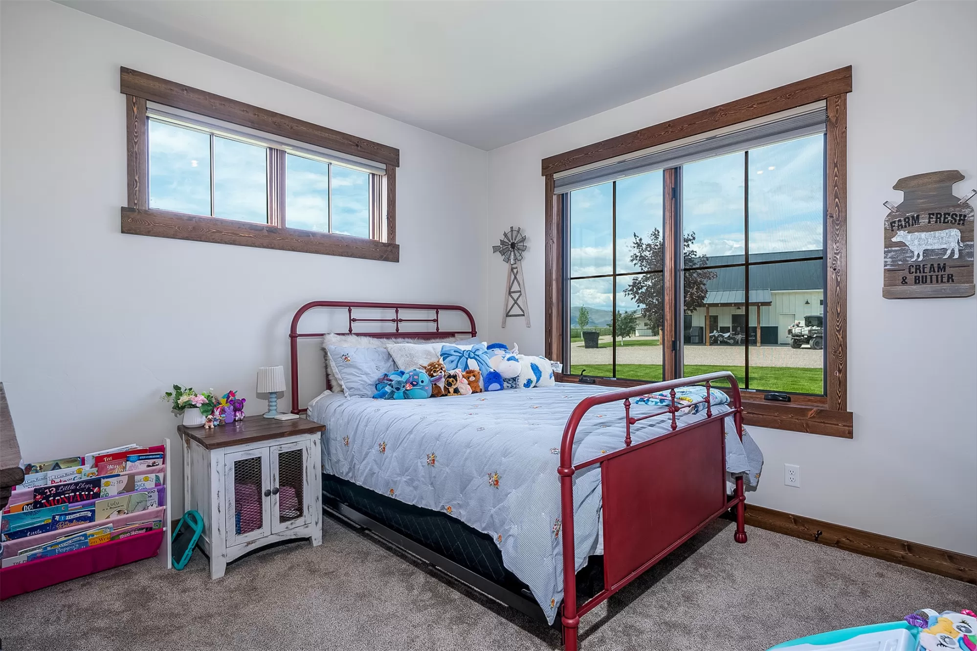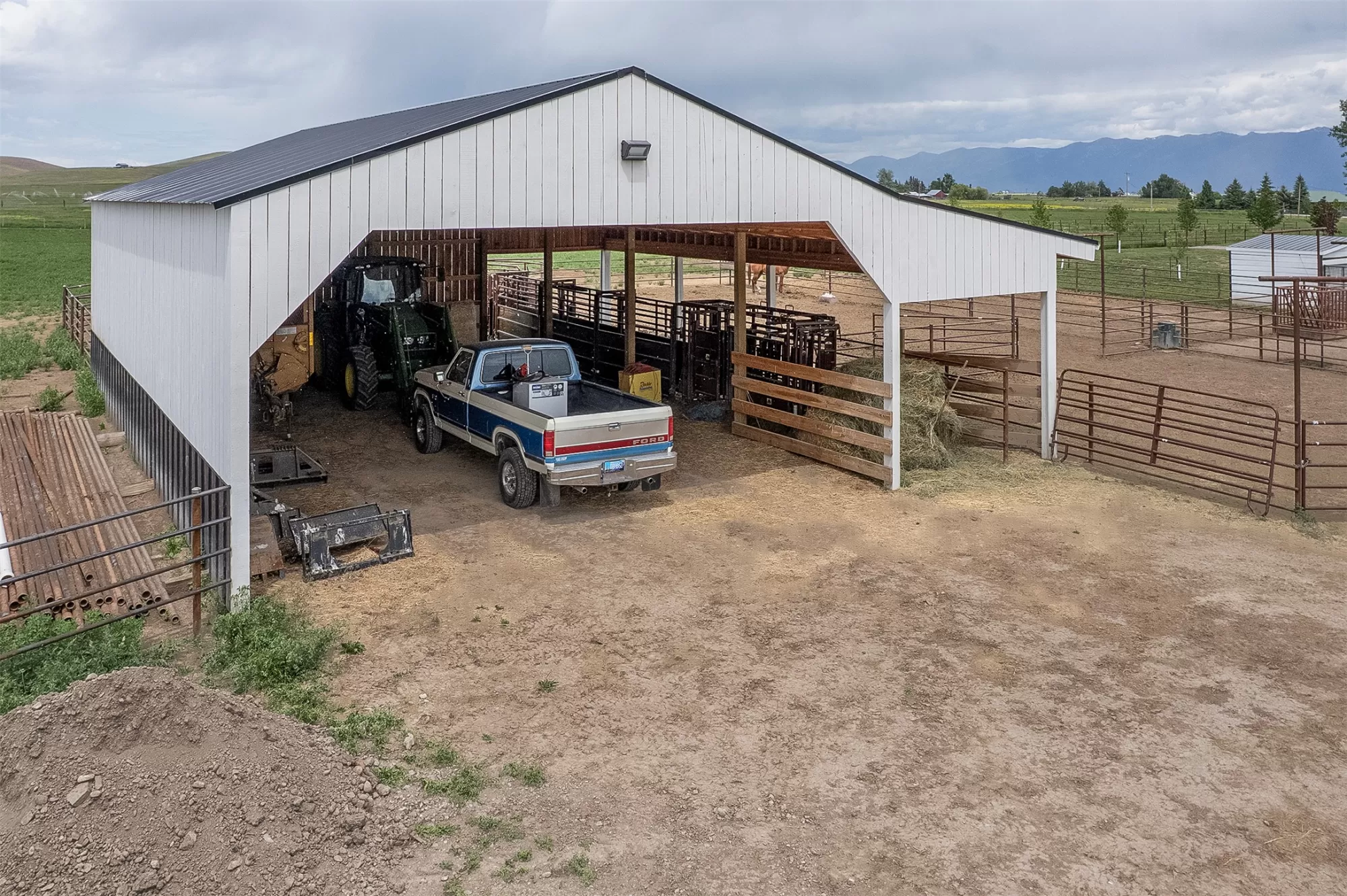 This 40-acre Montana estate offers luxury living in every detail with stunning Mission Mountain views. Ideal for horses or farming, the property includes 35 irrigated acres of alfalfa, a 40x80 heated shop with an 800 sq ft apartment, a 60x44 horse barn (two stalls) with heated tack room, a 50x50 hayshed, and a deluxe chicken coop. The 2,969 sq ft home boasts a spacious open floor plan, including a gourmet kitchen, office with built-in cabinetry, and a master suite with his-and-her closets. The outdoor space features a gas fireplace, custom grill, flat screen tv and fire pit. Top amenities include central A/C, propane heat, two water heaters, and underground sprinklers. With 400 amp power service, community water, and solar-powered gates, this property blends luxury and functionality in a serene location. This property could be split into two 20 acre parcels.