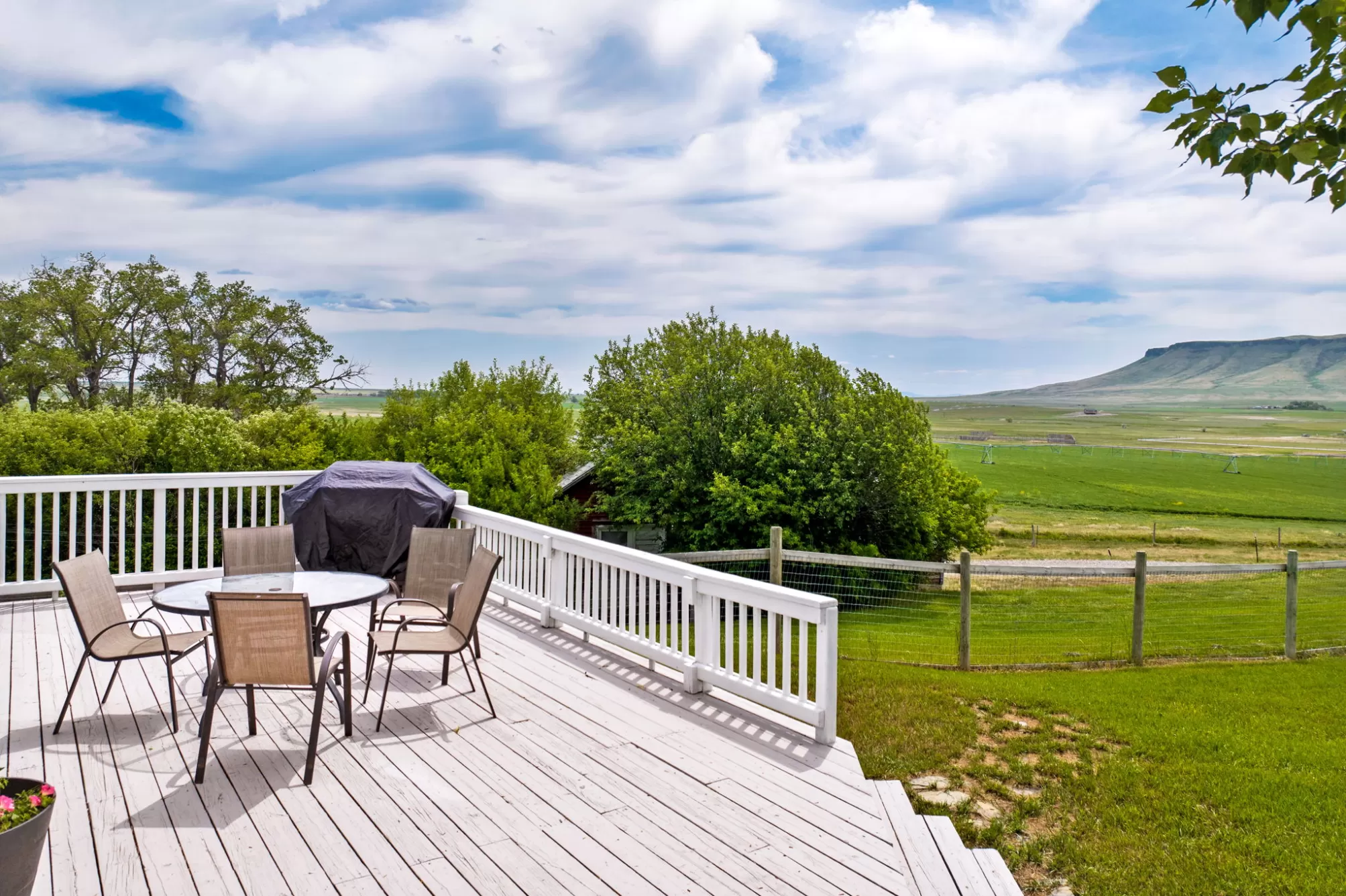 Located in the foothills of Square Butte and featuring unobstructed views, this sprawling ranch offers opportunity for both a cattle operation and productive farmland. The ranch house is situated on a bluff overlooking the expansive acreage below with the butte directly behind. The privacy and peaceful nature of this place, combined with its convenient proximity to Great Falls make it a rare find. WATER AND CROPS: The ranch house is connected to Two Buttes water system but the stock water comes from a 1625ft well to the Madison aquifer. This well distributes water to over a dozen stock tanks positioned all over the property. Live water flows through a creek on the south side pasture. Fort Shaw Irrigation District supplies two 2016 Valley pivots which cover 160 of those acres and operate from 2 separate meters and pumps. The current crop is approximately 80 acres of alfalfa in its third year and averages 5T p/acre from 3 cuttings annually. The remaining acreage under pivot is triticale and typically produces approximately 11T annually. LAND AND CATTLE: 329+ acres are comprised of 5 contiguous parcels, perimeter fenced and cross fenced for stock. Three recently constructed cattle pens are centrally located on the ranch. Measuring 140x140 each, they are made up of pressure treated posts, 2x6 boards, timber windbreaks, wooden feed bunks, and energy free stock tanks in each. Additional corals, pens, chutes, and pole barns are located at the farms site. FARMSITE: Along with the charming traditional ranch house, there is the potential for a second build site at the bottom of the hill complete with power, water, and an old septic tank. Two RV hookups with power and water are available just south of the garden shed. The 1536SF shop is insulated and heated with concrete floors and 220 power. Other structures include 2 pole barns, 2 old garages, and a grain bin with aerator. If you are looking for peace and quiet with plenty of space and a beautiful view right out your back door, this is the place. With the infrastructure in place to support both cattle and crop, this property allows you to be immediately productive. The potential here is endless. Be sure to find the link for the video tour and drone footage of this special property.