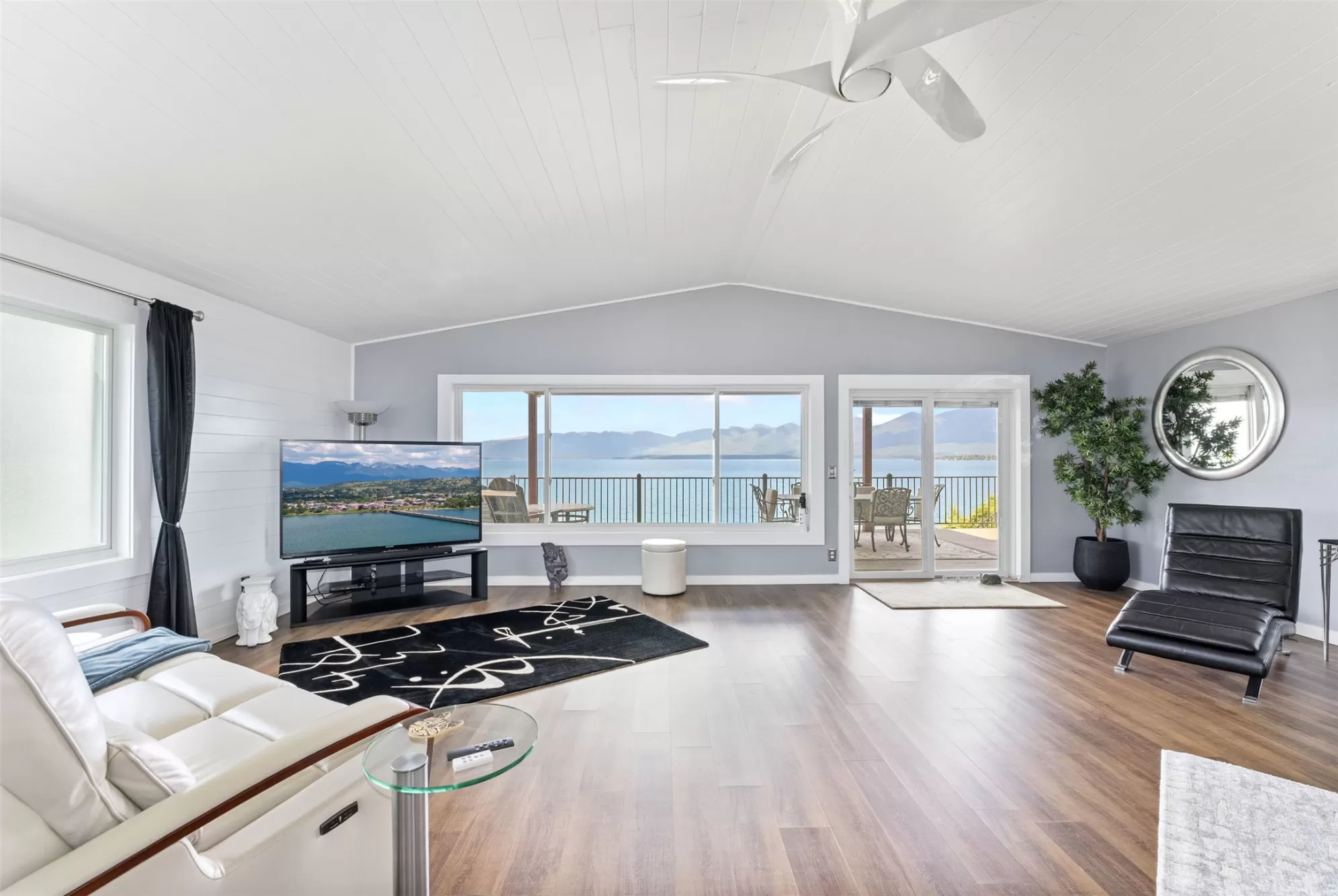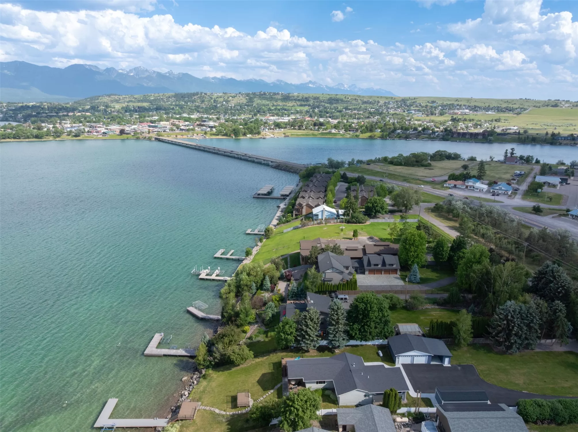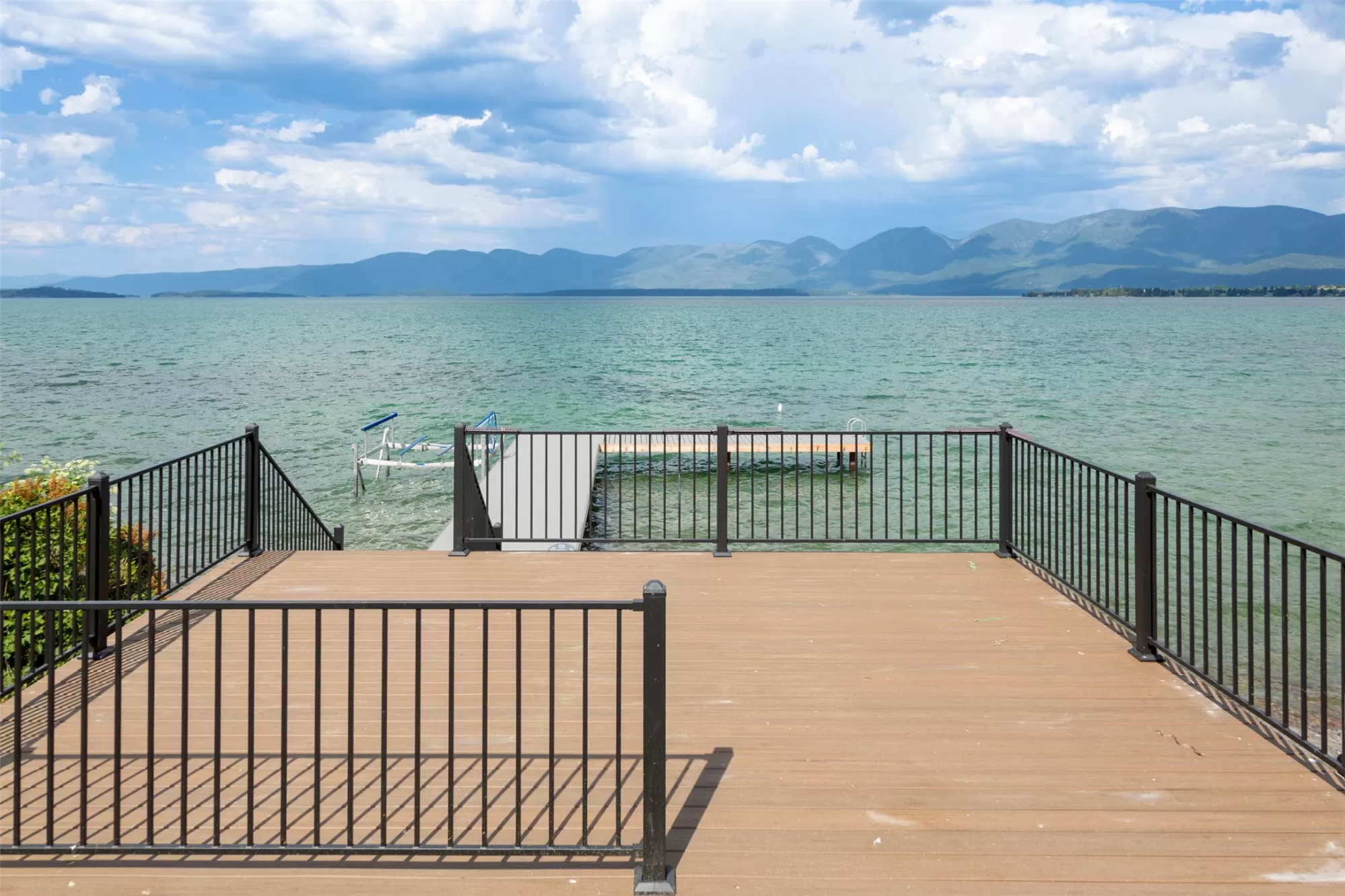 Welcome to 328 Shoreline Drive—a beautifully remodeled lakefront residence on the pristine shores of Flathead Lake. Thoughtfully updated throughout, this home offers the perfect balance of comfort, style, and convenience—just minutes from downtown Polson. Step inside to an inviting living space featuring vaulted ceilings and expansive lake views, with direct access to the upper-level deck—an ideal setting for relaxing or entertaining. The kitchen and spacious dining area with a cozy fireplace combine timeless charm and modern functionality, including classic white cabinetry, a peninsula, and a breakfast bar—perfect for casual meals or gathering with friends and family. The main level also offers a versatile front entry room that can be used as a home gym, flex space, or creative studio, in addition to a dedicated office, half bath, and a guest suite with an attached private bathroom. The primary suite serves as a peaceful retreat, featuring a beautifully tiled walk-in shower, double vanity, and finishes that blend elegance with practicality. The lower level includes an additional family room, a third bedroom, and a 3/4 bathroom—offering flexible space for guests or extended living. Take in breathtaking lake views from multiple outdoor areas, including an expansive covered deck, a covered lower patio, and a sun deck—ideal for outdoor dining and relaxation. Just steps from the home, a private dock with a boat lift ensures easy lake access and endless summer fun. Situated on a generous lot, the property also features a detached double garage, additional storage, and a separate boat storage/shop building—providing ample space for lake toys, gear, and workspace. A paved driveway provides easy access year-round, while a dedicated laundry room and storage shed enhance everyday functionality.