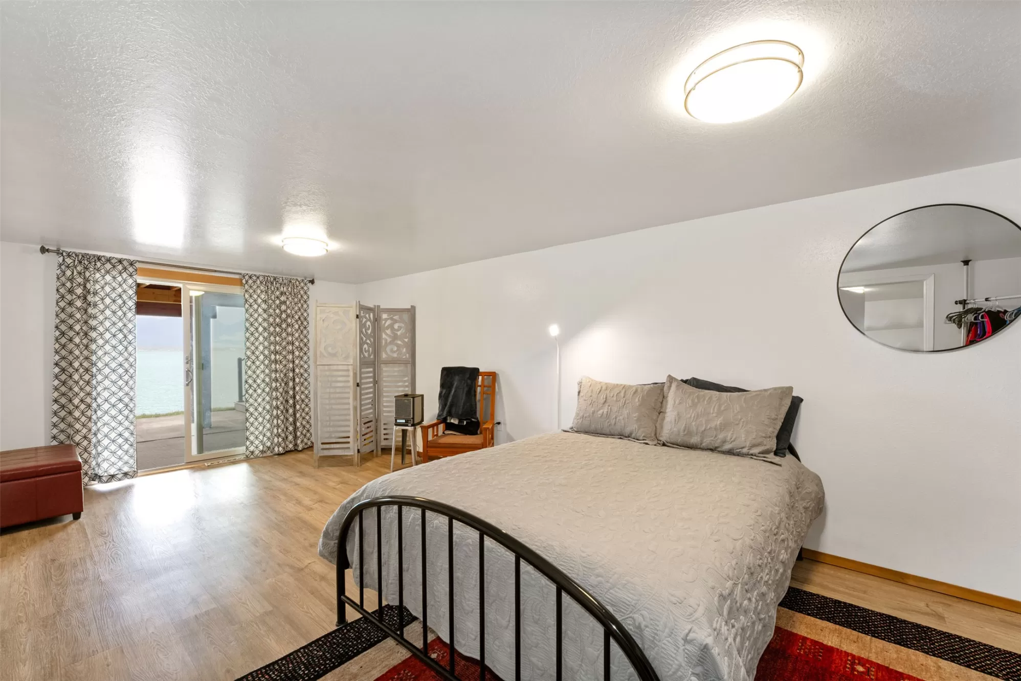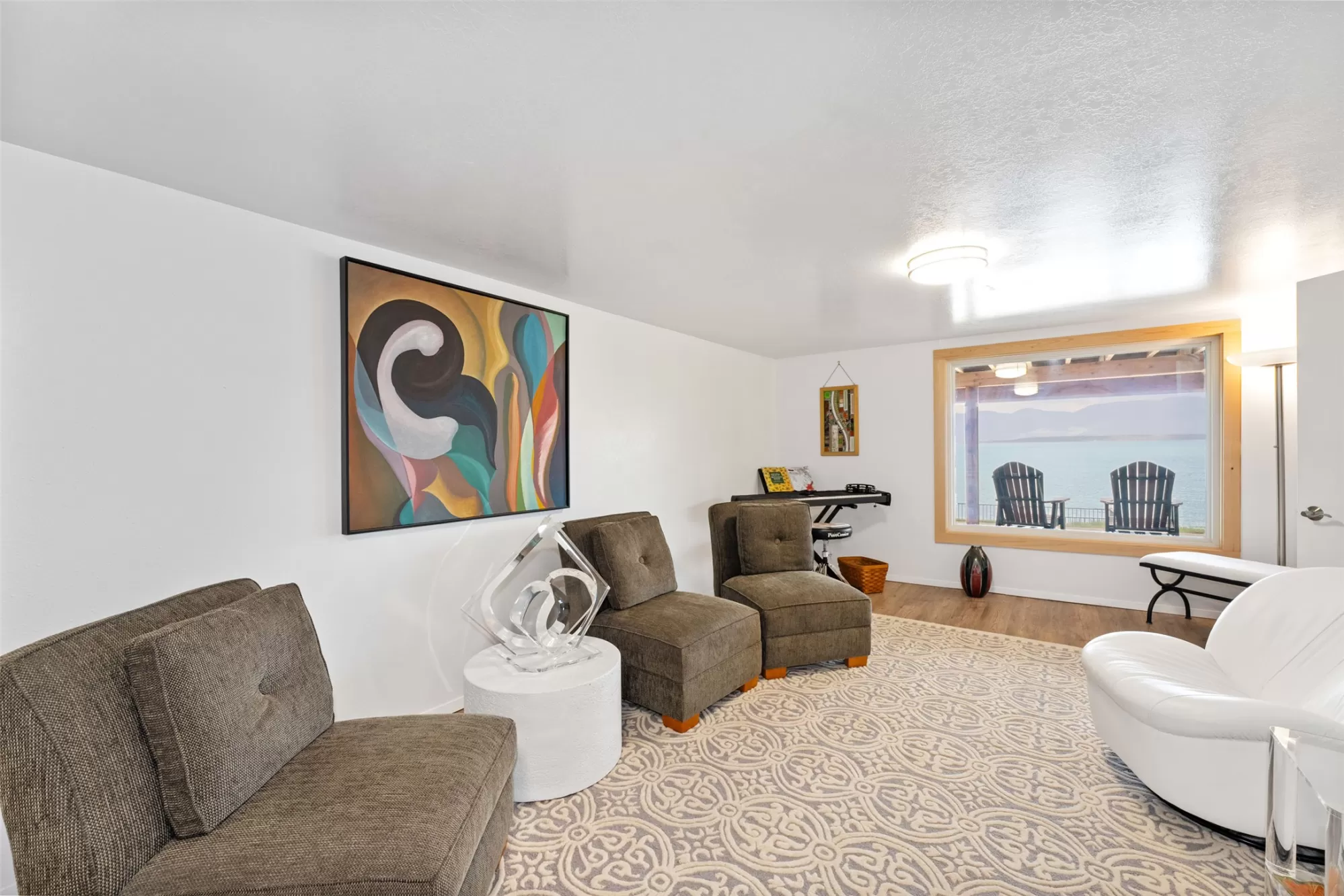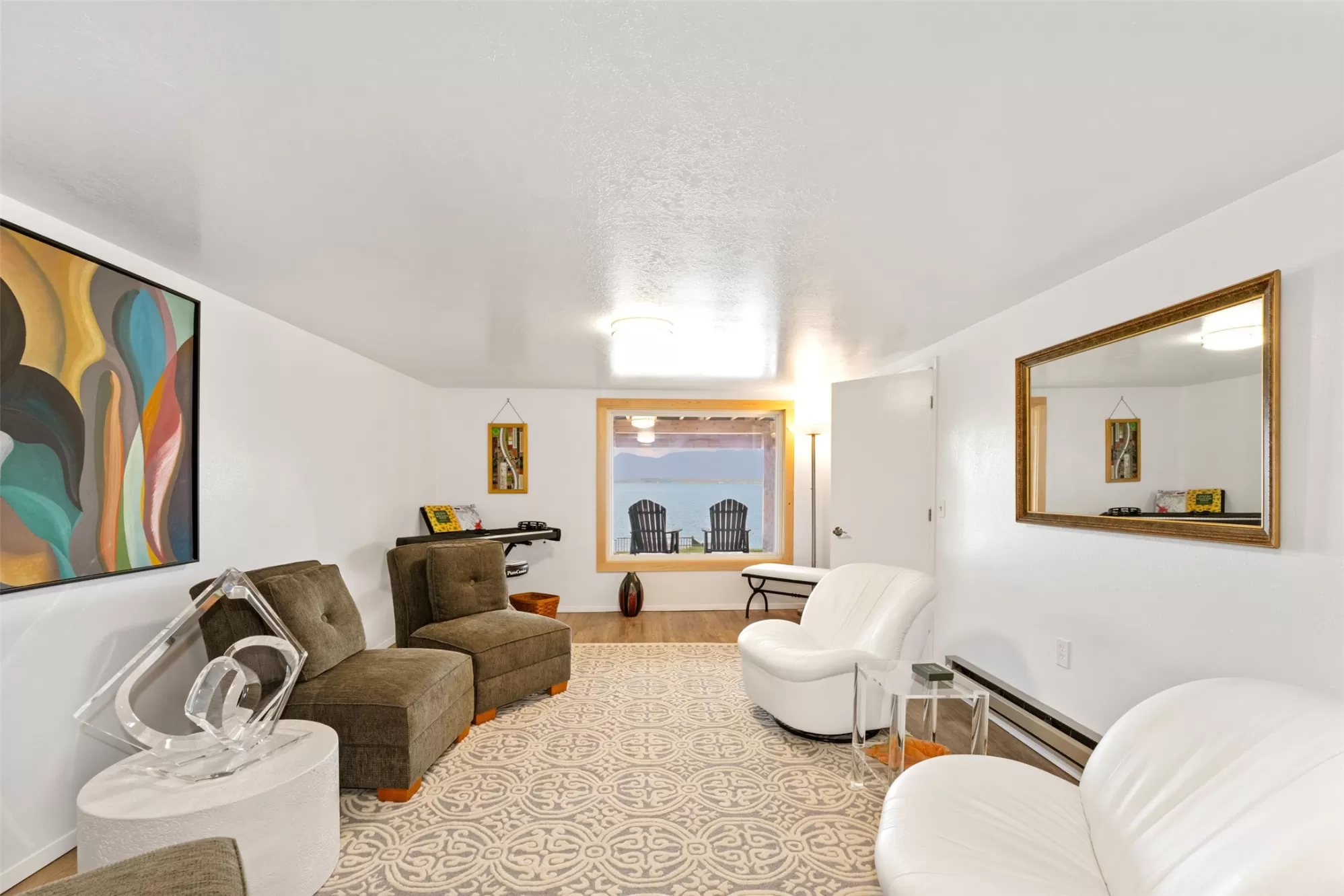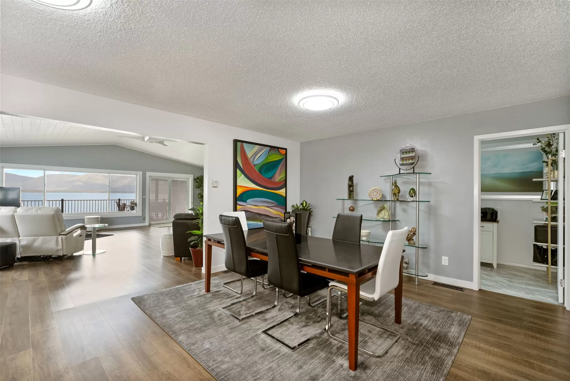 Welcome to 328 Shoreline Drive—a beautifully remodeled lakefront residence on the pristine shores of Flathead Lake. Thoughtfully updated throughout, this home offers the perfect balance of comfort, style, and convenience—just minutes from downtown Polson. Step inside to an inviting living space featuring vaulted ceilings and expansive lake views, with direct access to the upper-level deck—an ideal setting for relaxing or entertaining. The kitchen and spacious dining area with a cozy fireplace combine timeless charm and modern functionality, including classic white cabinetry, a peninsula, and a breakfast bar—perfect for casual meals or gathering with friends and family. The main level also offers a versatile front entry room that can be used as a home gym, flex space, or creative studio, in addition to a dedicated office, half bath, and a guest suite with an attached private bathroom. The primary suite serves as a peaceful retreat, featuring a beautifully tiled walk-in shower, double vanity, and finishes that blend elegance with practicality. The lower level includes an additional family room, a third bedroom, and a 3/4 bathroom—offering flexible space for guests or extended living. Take in breathtaking lake views from multiple outdoor areas, including an expansive covered deck, a covered lower patio, and a sun deck—ideal for outdoor dining and relaxation. Just steps from the home, a private dock with a boat lift ensures easy lake access and endless summer fun. Situated on a generous lot, the property also features a detached double garage, additional storage, and a separate boat storage/shop building—providing ample space for lake toys, gear, and workspace. A paved driveway provides easy access year-round, while a dedicated laundry room and storage shed enhance everyday functionality.