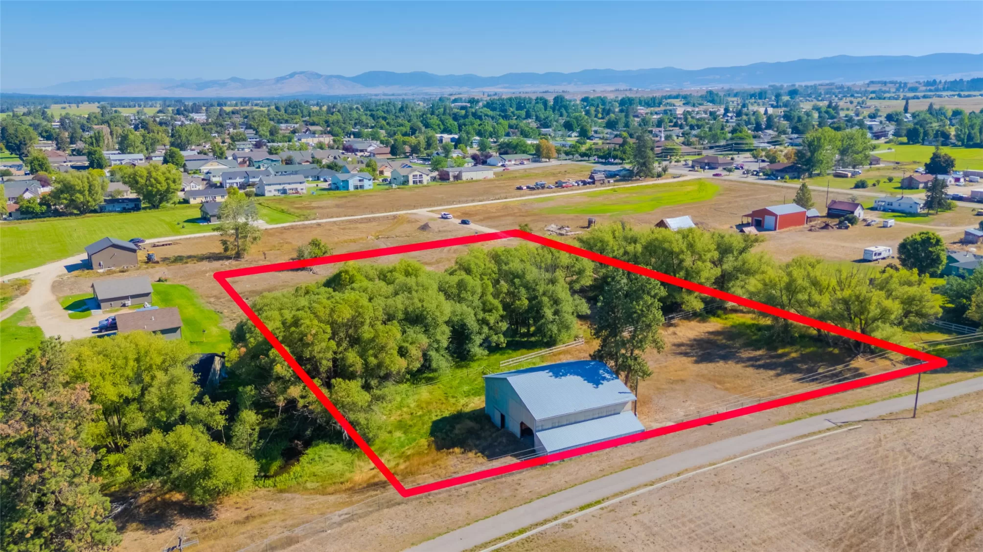 BUILD READY! This spectacular 3.289-acre parcel, just minutes from downtown Stevensville, Montana, offers an incredible opportunity to experience the beauty of the Bitterroot Valley. With magnificent views of the Bitterroot Mountains, this property features a seasonal stream that meanders through mature trees and lush meadows, providing both privacy and a serene natural setting. This gorgeous property is build ready with a new, 35 gpm well, recently installed 3-bedroom septic system. Natural gas and underground power to edge of property, ready for your dream home . Property includes 2 story barn/ shop, boasting nearly 4,000 square feet under a durable metal roof. This versatile space could easily be transformed into a barndominium or guest quarters, tailored to your needs. It is the responsibility of the buyers and their agents to verify all info regarding this property. As a bonus, residents have deeded foot access to the Bitterroot River, perfect for fishing, kayaking, or simply enjoying the tranquility of riverside life. This parcel is not just a piece of land; it's an invitation to embrace a lifestyle filled with outdoor adventures and the charm of Montana living. Whether you're looking to build your dream home or a getaway retreat, this property has it all! Info is provided by outside sources and deemed reliable but it is not guaranteed by listing agent or listing office.