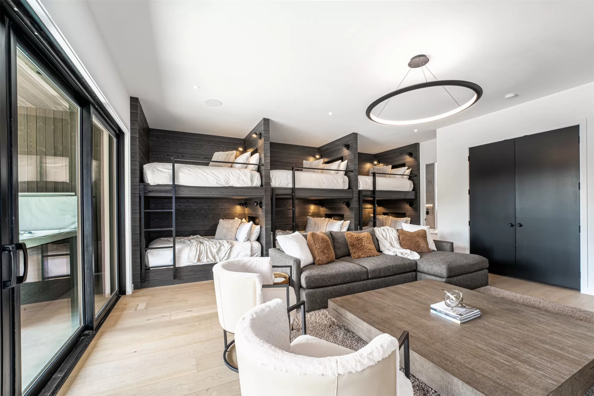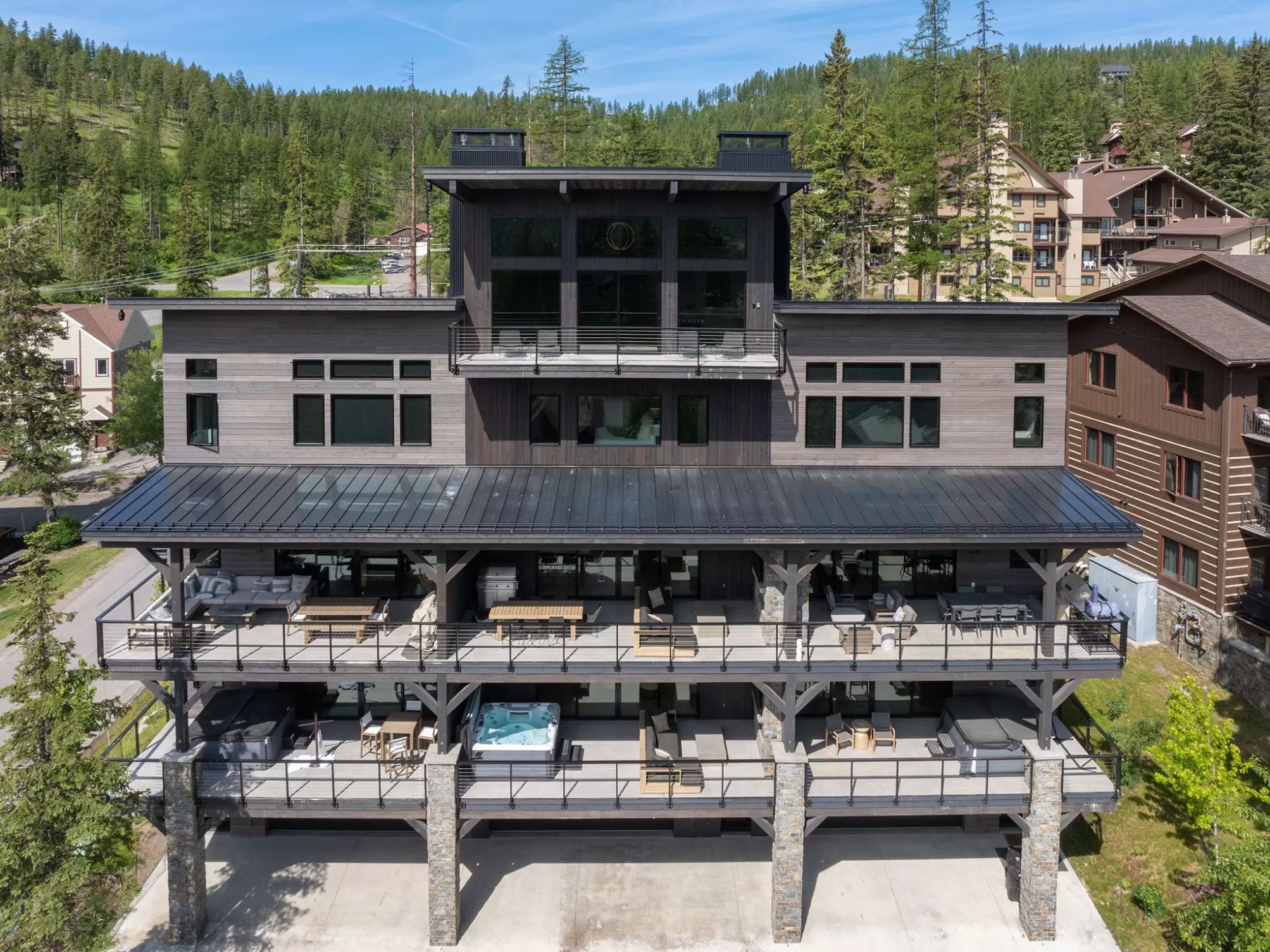 Welcome to a rare alpine masterpiece where mountain modern design meets unmatched scale and sophistication. Boasting 7,726 sq. ft. across five meticulously designed levels, this luxury retreat redefines elevated Montana living, just 150 yards from the trails of Whitefish Mountain Resort. Offered fully furnished, turn-key, styled in timeless elegance with curated Restoration Hardware and architectural finishes that exude comfort and class. The expansive layout includes 8 en-suite bedrooms, 12 bathrooms, and a private elevator connecting each floor for effortless living. Whether you’re entertaining guests in the chef’s kitchen, gathering in the grand living room, watching a film in your private home theater, or soaking in the outdoor hot tub, every space is built for indulgence. The penthouse level is an entertainer’s dream, featuring panoramic mountain views, a wet bar, pool table, and observation deck—perfect for apres-ski evenings or morning coffee above the treetops. Features include; - Granite in kitchen - Quartzite in bathrooms - All tile floors heated except 3rd floor powder and 5th floor powder rooms - Heated towel warmers throughout - Primary suite bathroom steam shower - Heated tile exterior decks - Heated ski room tile floor - Control 4 system (lighting, HVAC, security, A/V) with remote capability - Electric blinds hard wired in every bedroom - All intelligent toilets - Generator for unit B will run lighting, appliances, heat (approx. 85% of the home) - Restoration Hardware furnishings throughout - Wood floors, engineered light oak - Samsung Art Frame TV’s throughout - 10+ ceilings, 8’ doors throughout - 3 furnaces plus central air - Not subject to resort’s 1% transfer assessment fee - Approximately 150 yards to Home Again Ski Trail for ski access