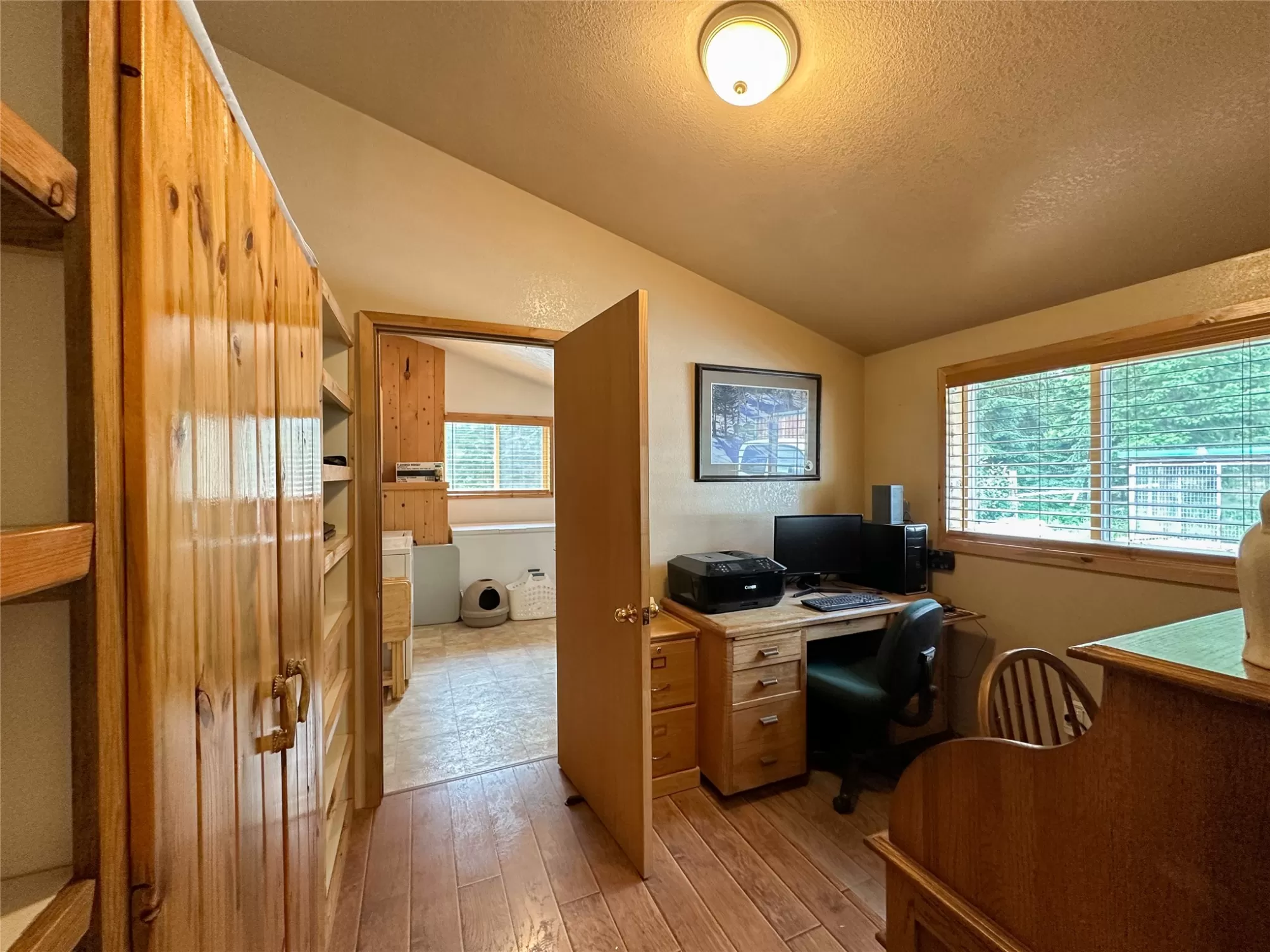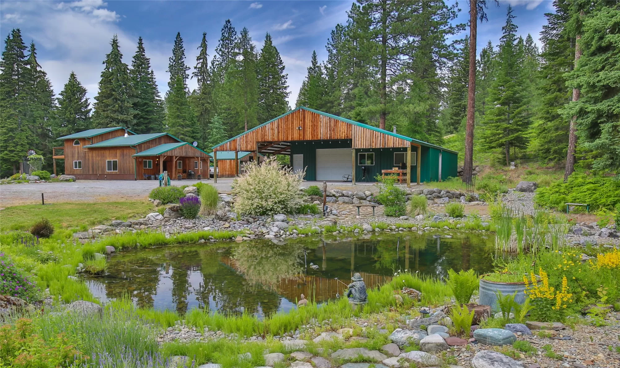 Ultimate privacy from this gorgeous and tranquil 29.11+- heavily treed acres. While spending time on this land, the serenity surrounded me. Enter this retreat from the recently re-paved Whitepine Creek Road, through an elk and deer silhouette adorned gate and drive into an oasis of stone landscaping, and gorgeous plantings of flower, trees and shrubs around the lower pond, which paint a setting so stunning, it is reminiscent of a Monet. The home is a wood board and batten two bedroom, two 3/4 bath, rustic Montana dwelling with ample pine tongue-and-groove high ceilings providing much wall space for mounts. The primary bedroom is on the main floor with a nice sleeping loft and a balcony overlooking the forest with mountains as the backdrop. Dog runs, a garden, recreational toy storage galore, a large shop, sleeping cabin and under cover storage for an RV or camper. There is a covered pavilion by the pond and plenty of space for your boat and toys to be out of the weather. Welcome! A large shop, previously a taxidermy studio, has two overhead doors, a large open area with loft storage and the rooms including an office on one shed-roofed side. There are ample outbuildings for your hobbies, recreational loves and extra equipment, including a bunk room. In addition to Montana's favorite, wood heat in the main home, a propane heater has been added. Whitepine Creek is access to National Forest all the way into Idaho. You have lovely paved, county road access, while just up the road is a National Forest loop with creek and ridge rides that are amazing. Known for lion hunting, elk, deer, moose, turkeys and bear, this valley is a honey hole for wildlife. Bring your fishing boat for the Noxon Rapids Reservoir and Northwest Regional bass tournaments on the 35+- miles of pristine boating on the Clark Fork River. Trout Creek is a recreational paradise that we are blessed to call home. Call for a showing.