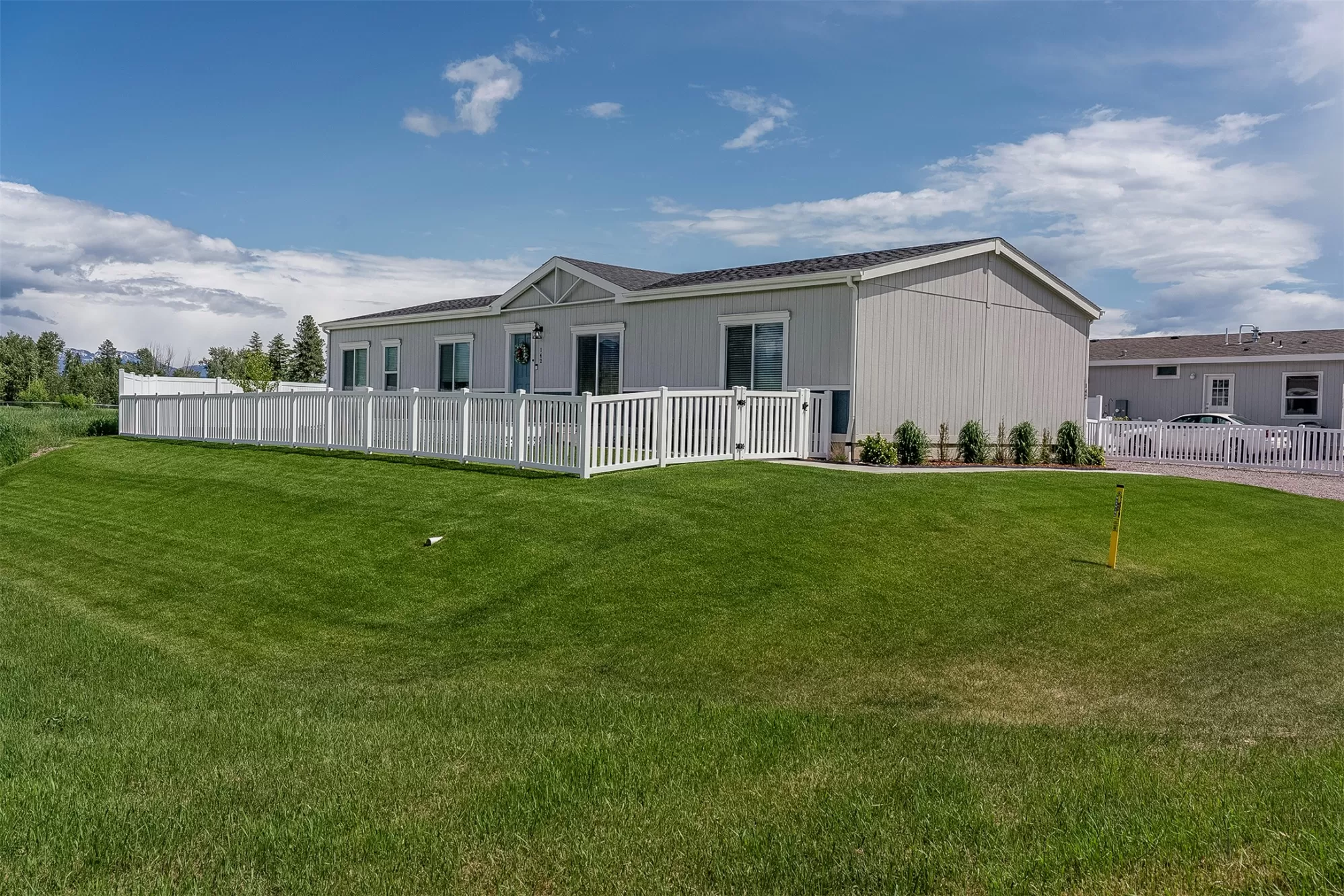 Stunning & gently lived in 2023 Energy-Star factory-built home on a concrete foundation w/ 4 beds, 2 baths (Primary walk-in shower & Guest tub/shower combo) & 1,760 sq ft of thoughtfully designed space, including separate office & laundry rooms. Huge bedrooms, oversized closets, & open-concept living. 7,100 sq ft rented lot w/ only a neighbor to the south & community park next door (north)—enjoy views, privacy, & space. Smart-board siding (50-year warranty), 60-lb snow load roof, composite decks on the front & back, vinyl fencing, landscaping, sprinklers, shed & gutters. All natural gas makes it affordable to heat/cool/cook. Lot rent of $695 includes winter snow plowing, common area upkeep, access to paved walking trails, 20+ acres of Evergreen School fields, & more. Outside of the floodplain. Home taxes under $1,000/year. A/C, upgraded fans, blinds, & lighting included Must be approved by the landowner. Buyer to verify the info to satisfaction. Move-in date flexible - prefer mid-Sept.