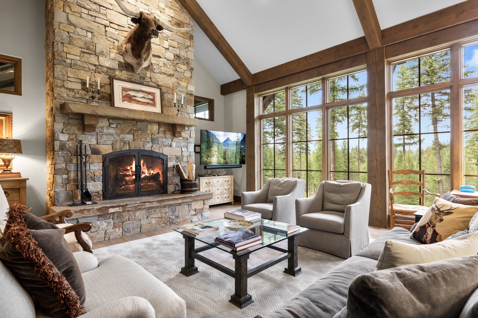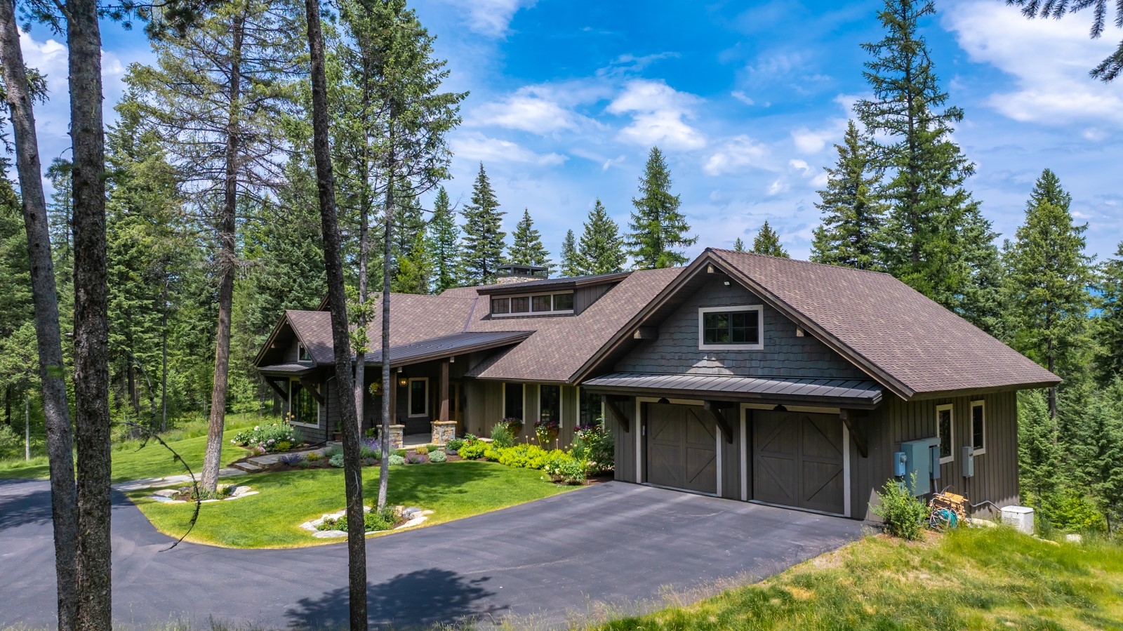 Whitefish Hills Sanctuary with Whitefish Mnt Resort views! Tucked away in the highly sought-after, gated Whitefish Hills Community, this stunning 20-acre wooded estate offers privacy, peace, and exclusive access to Blanchard Lake. This custom-built residence blends classic, timeless finishes and rustic elegance with modern comfort across 4,784 sq ft, featuring 4 bedrooms and 4.5 bathrooms. The home features soaring ceilings, exposed beams, and expansive windows that bathe the home in natural light. Thoughtfully designed for both living and entertaining, the home includes a dedicated office, a screened-in porch to enjoy Montana's four seasons with lush landscaping, and a detached 3-car garage/shop, ideal for storing recreational gear or creating a workshop space. The surrounding acreage invites quiet and adventure, while community amenities provide access to hiking and horseback riding trails, along with Blanchard Lake recreation, perfect for fishing, canoeing, or paddle boarding. Located just minutes from downtown Whitefish, Whitefish Lake, and Whitefish Mountain Resort, this exceptional property offers the best of Montana living in an idyllic, forested setting. Impeccable landscaping, plenty of room for a guest home, and an ATV road that encompasses the entire 20-acre parcel.