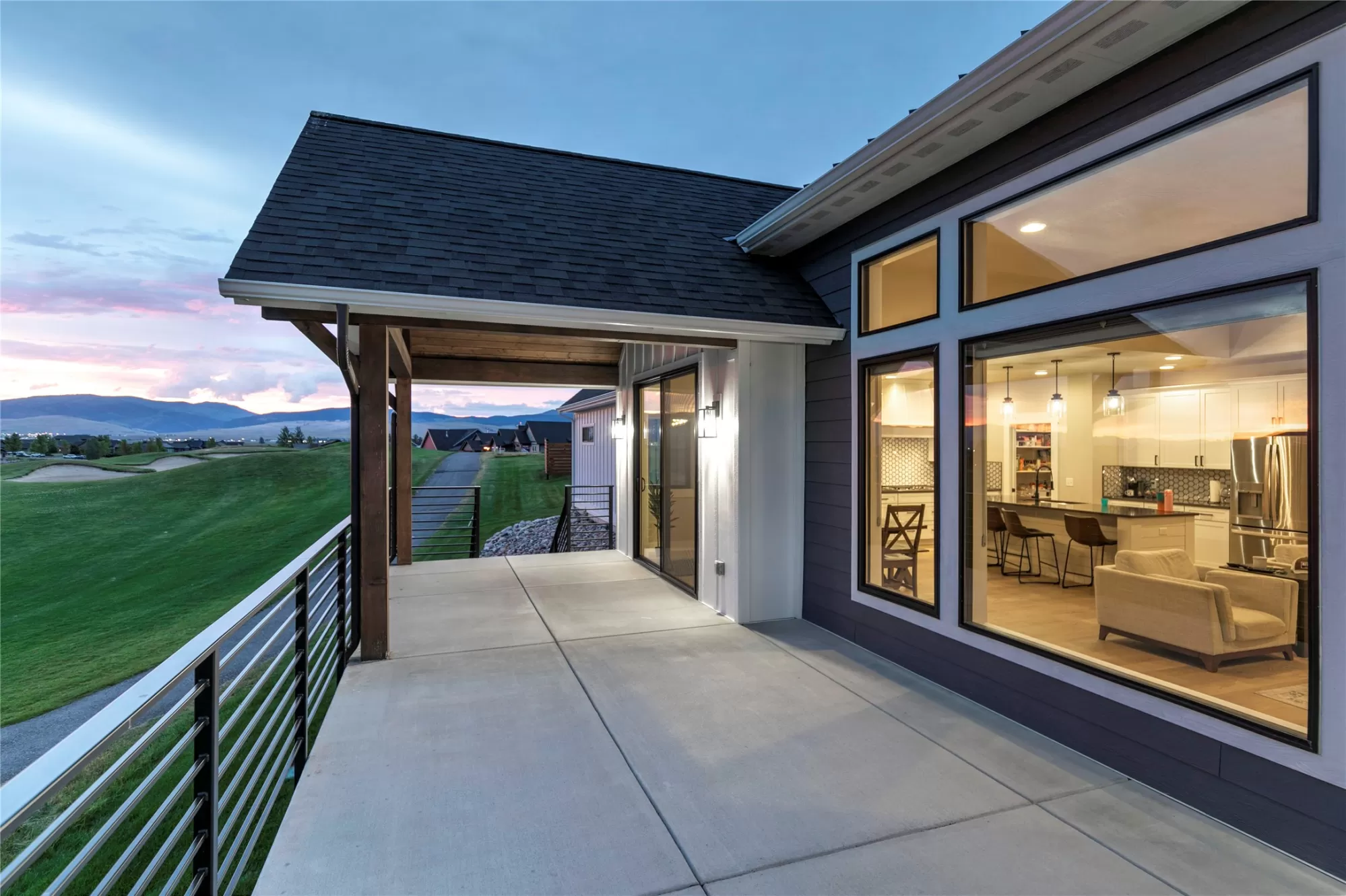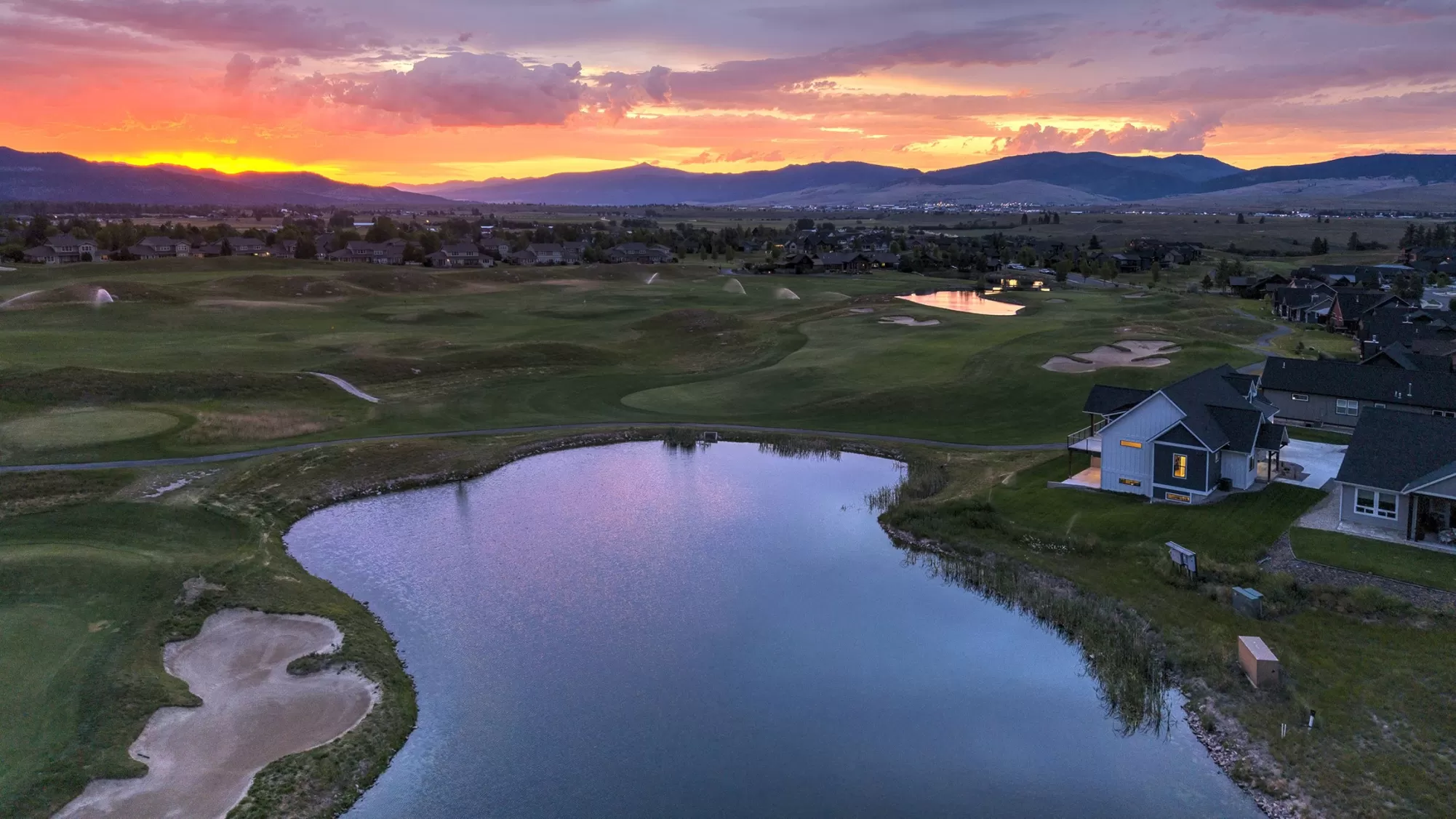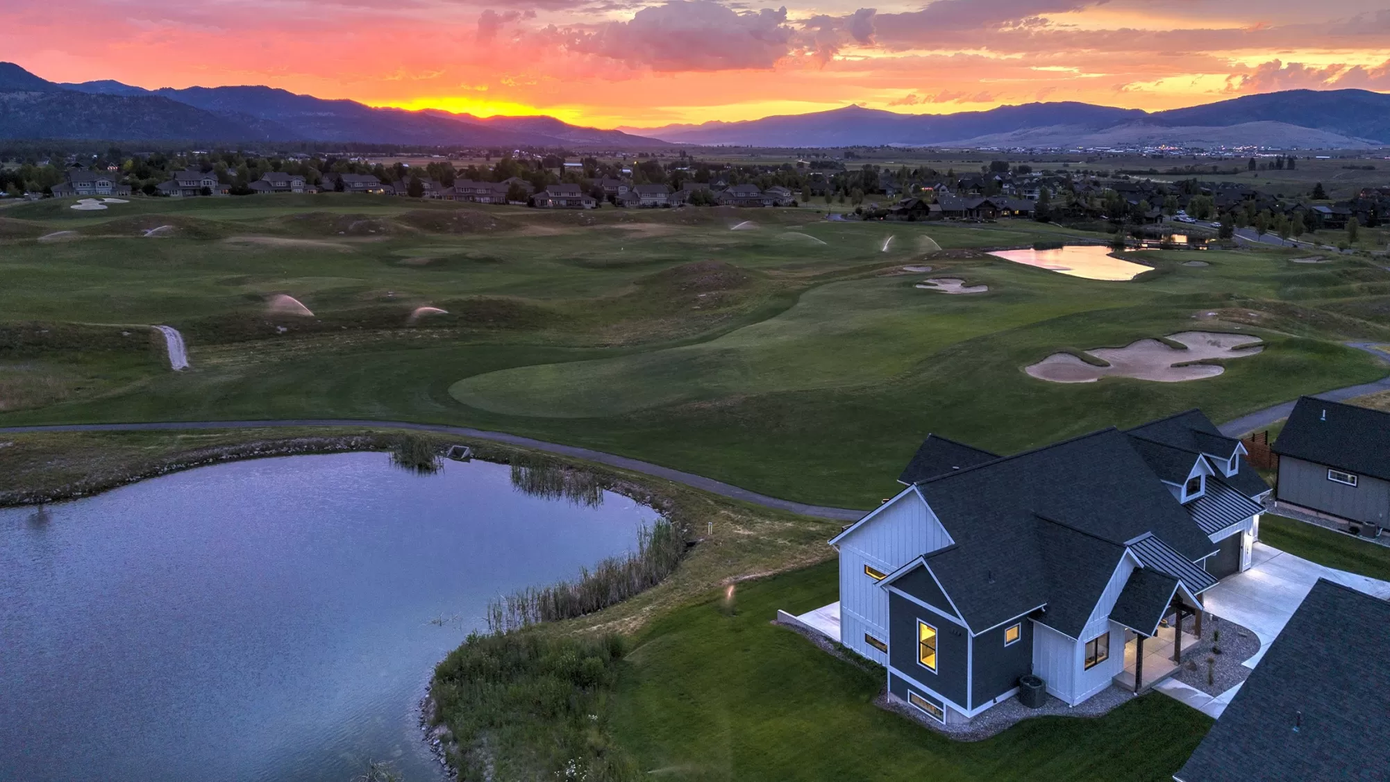 Set on a generous corner lot in the heart of Missoula’s sought-after Ranch Club community, this newer 5-bedroom, 4-bathroom custom home offers nearly 3,900 square feet of well-designed living space with gorgeous views stretching across fairways, ponds, and surrounding mountains. Inside, the home’s open concept design flows naturally from room to room. The kitchen features a pantry, gas range stove, handcrafted tile work, and a large, functional island - making both daily meals and entertaining easy. The living spaces are anchored by custom finishes, including a standout handrail, a wet bar, and easy-to-maintain engineered hardwood flooring throughout. An oversized 3-car garage (with 10-foot ceilings) provides plenty of room for vehicles, gear, storage, and more. The primary suite was designed with comfort and style in mind, featuring a spacious custom walk-in closet, a large custom-tiled shower, and a soaking tub. A Jack-and-Jill bathroom connects two of the secondary bedrooms, while a built-in Murphy bed adds flexibility - perfect for guests or a home office. A large, low-maintenance concrete deck offers both style and function, with 180-degree views of the 17th green, adjacent pond, surrounding mountains, and 18th fairway setting the backdrop for everyday life. Custom railings and a mix of shaded and open-air areas make it a space you’ll use year-round. Located on the site of the historic Deschamps Ranch, once home to four generations of Montana ranchers, the Ranch Club is now a well-established community with access to an 18-hole championship golf course, clubhouse, fitness center, swimming pools, and a full-service restaurant and lounge. Modern Montana living meets a sense of history in this stunning home, where thoughtful design, enduring craftsmanship, and everyday comfort come together in one of Missoula’s most desirable settings. This Ranch Club property is more than a home, it’s a lifestyle.