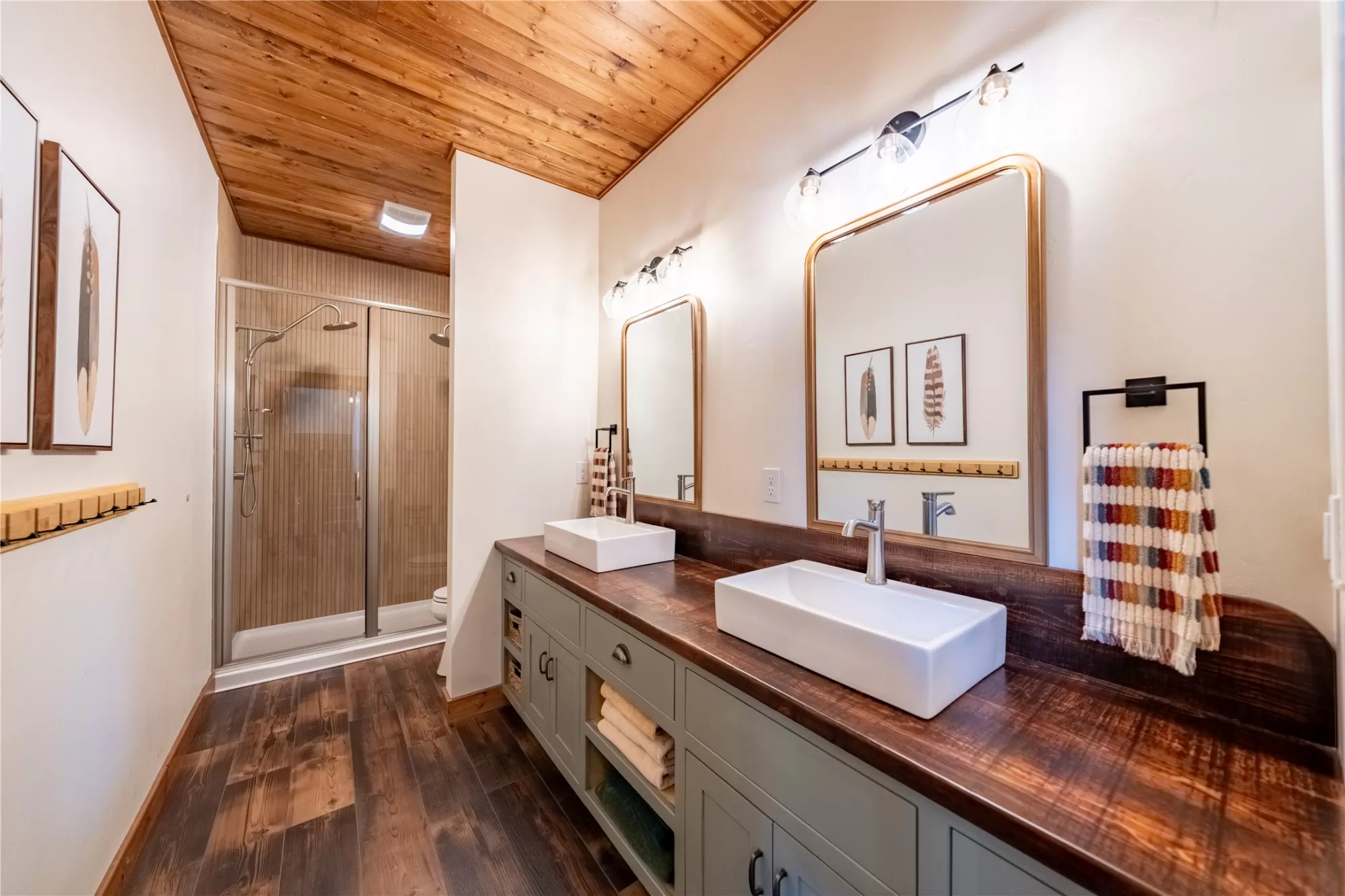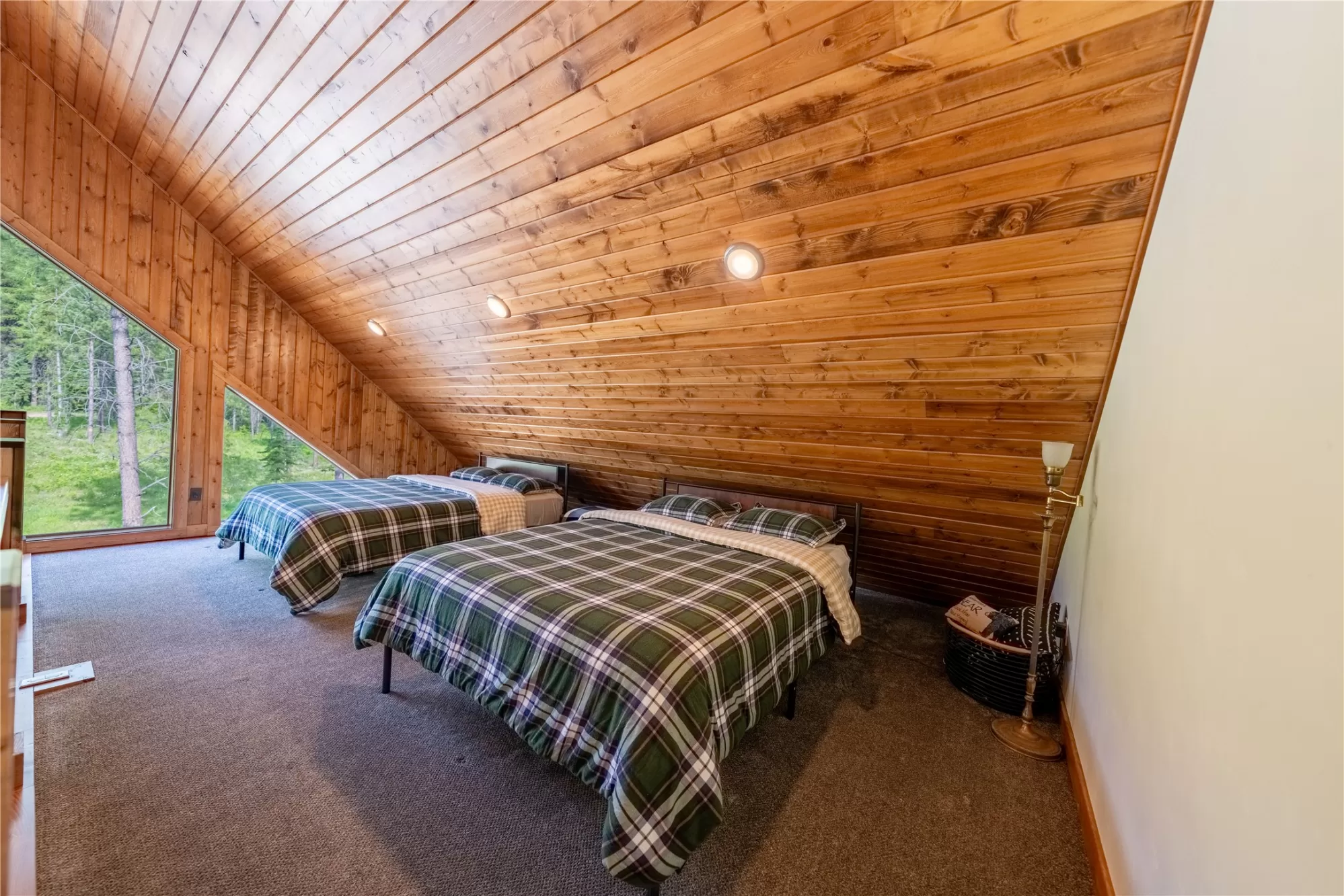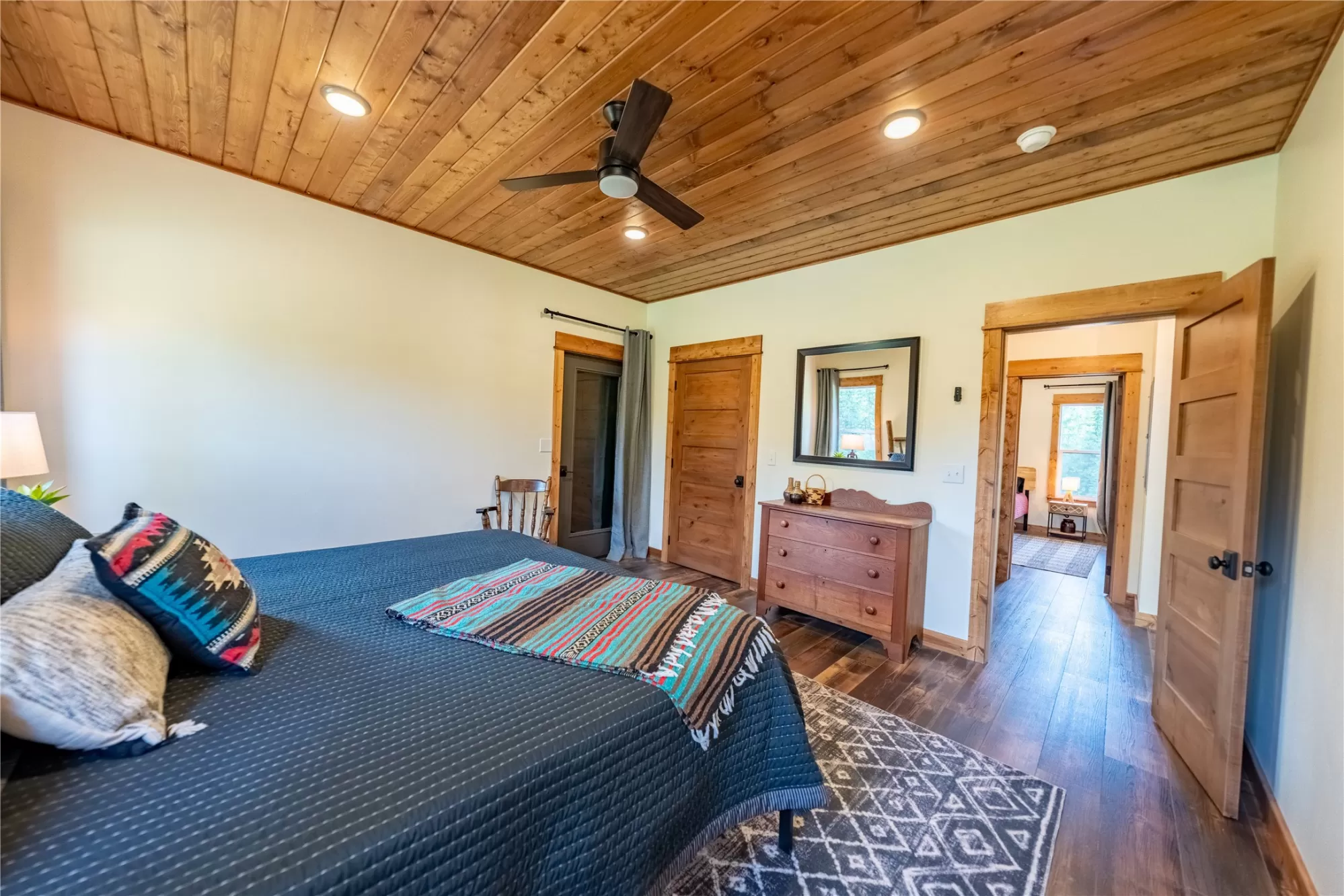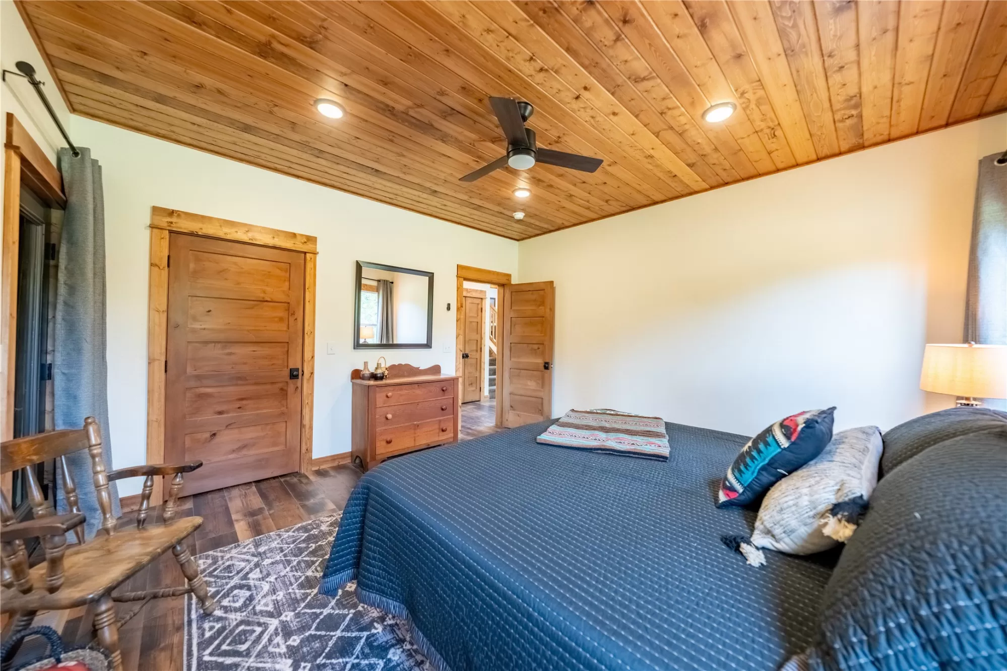 Discover quality craftsmanship in this 4-bed, 3.5-bath home on 6+ private acres in the gated community of Lake Creek Ranch. Ideally situated between Troy and Bull Lake, this 2,145 SF cabin features vaulted wood ceilings, an open concept layout, and a natural stone fireplace. The main level offers two spacious bedrooms, a full bath, and a half bath. The kitchen features honed quartz countertops and solid wood custom cabinetry. There is also a sunroom that offers a bright, peaceful retreat with forest views. Upstairs, the private primary suite includes an en-suite bath, walk-in closet, and a versatile loft. Additionally, there is a 320 SF guest suite above the detached two-car garage, bringing the total livable space to 2,465 SF. Front and side porches extend the living space outdoors. With high-speed fiber internet, central heating and A/C, a private well, and a private neighborhood trail to Lake Creek, this home offers comfort, flexibility, and access to endless outdoor recreation.
