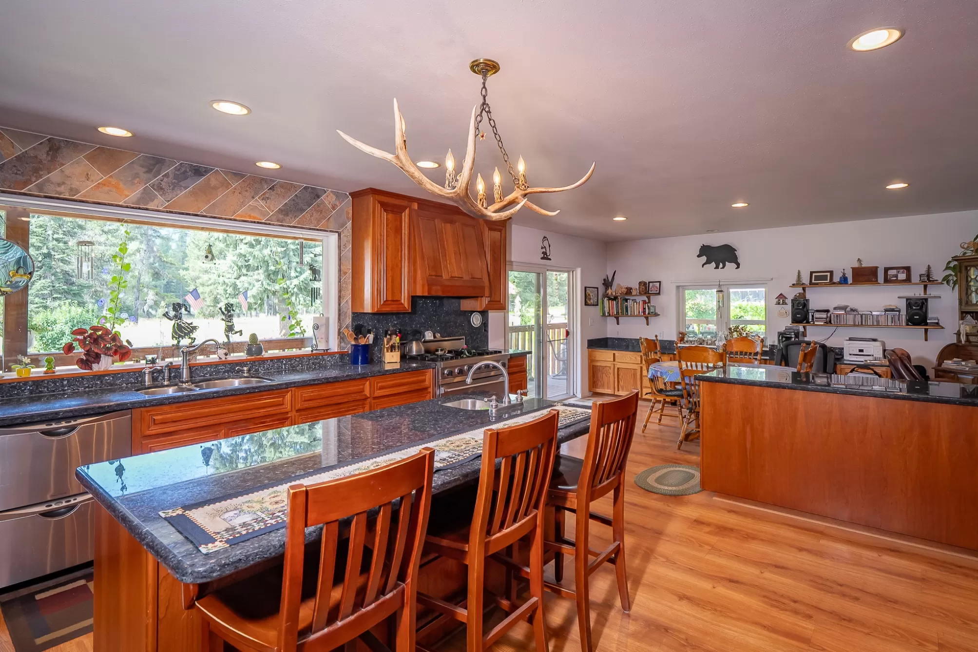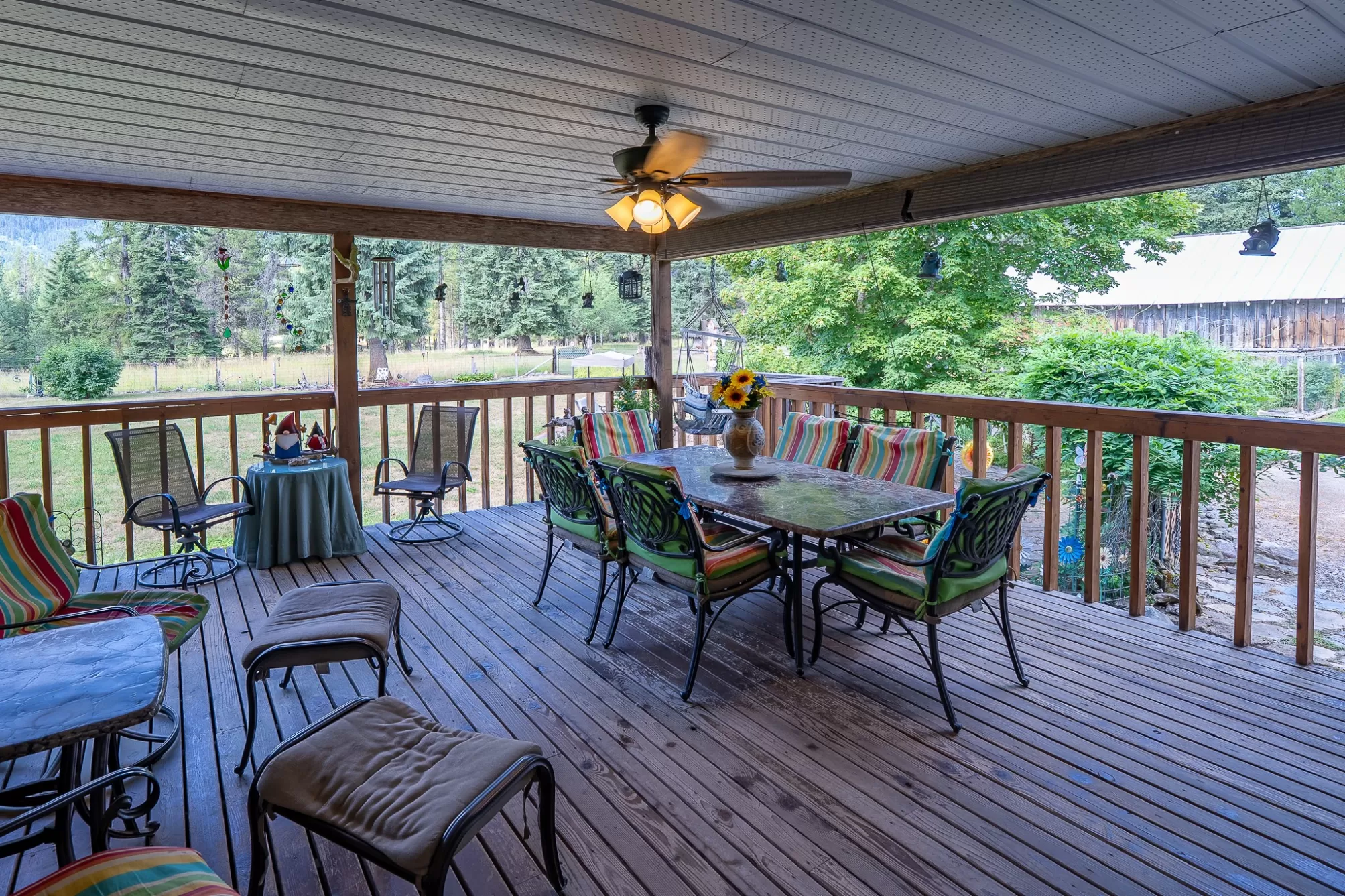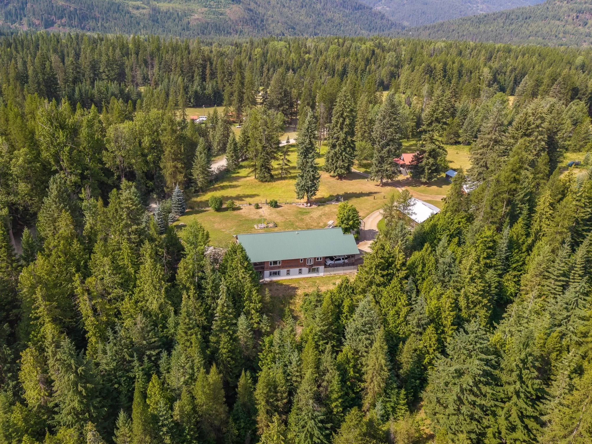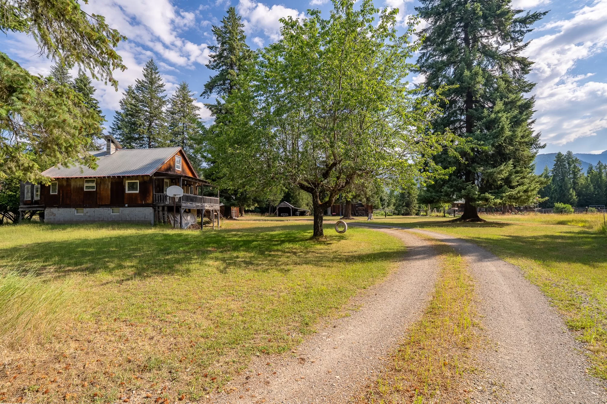 This spacious 3-bedroom/3-bathroom house sits on a benched 21.85 acres off of a maintained county road. The property features a fenced landscaped yard with a fire pit, play area, horseshoe pit, and flowering plants. There are numerous species of trees along with lilac, maple, cherry, pear and hazelnut trees. The outbuildings include a barn, woodshed, storage sheds and an older cabin with utilities that use to be (and can still become) living quarters. The main house and cabin are on separate power meters and septic but share the same (well) water source. Seasonal Cutter Creek runs through with 1st water rights to this property. Beautiful mountain views of Engle Peak, Goat Peak and Government Mountain can be seen from the 3936-sf house that boasts granite counter tops, cherry and oak cabinets, radiant in floor heat, propane fireplace, and REAL antler chandeliers. 1968-sf main level has a wraparound deck and a 1968-sf fully finished daylight basement.
